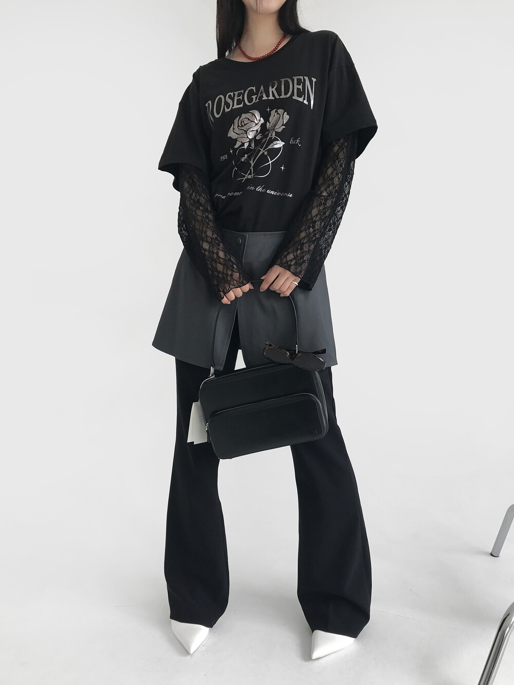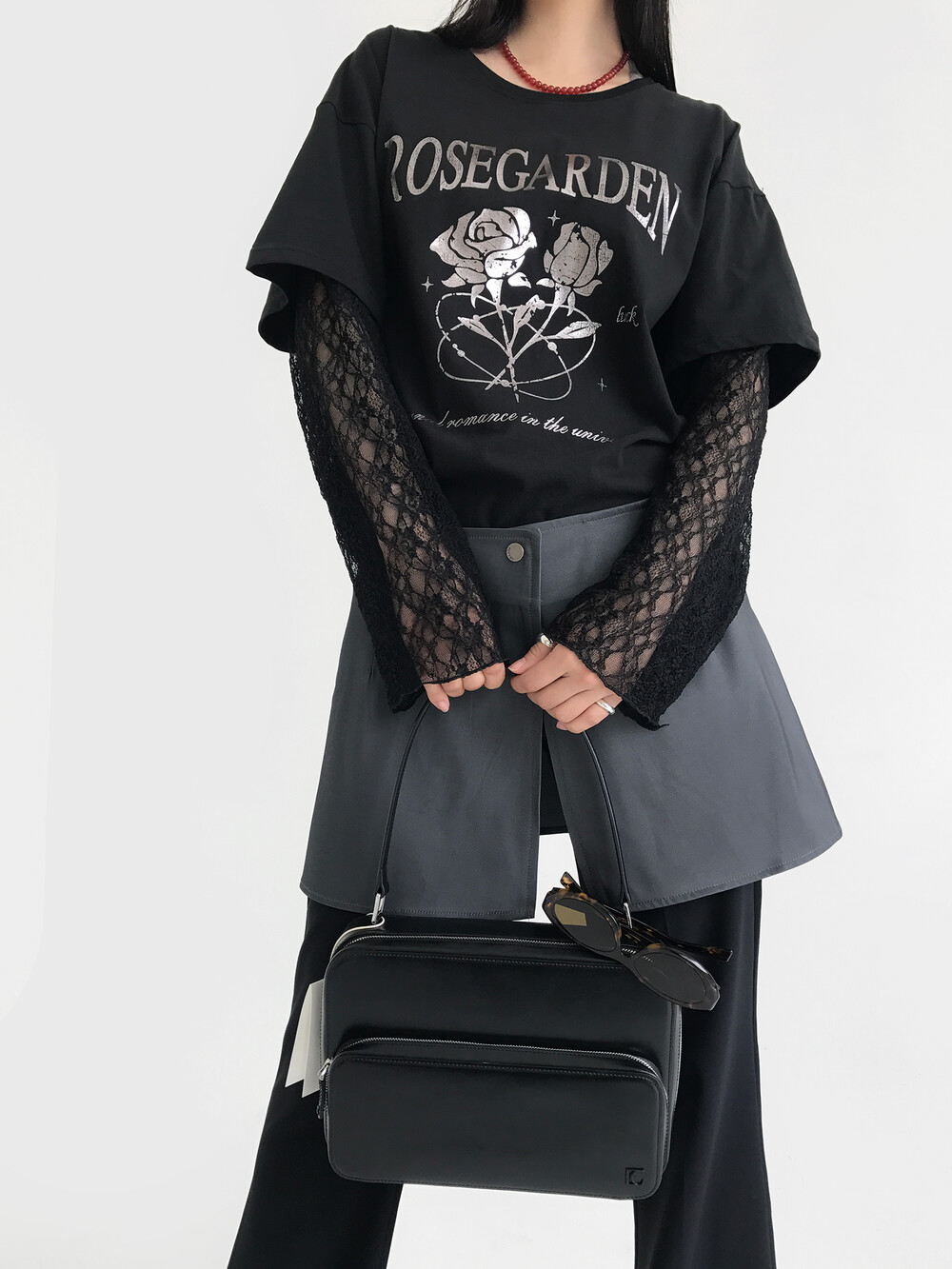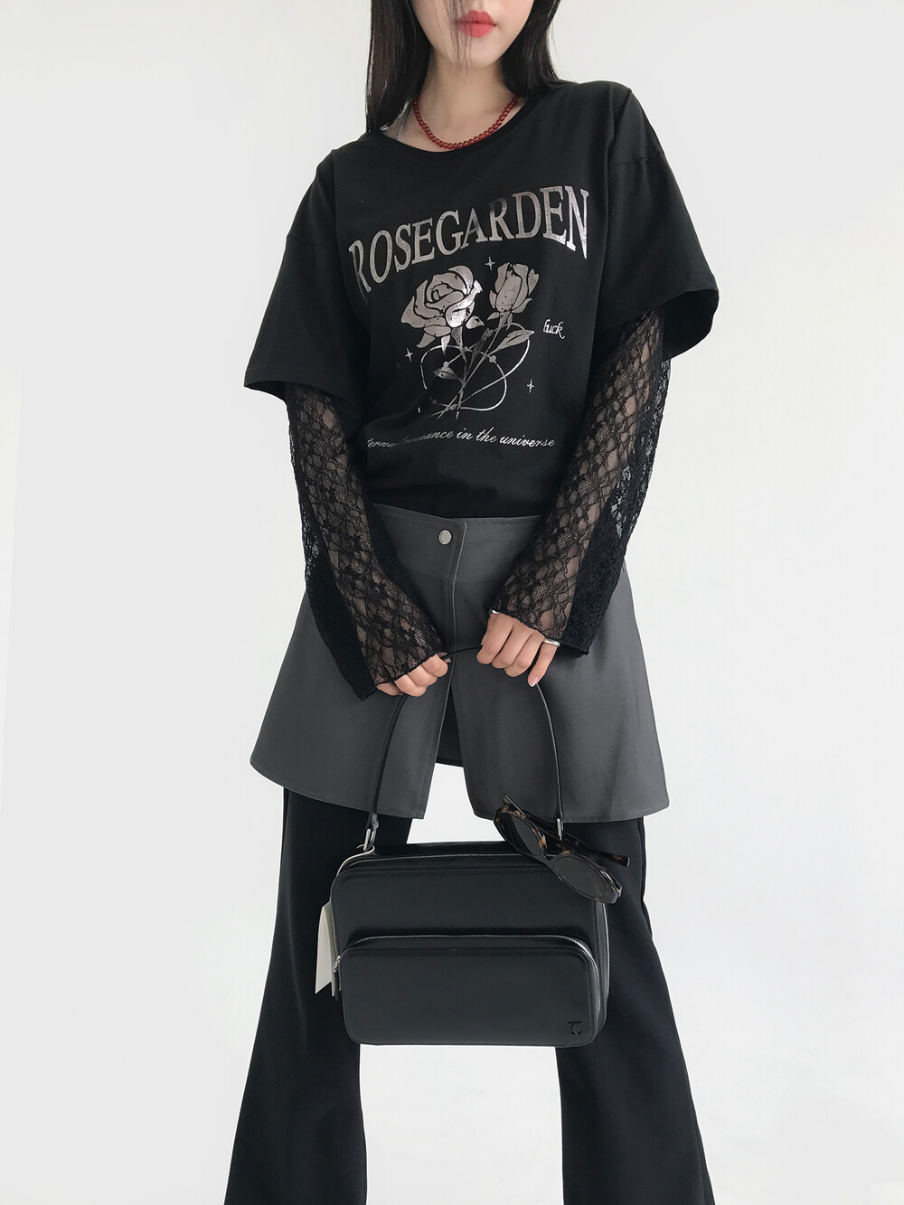 - 반팔 안에 레이스 탑을 레이어링 한 듯한 디자인으로 제작되었습니다.