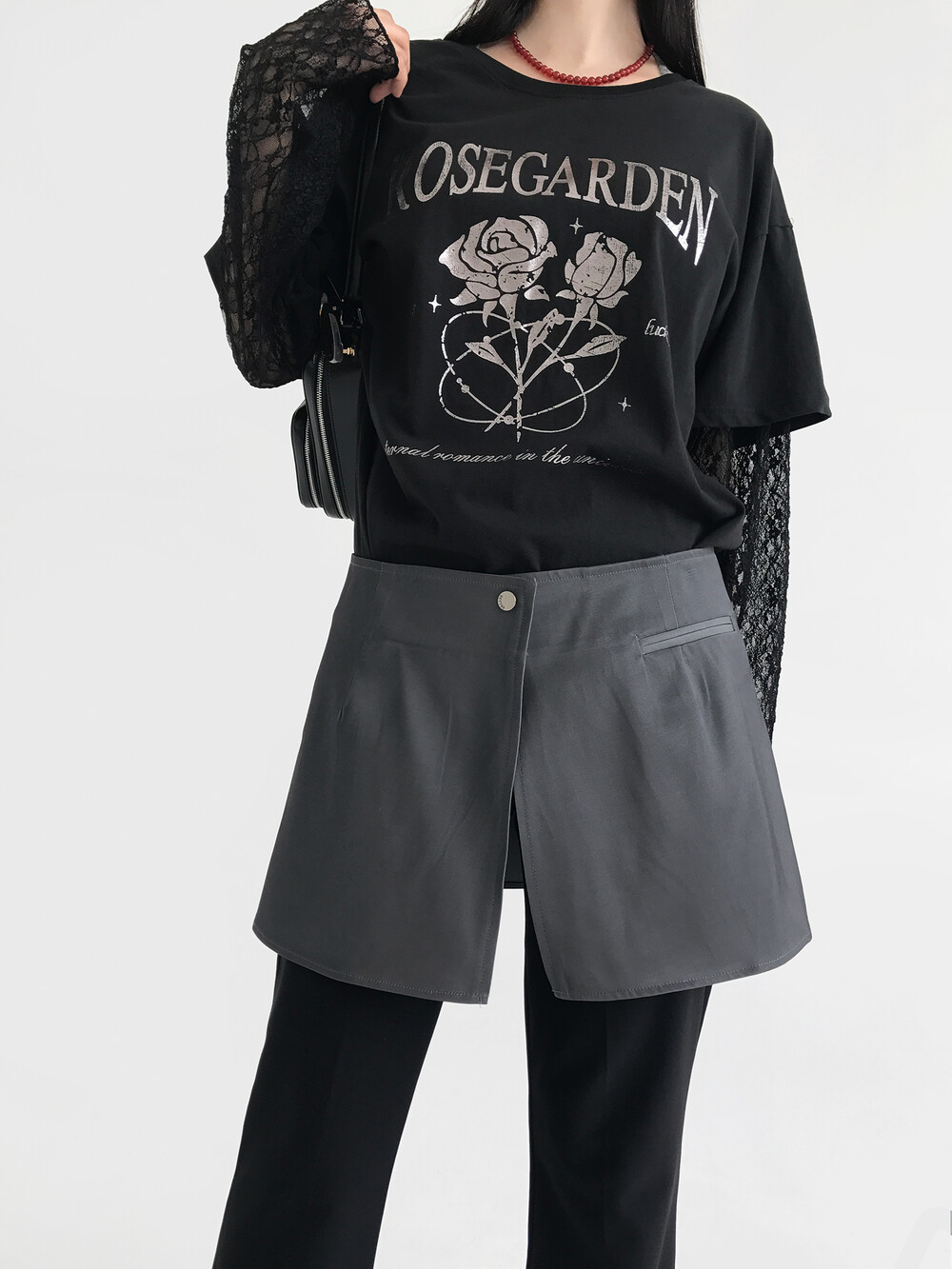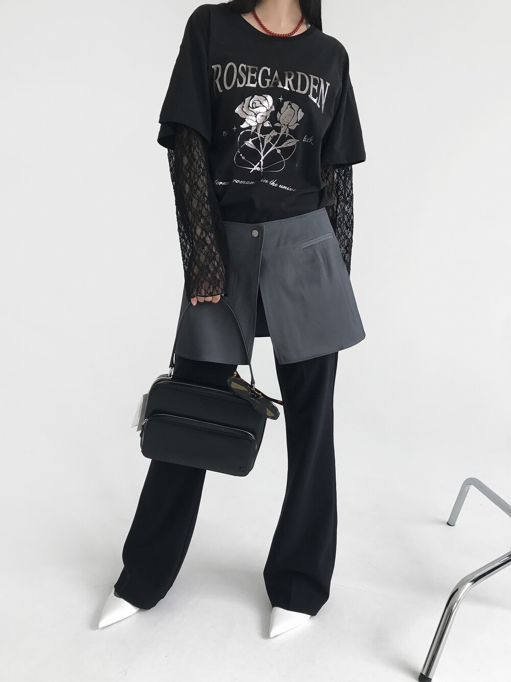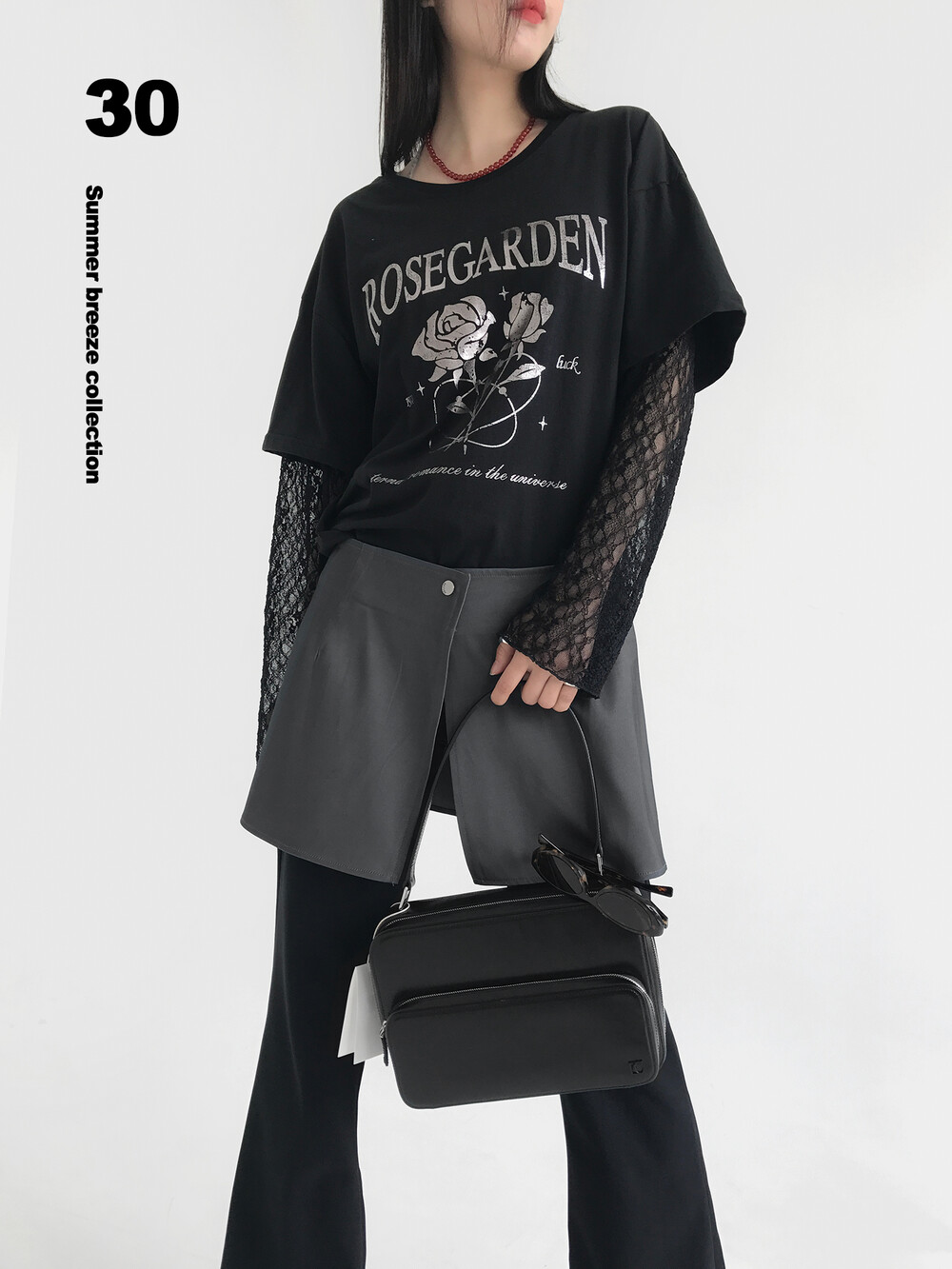 - 반팔 안에 레이스 탑을 레이어링 한 듯한 디자인으로 제작되었습니다.
