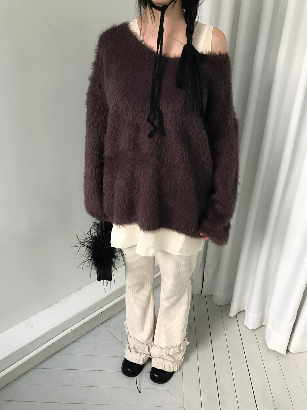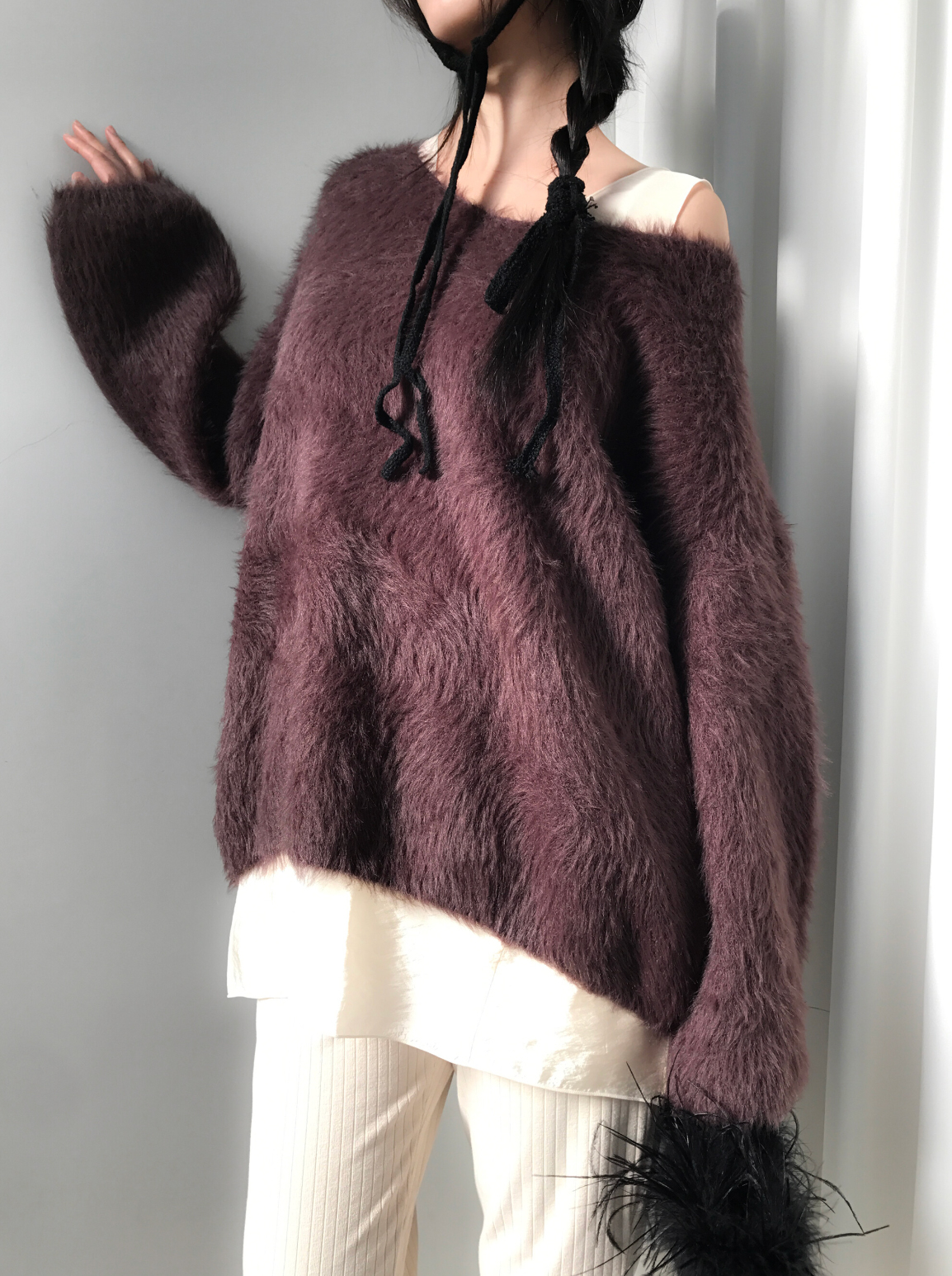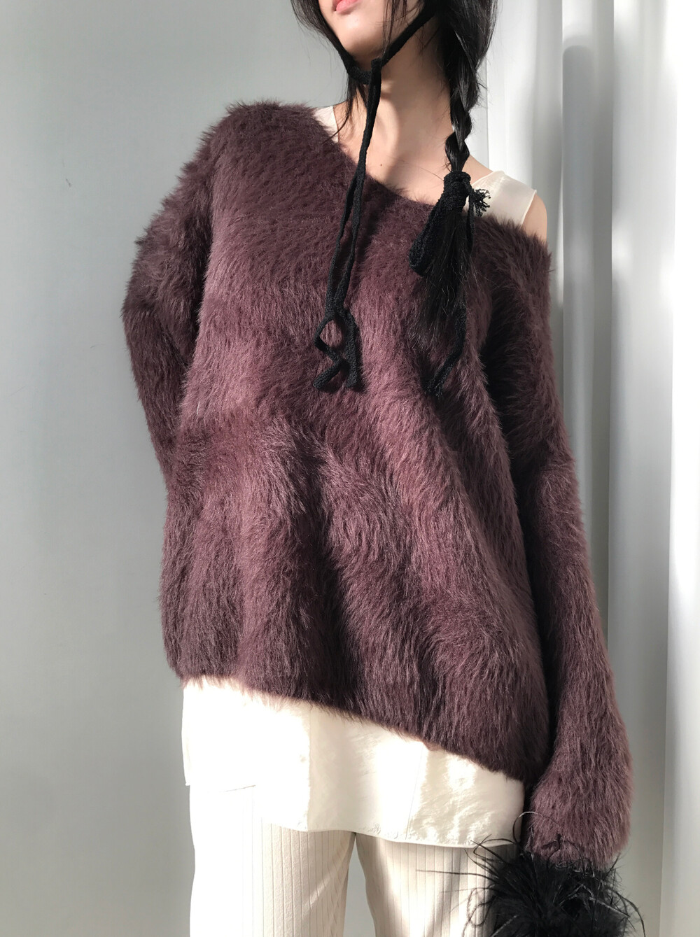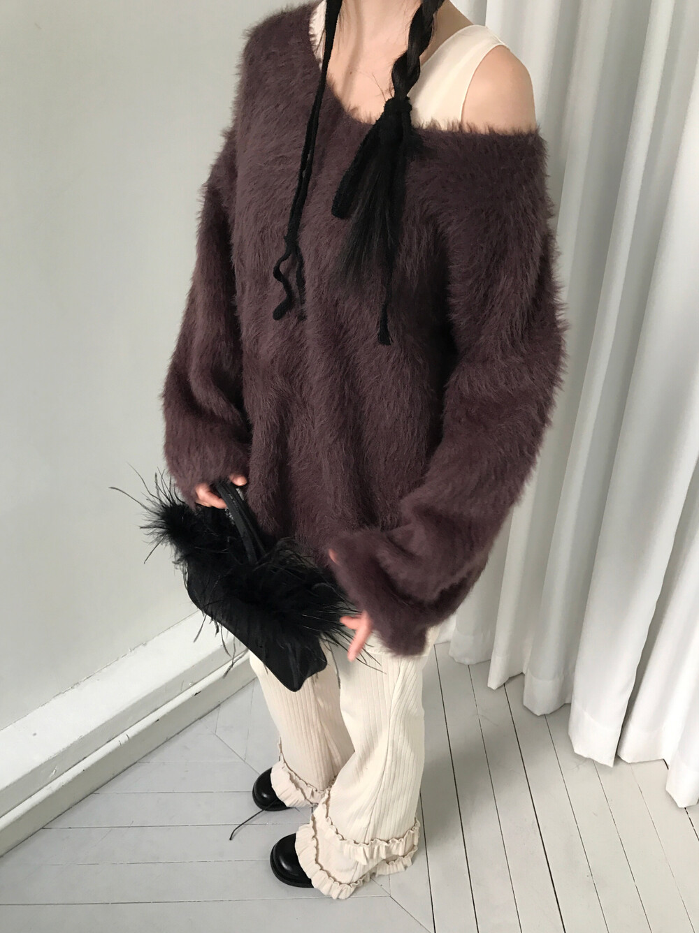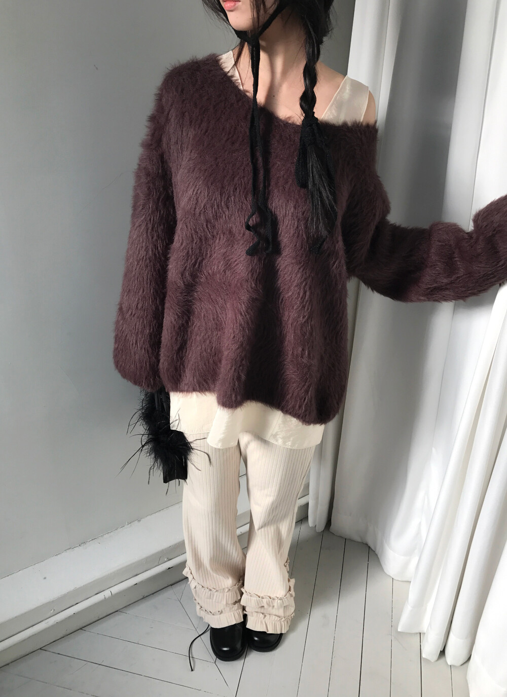헤어리한 텍스쳐가 돋보이는 소재의 루즈핏 니트.