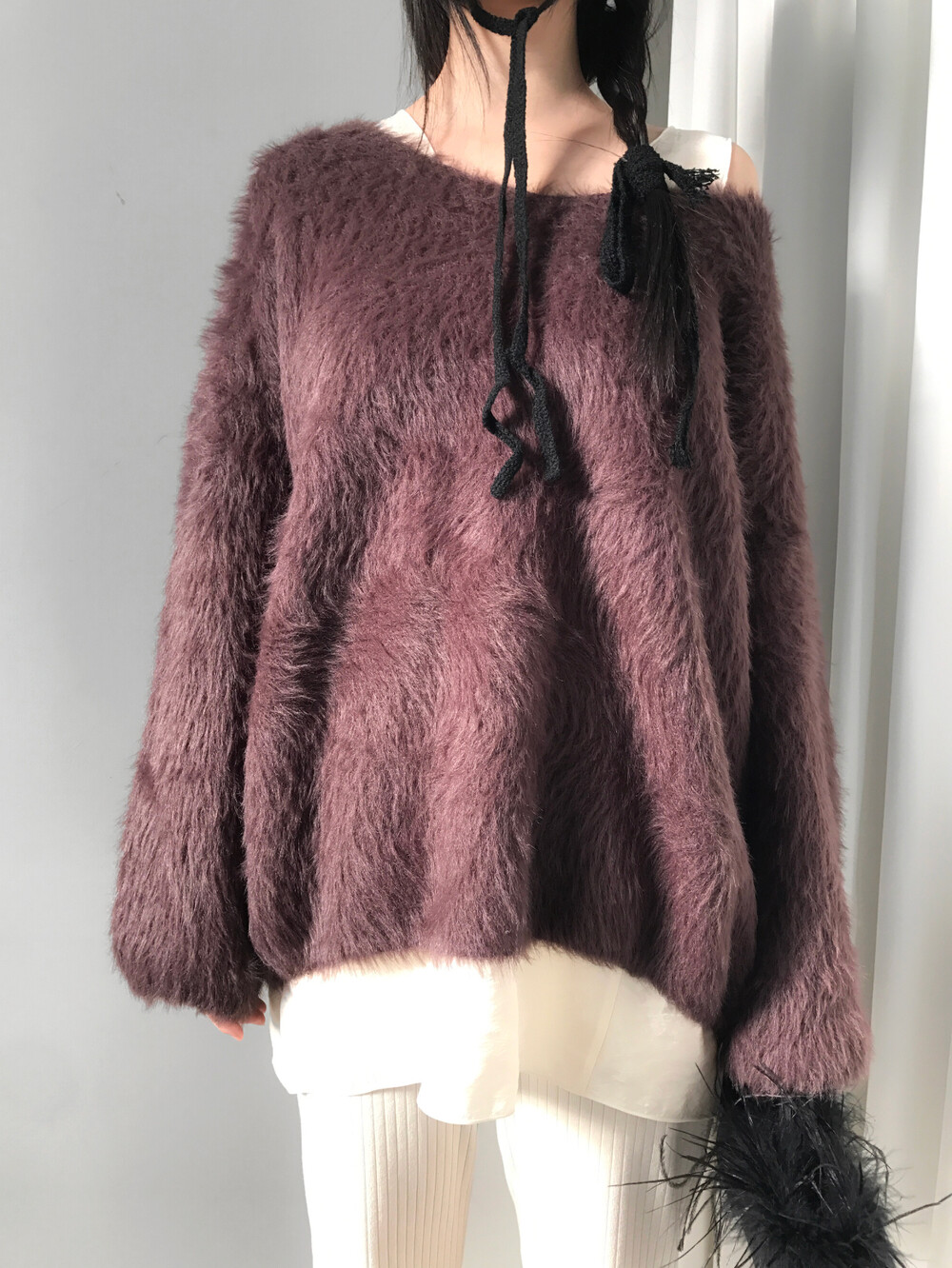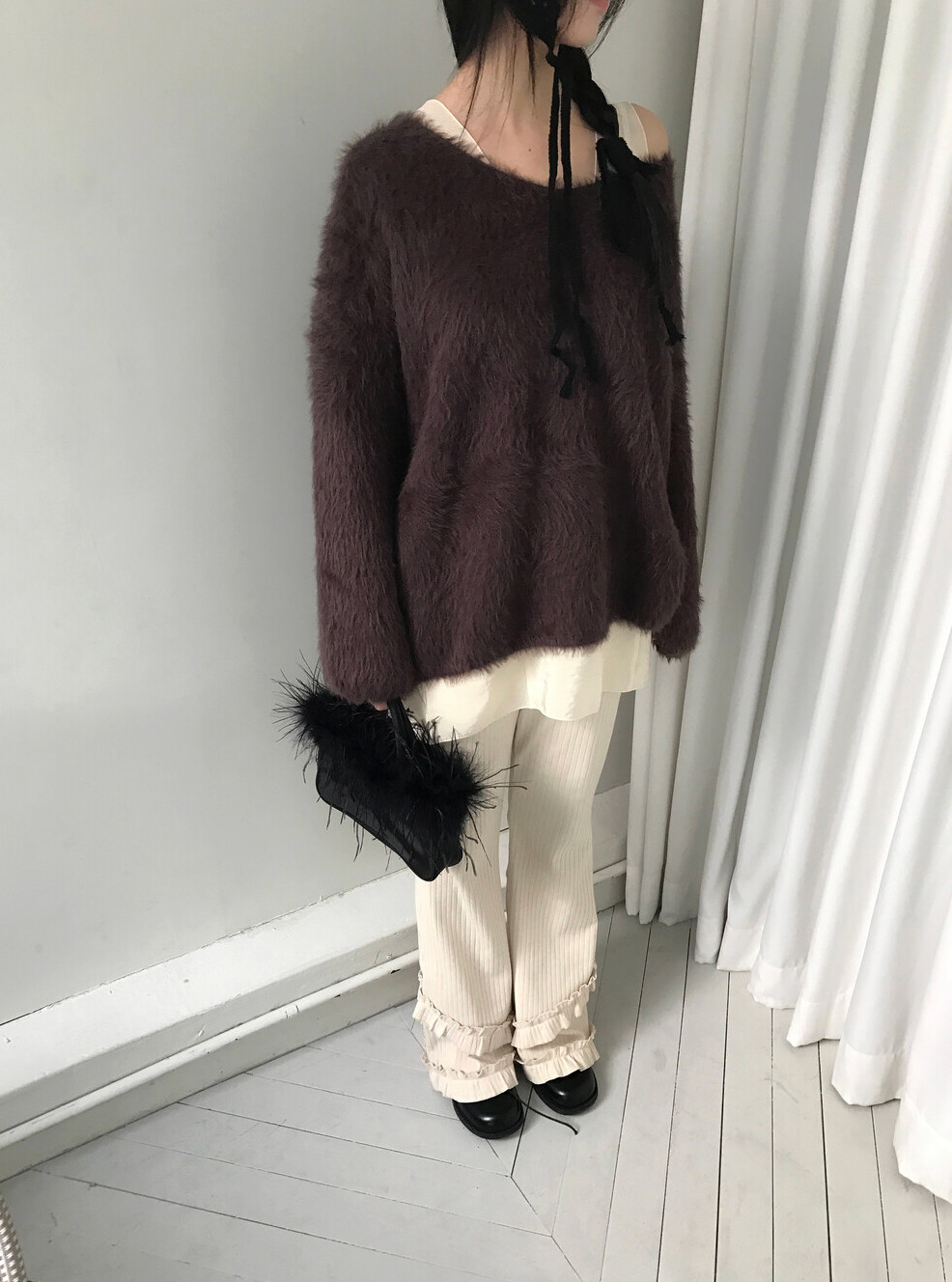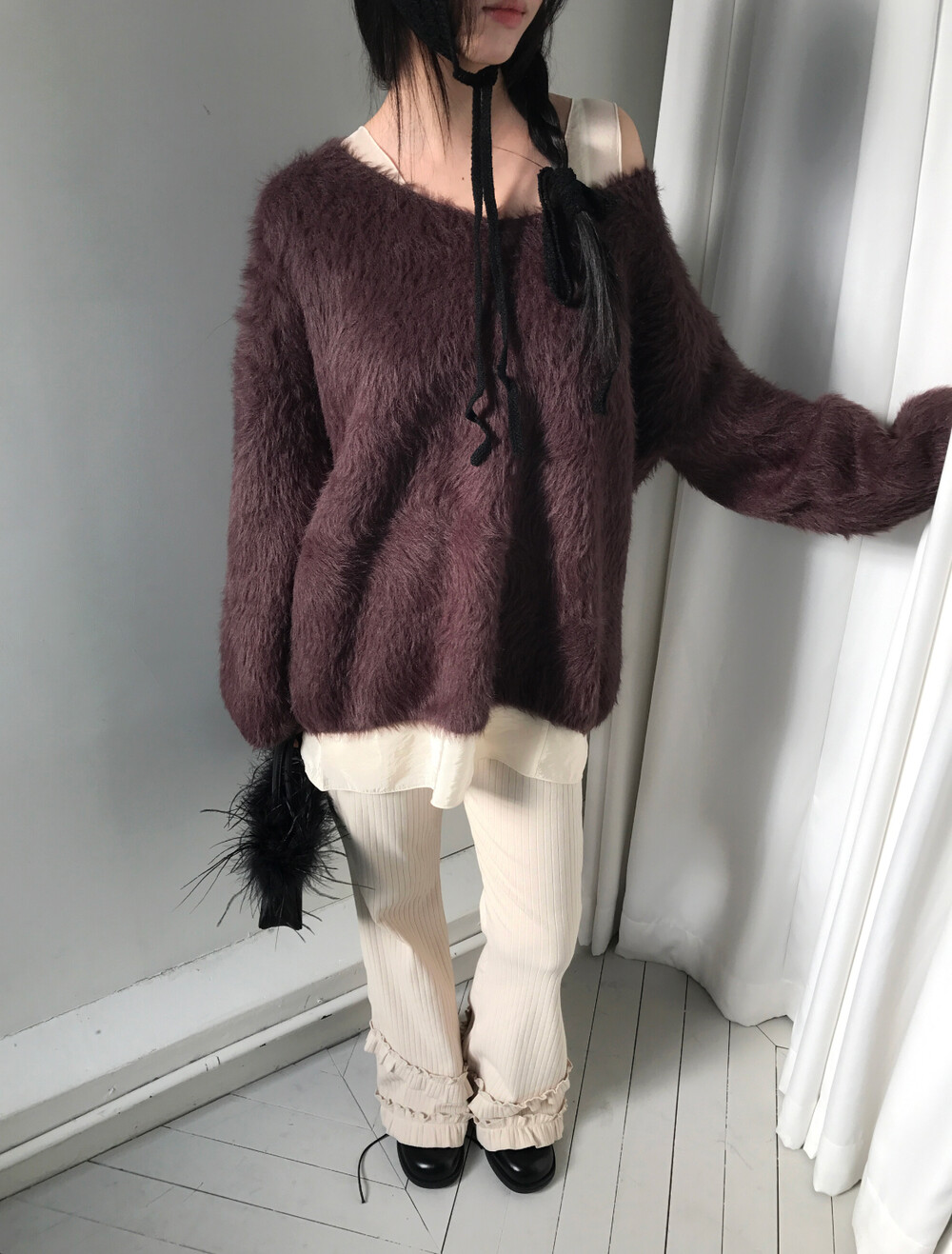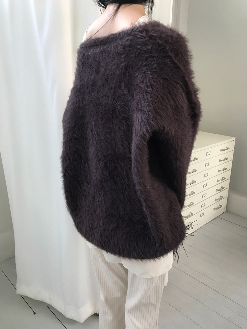 헤어리한 텍스쳐가 돋보이는 소재의 루즈핏 니트.