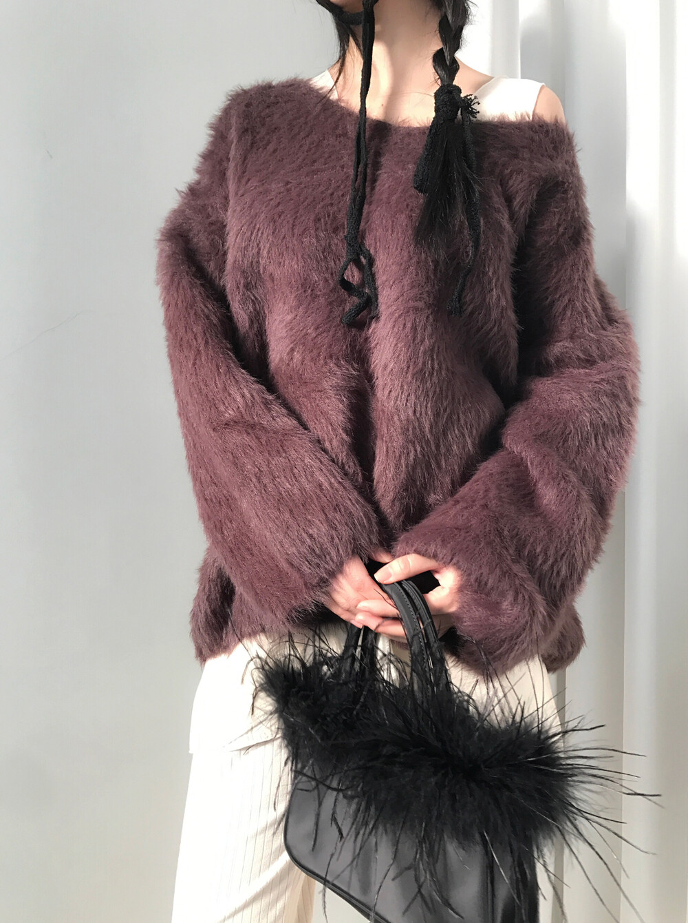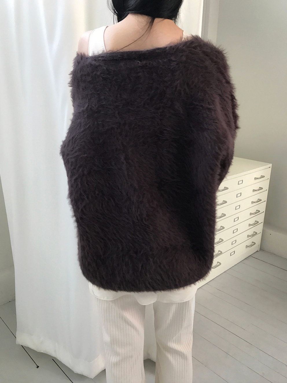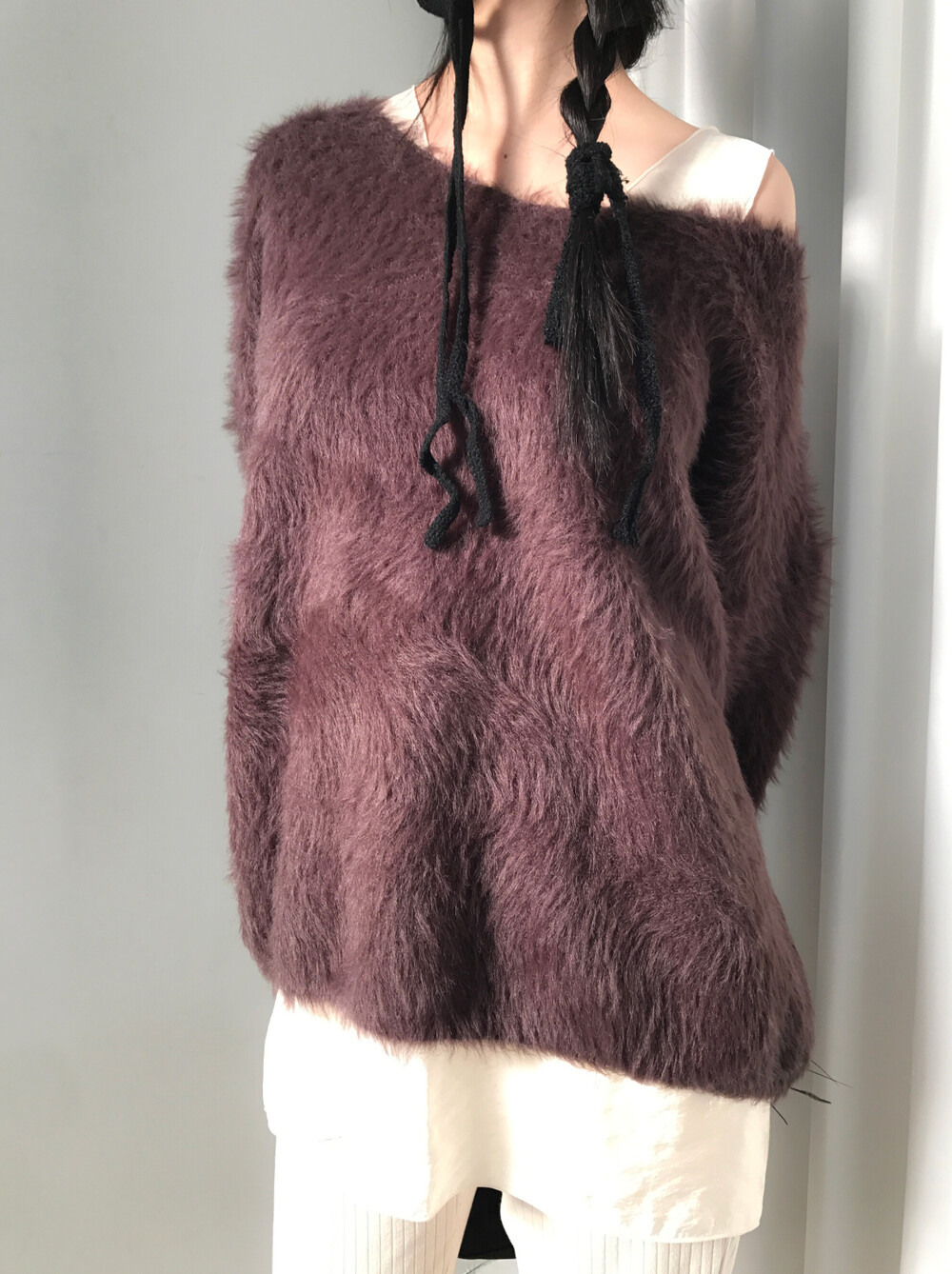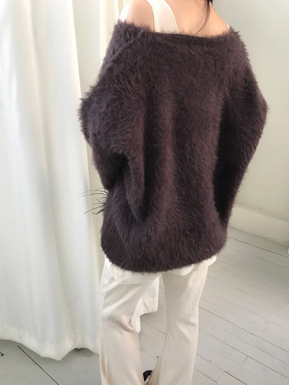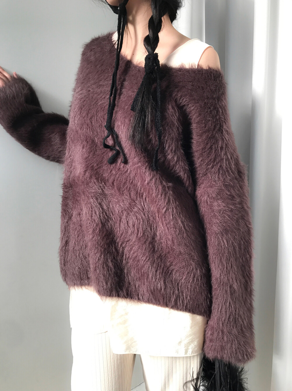 헤어리한 텍스쳐가 돋보이는 소재의 루즈핏 니트.