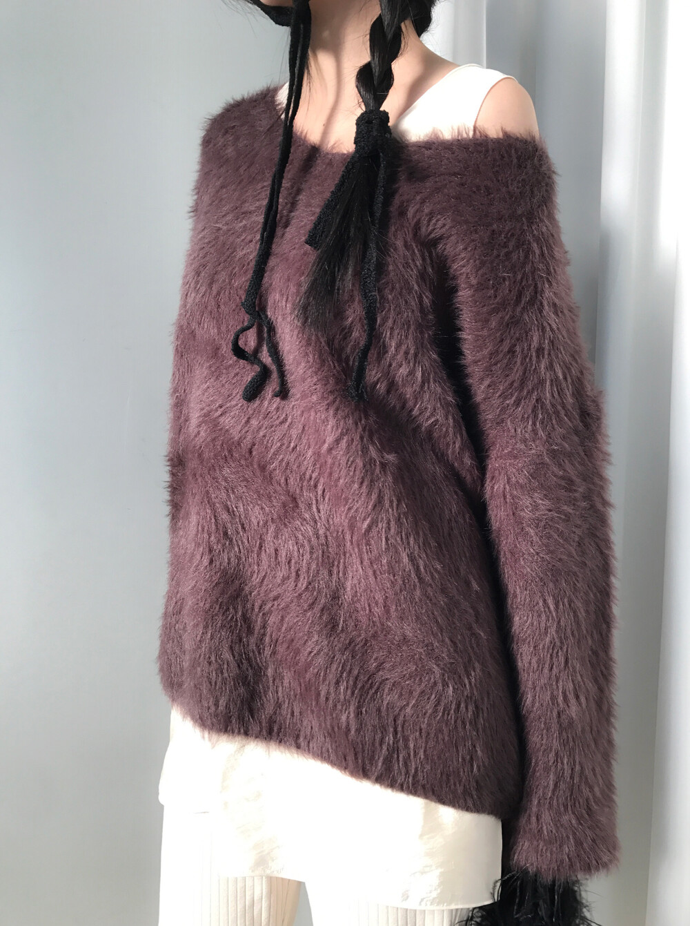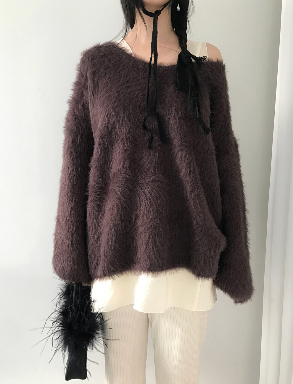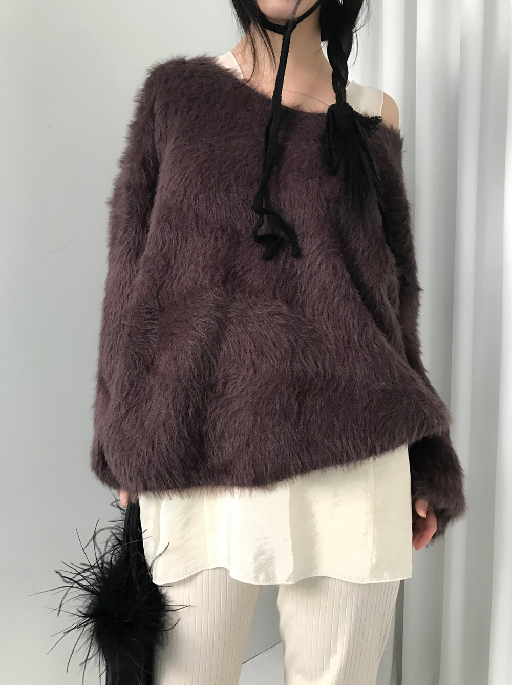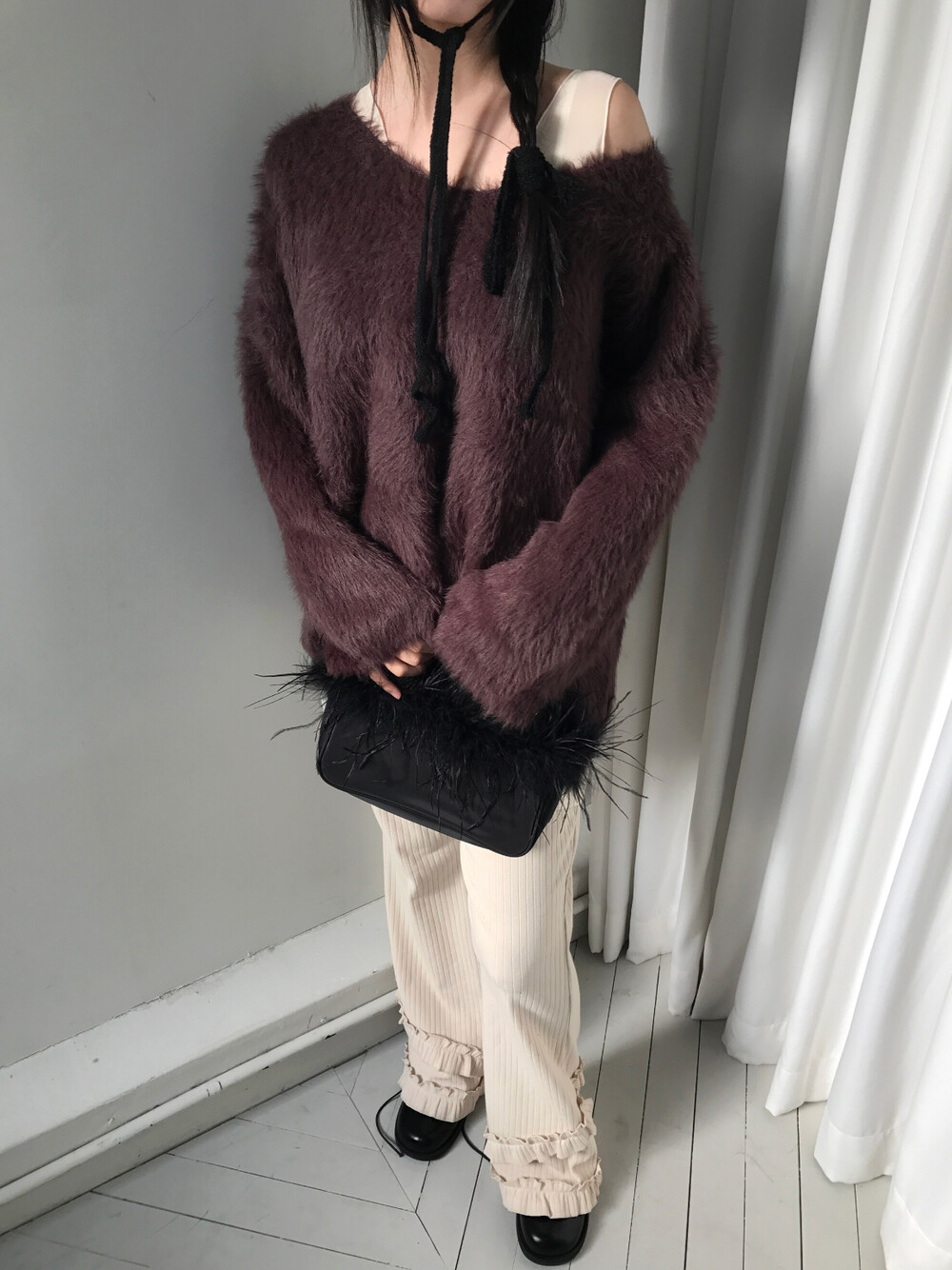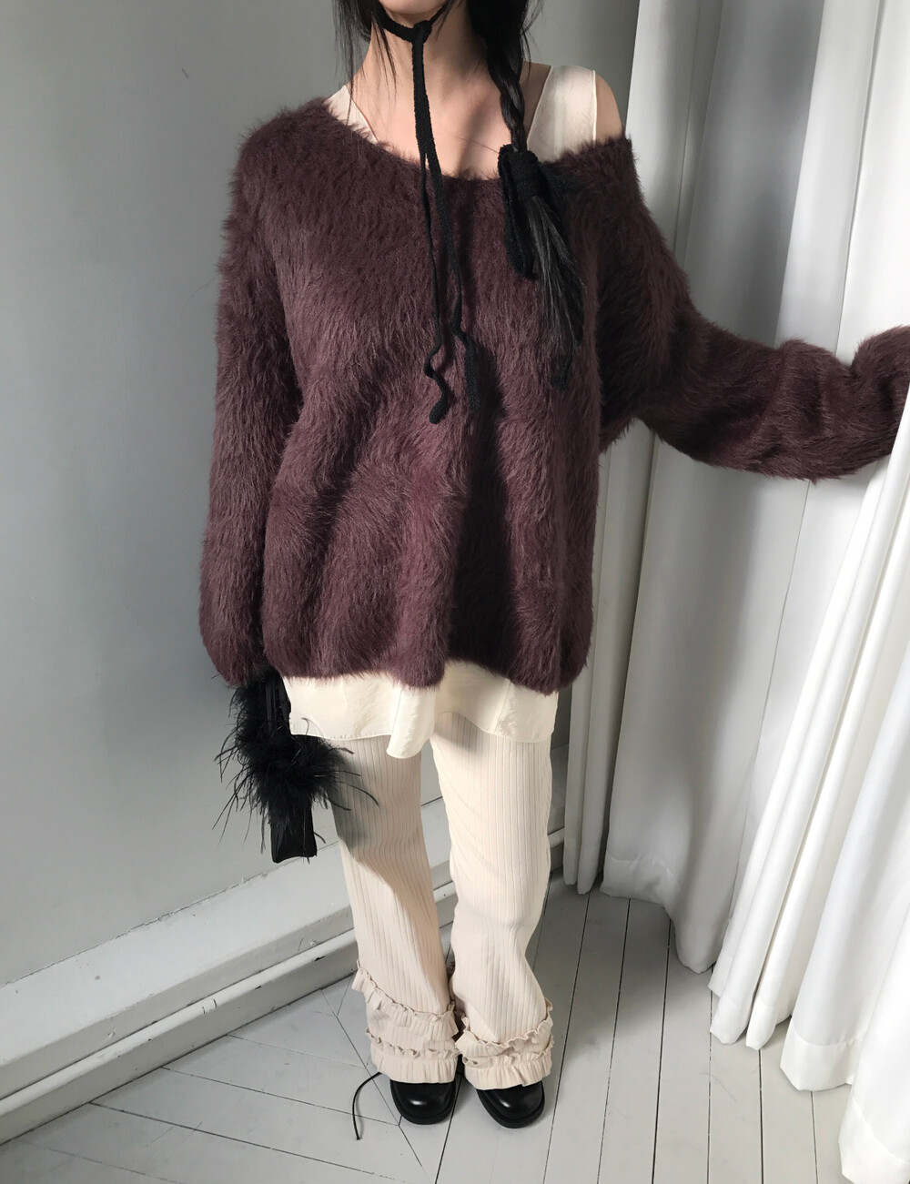 헤어리한 텍스쳐가 돋보이는 소재의 루즈핏 니트.