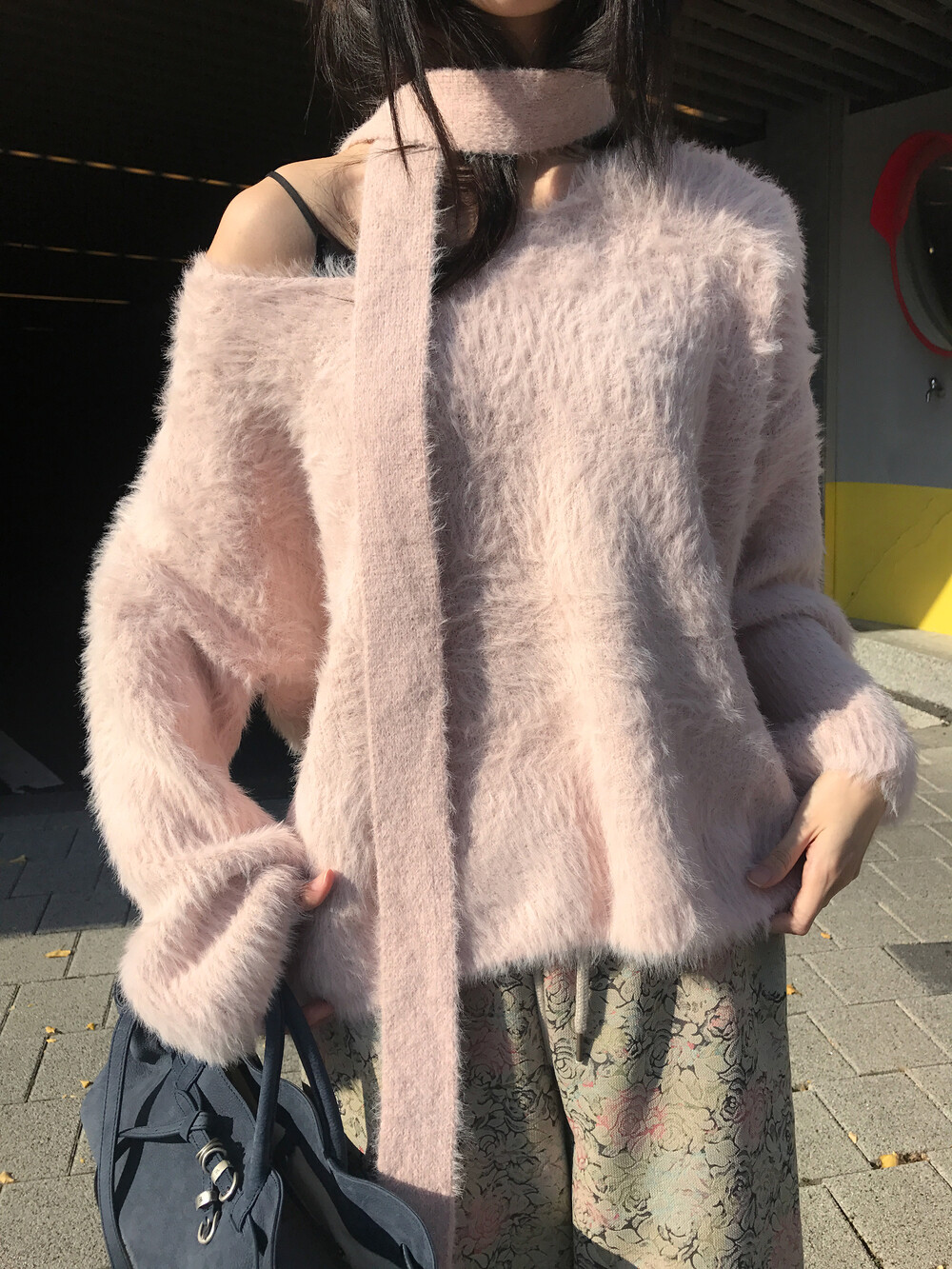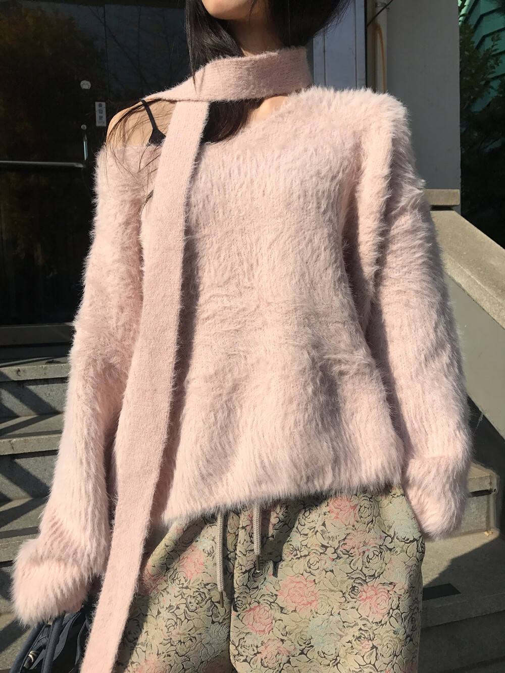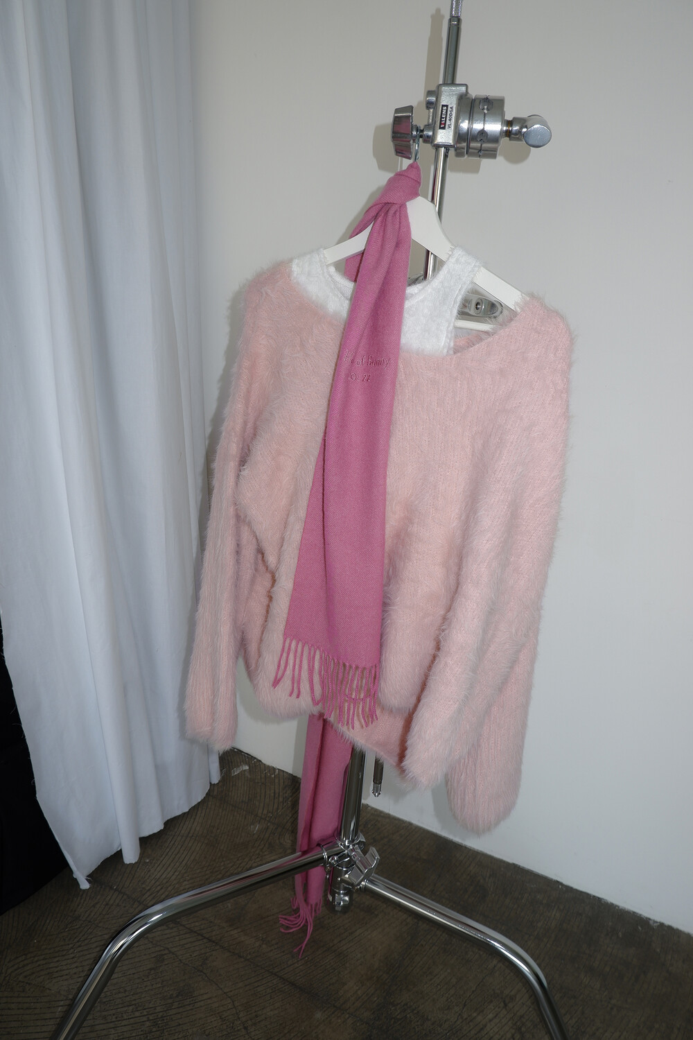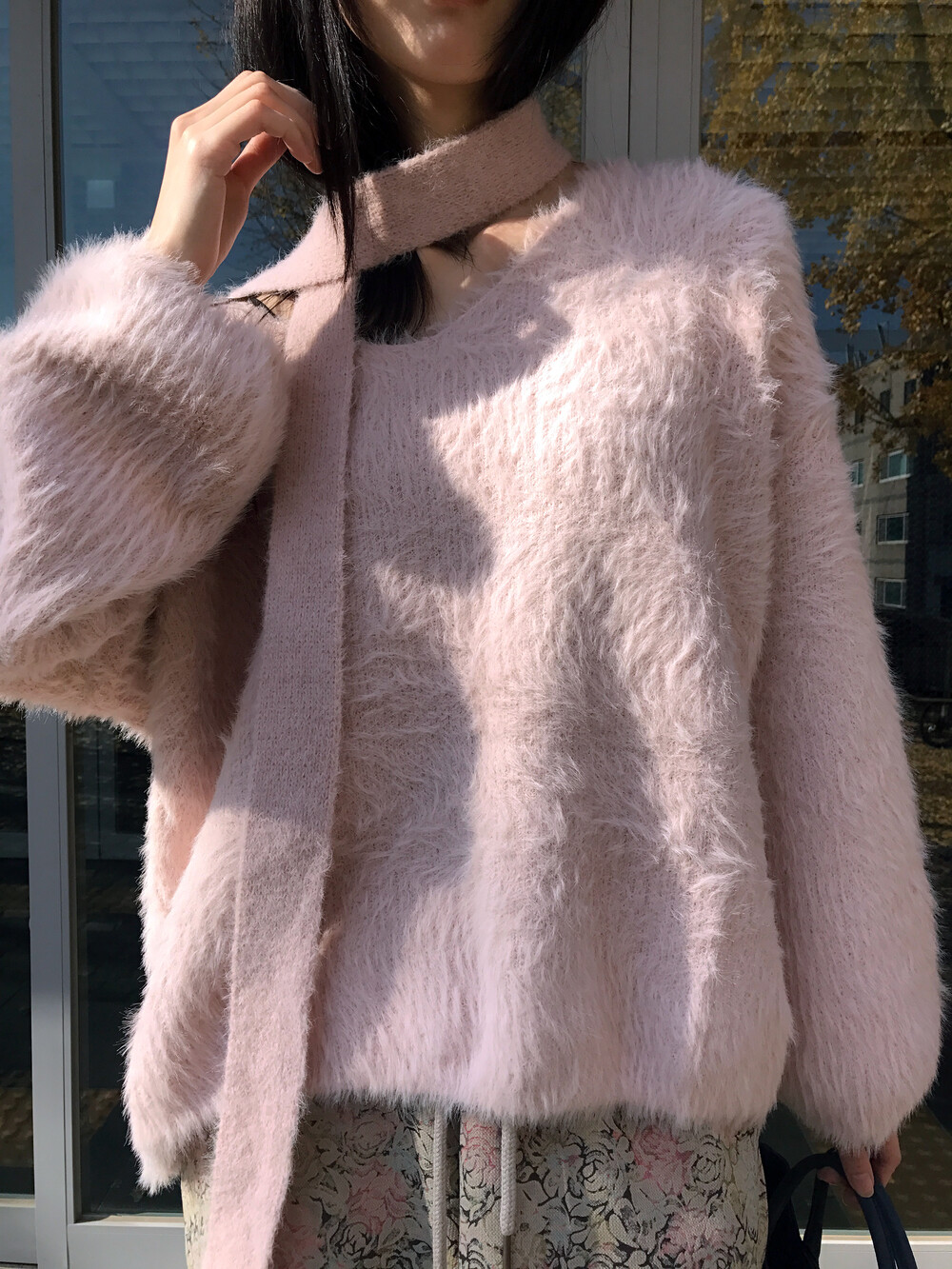 Baby Fur Loose Knit + Muffler Set, Baby Pink (3c)