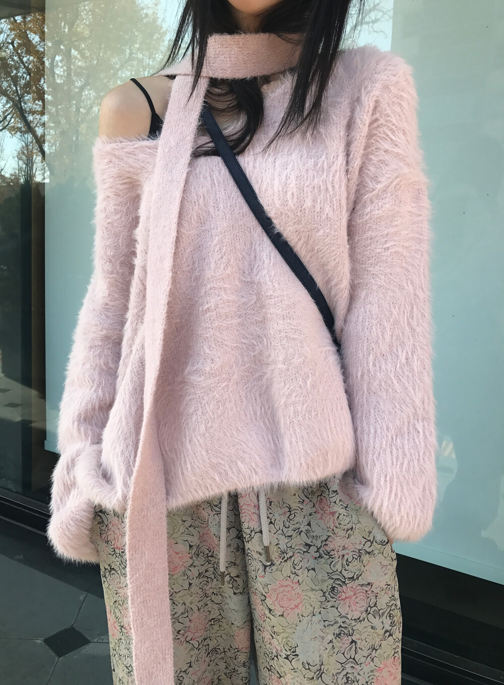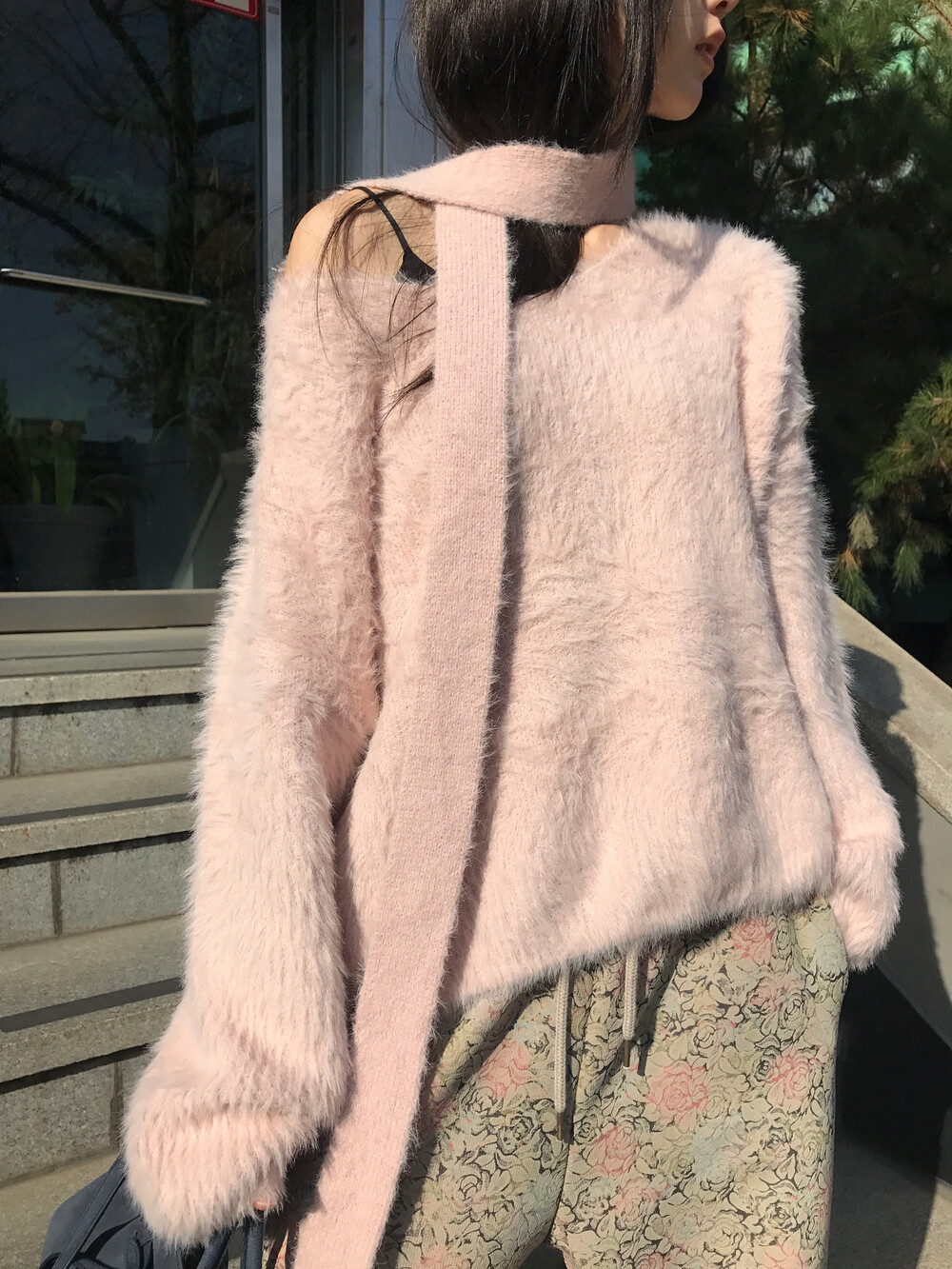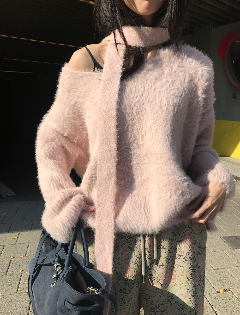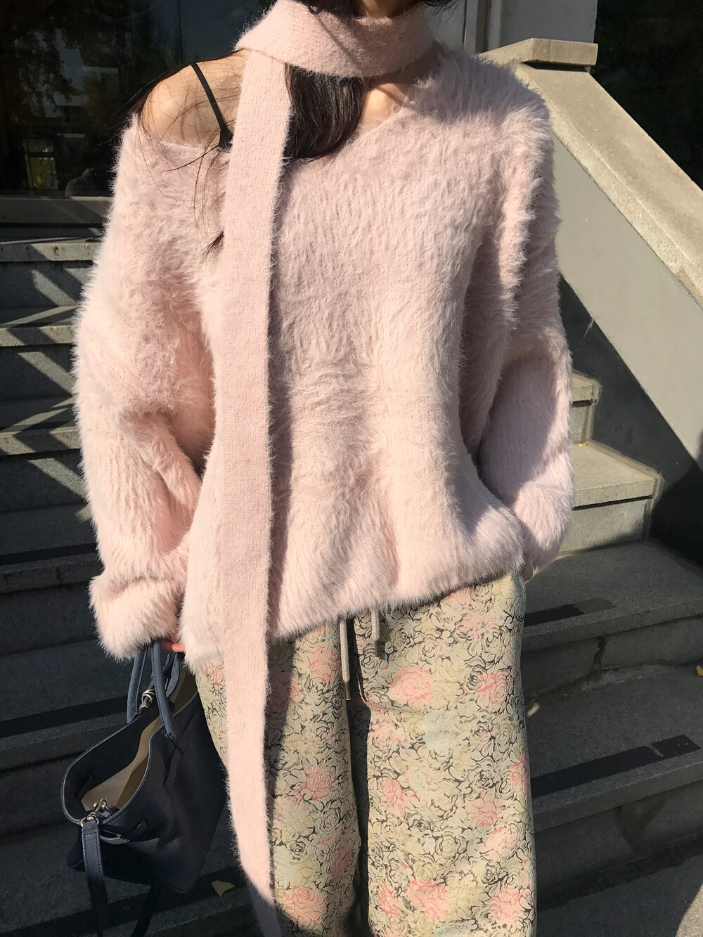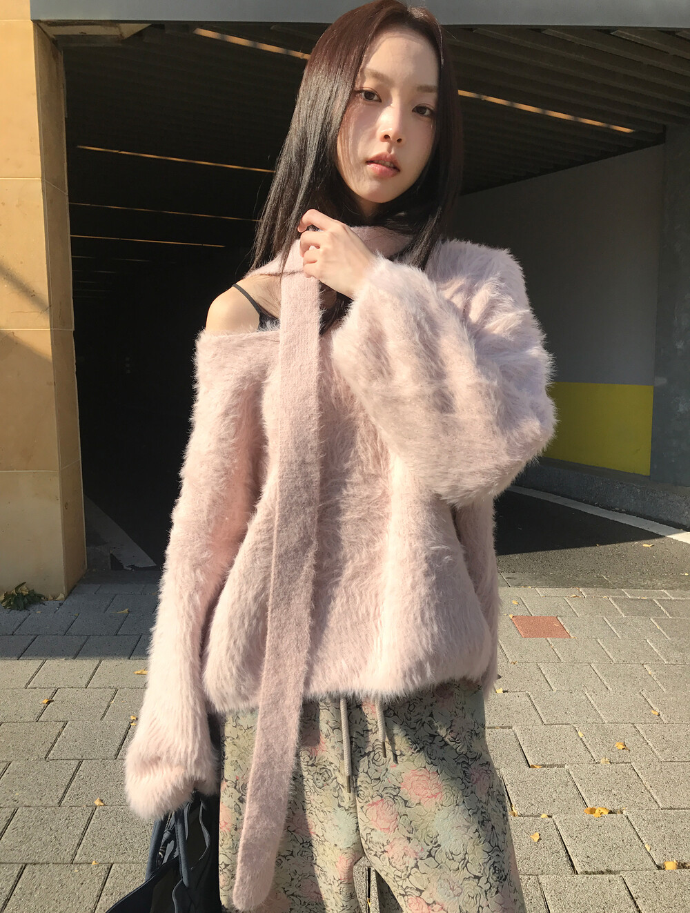 Baby Fur Loose Knit + Muffler Set, Baby Pink (3c)