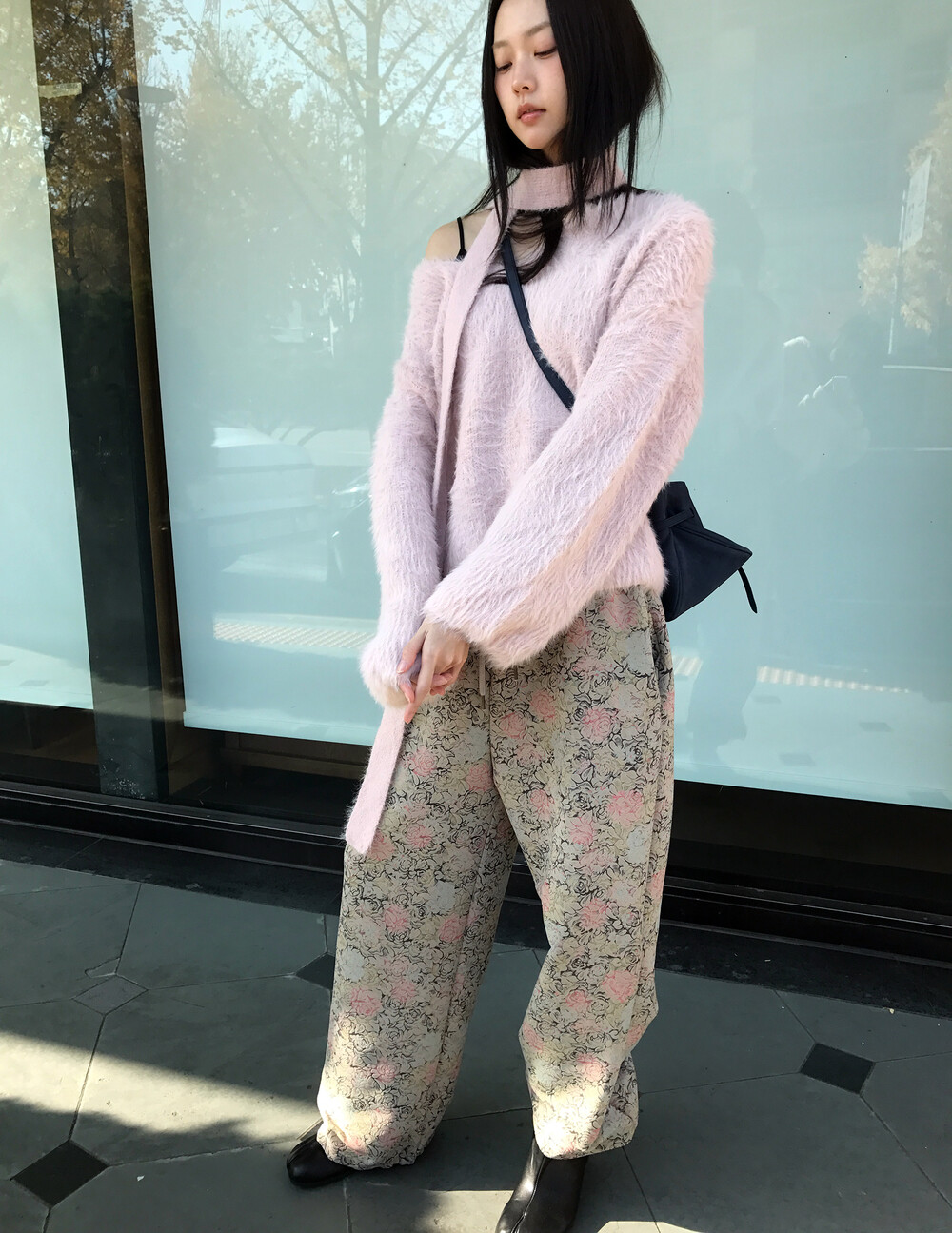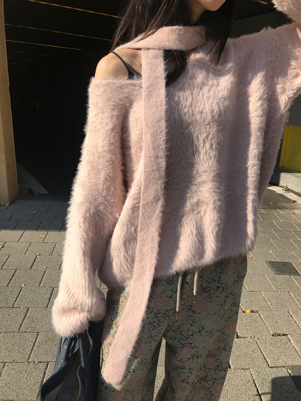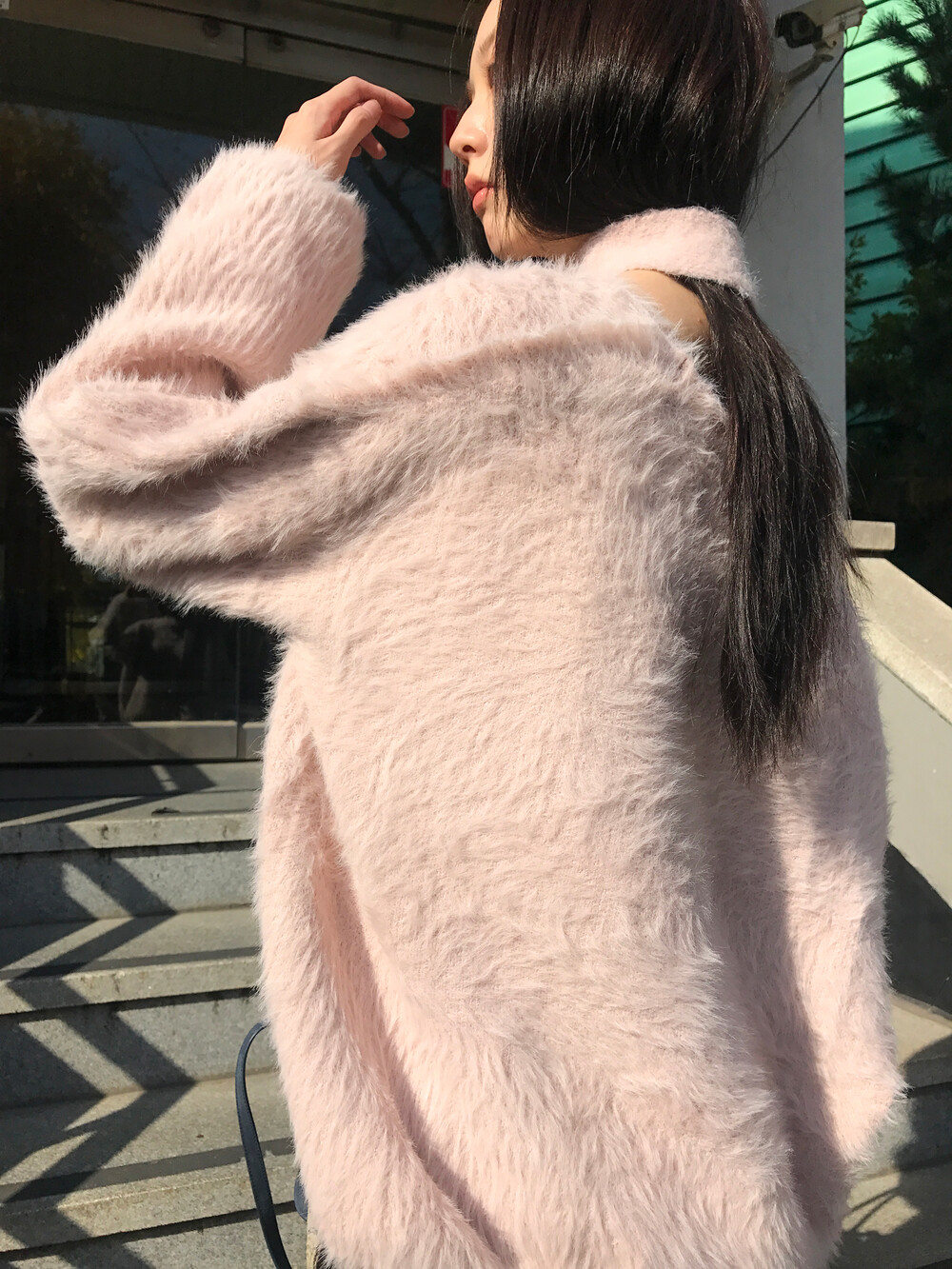 헤어리한 텍스쳐가 돋보이는 소재의 루즈핏 니트.