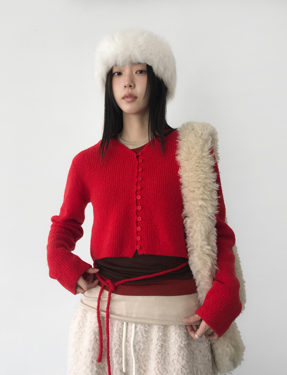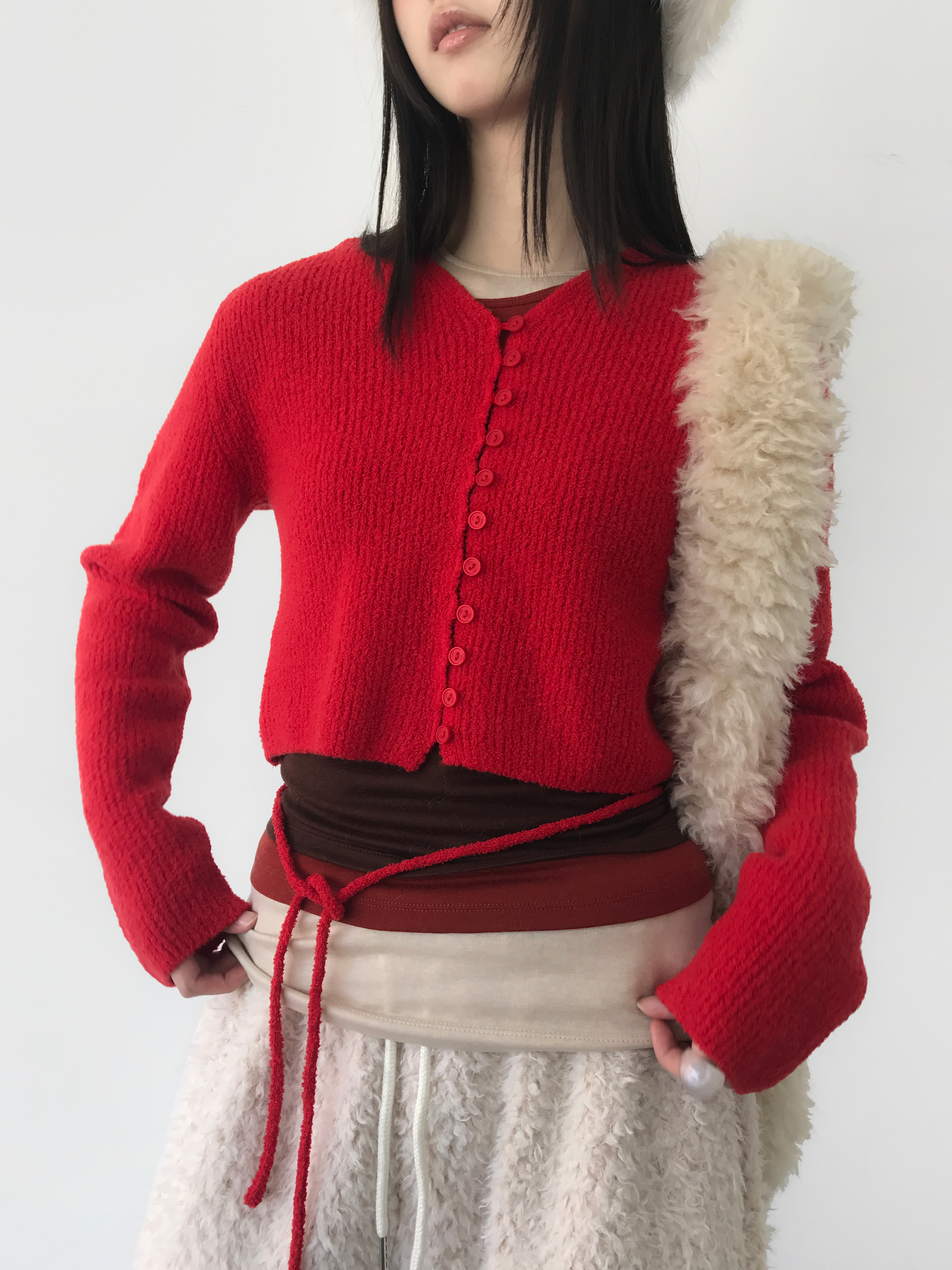 Cloud Boucle Cardigan, Red (2c)