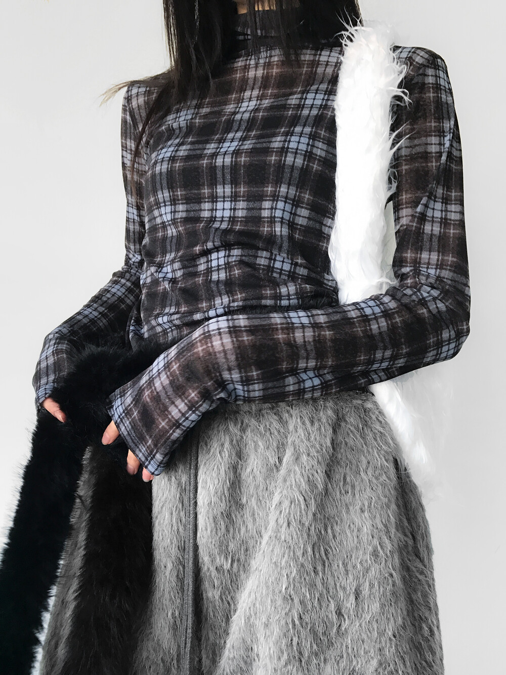 Kirch Warmer High Neck Top, Blue Check (6c)