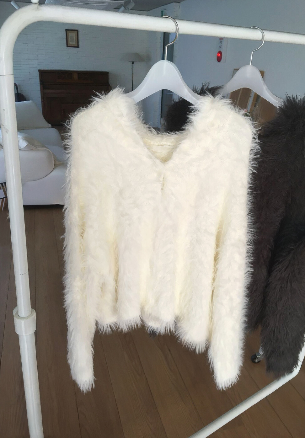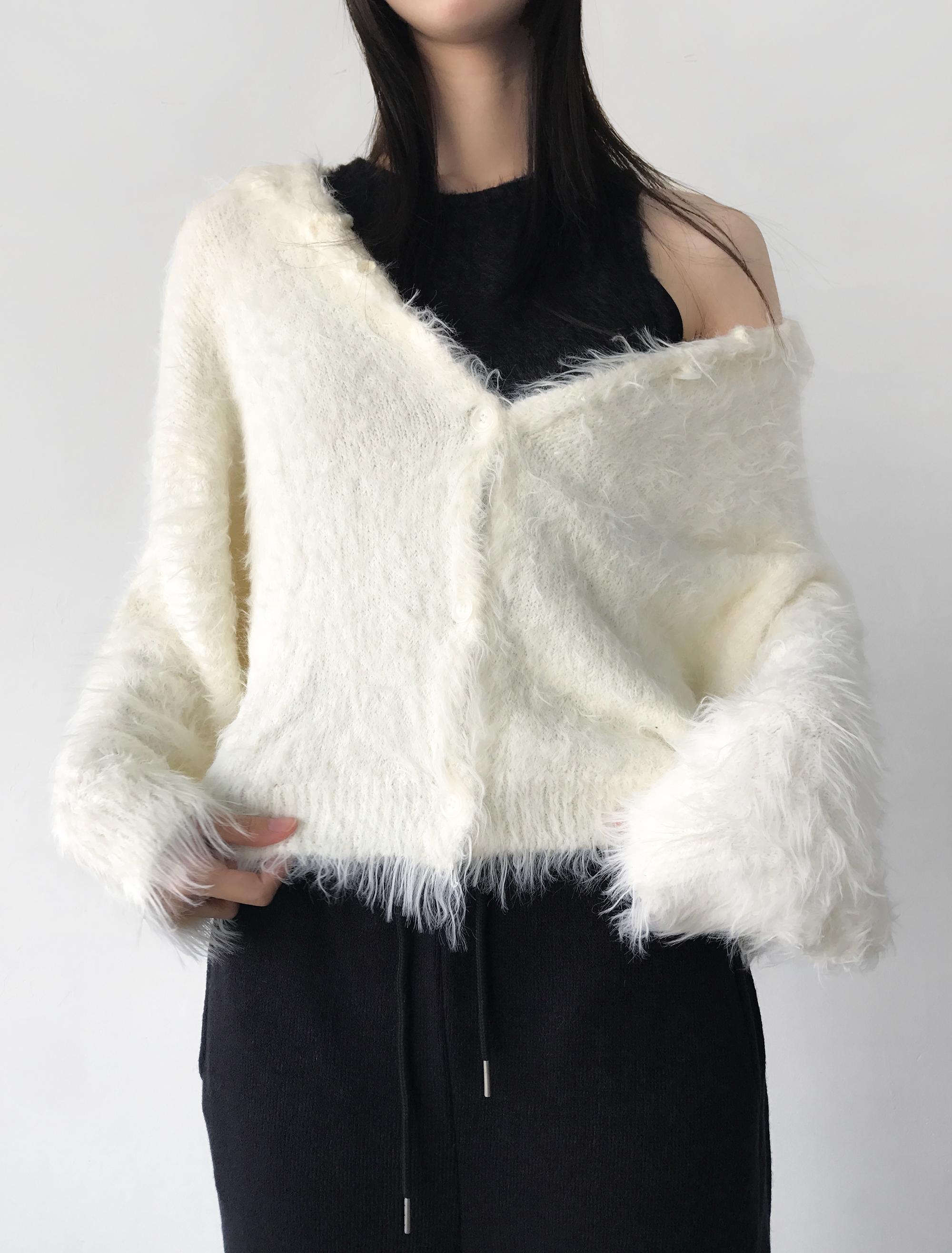 Yeti Fur Hood Cardigan, Snow White (2c)