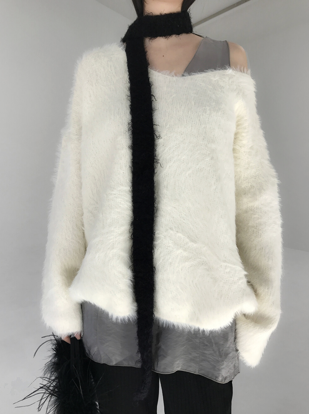 헤어리한 텍스쳐가 돋보이는 소재의 루즈핏 니트.