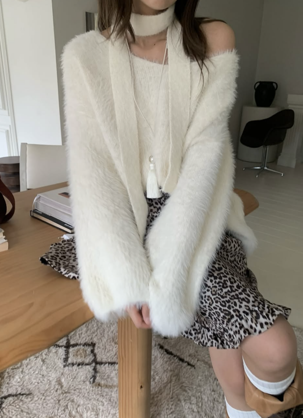 그리고 가장 큰 장점! 바로 털빠짐, 털날림 정말 거의 거의 99% 없어요! (막 세게 잡아당기면... 빠질 수도 있겠지만요!) 그래서 정말 걱정없이 여기저기에 입기 너무 좋으실거예요.