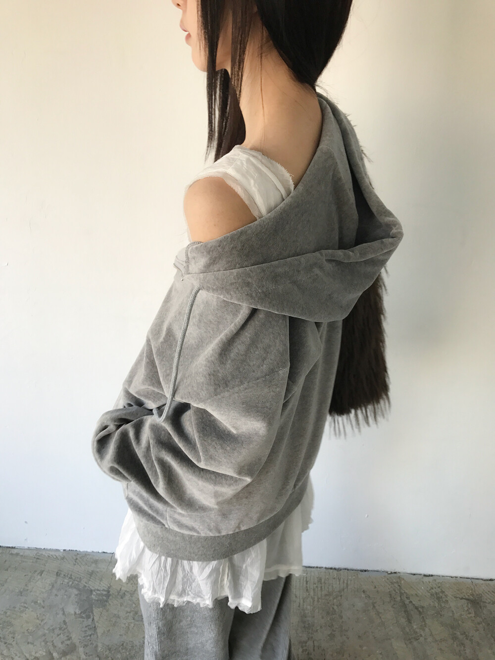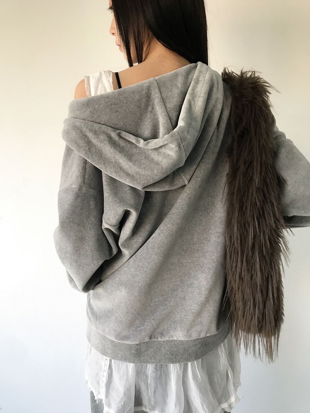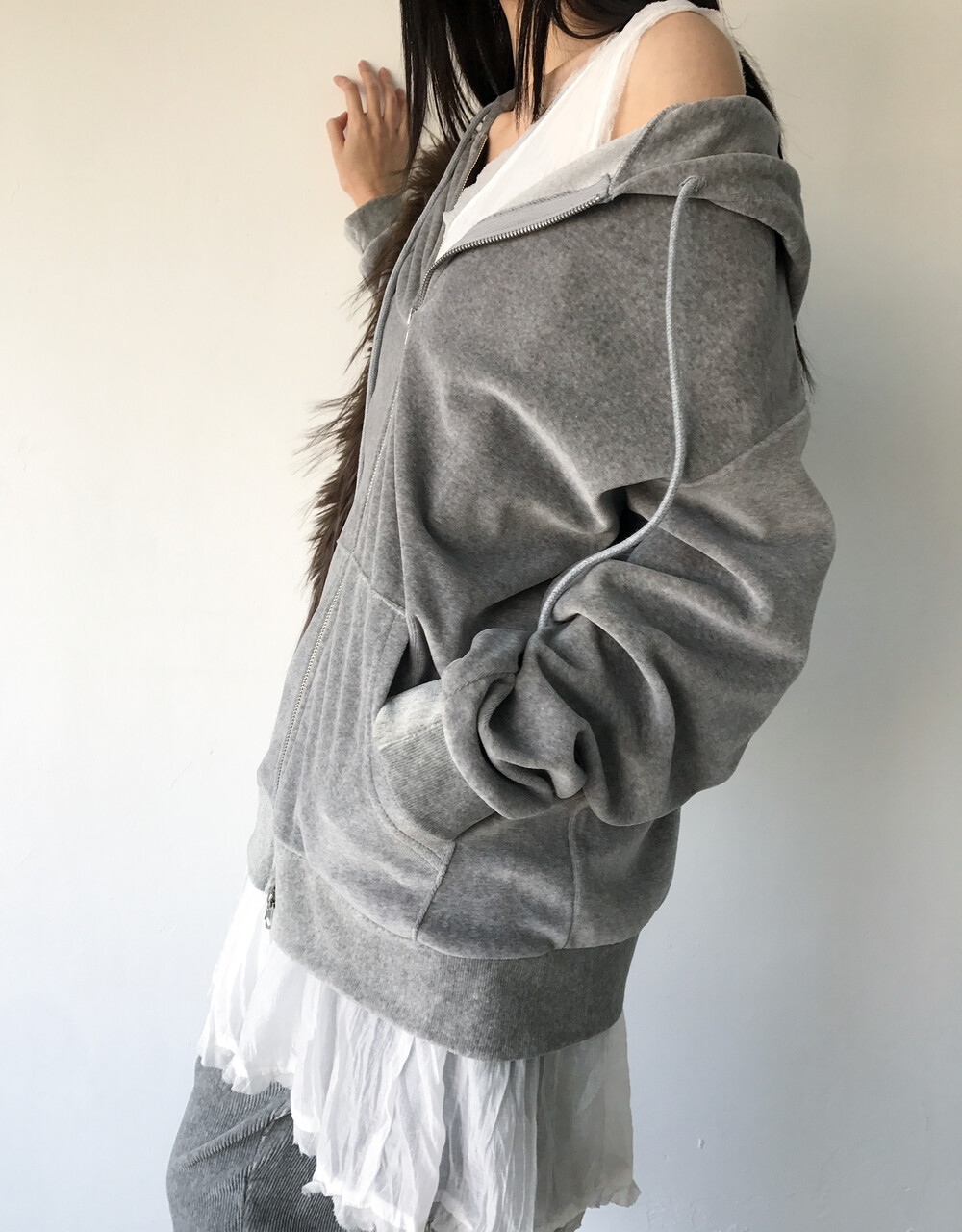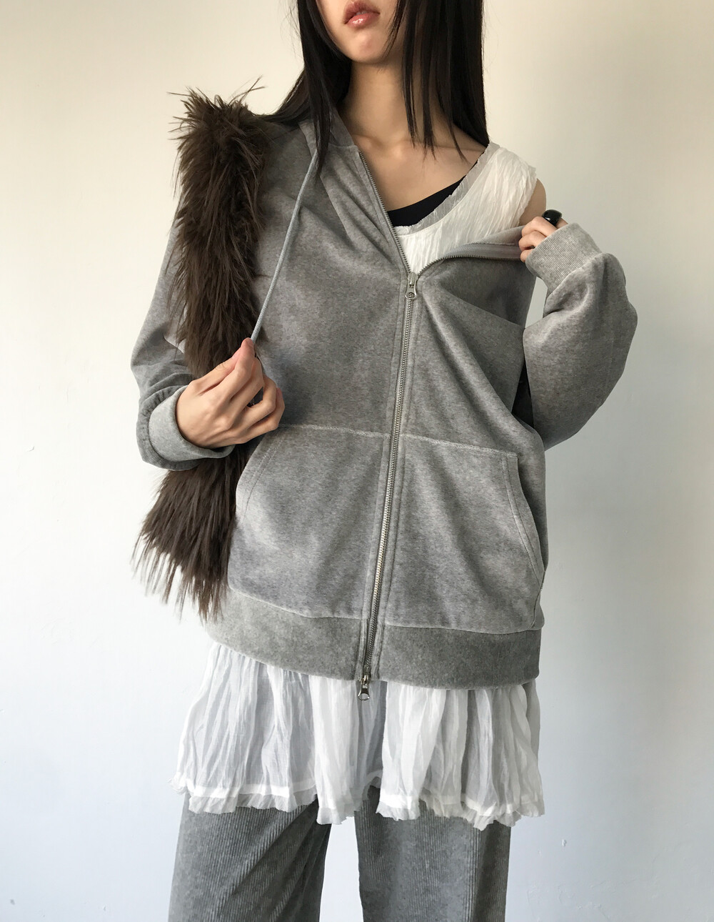 Bubu Velvet Hood Zip-up, Grey (2c)
