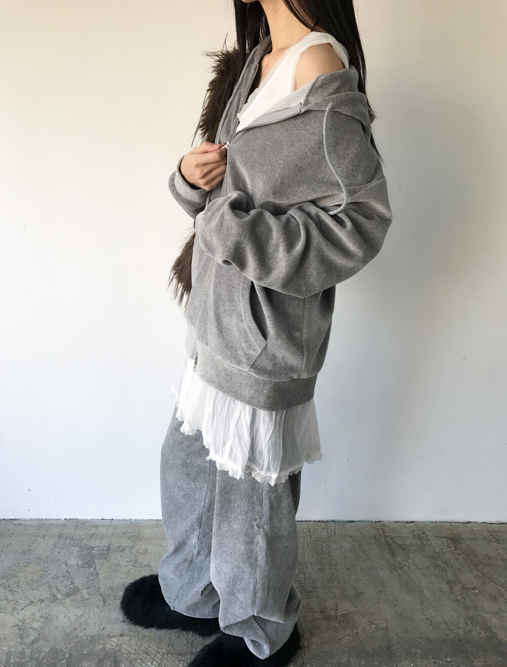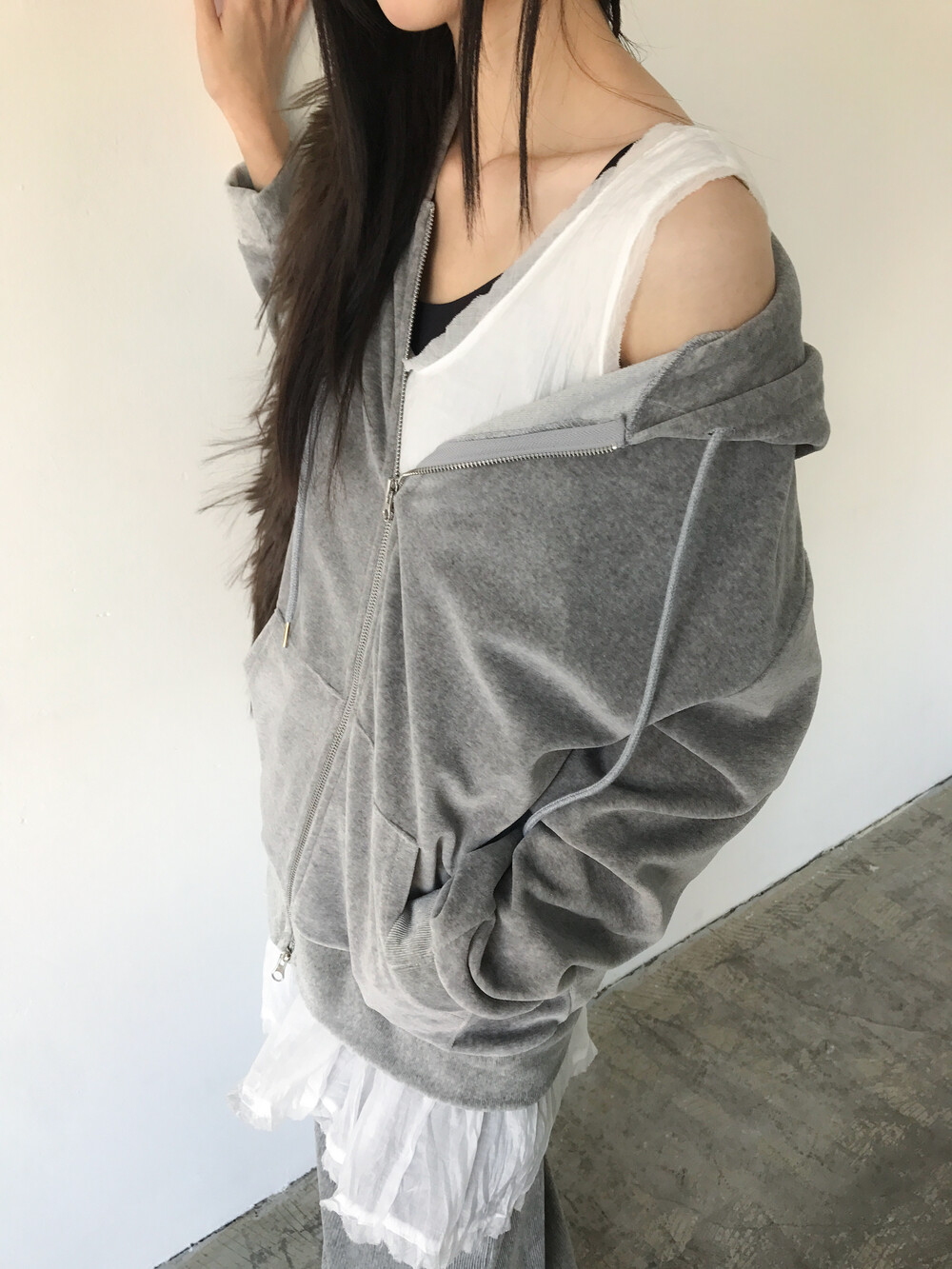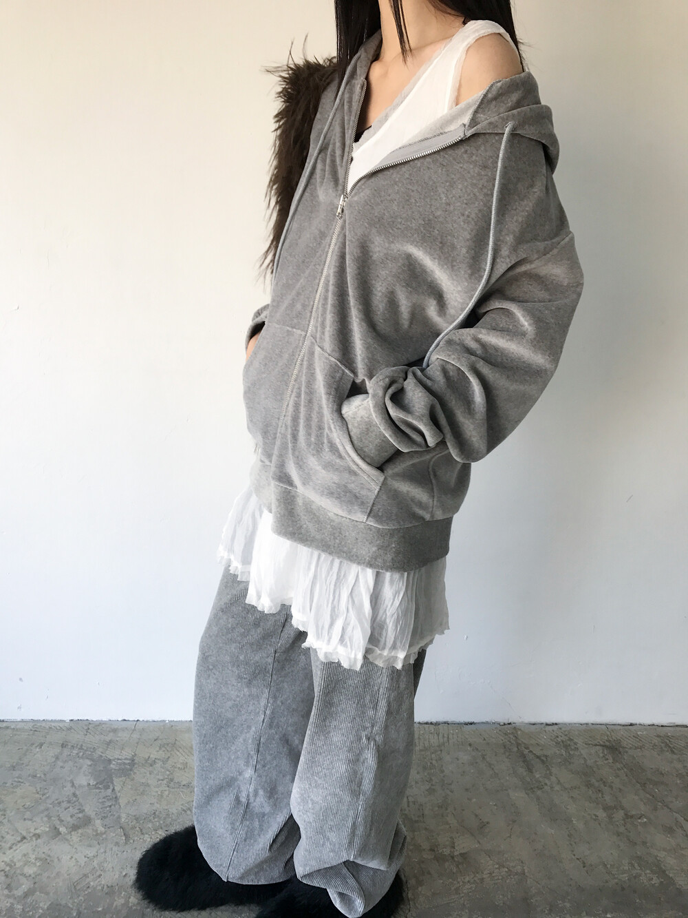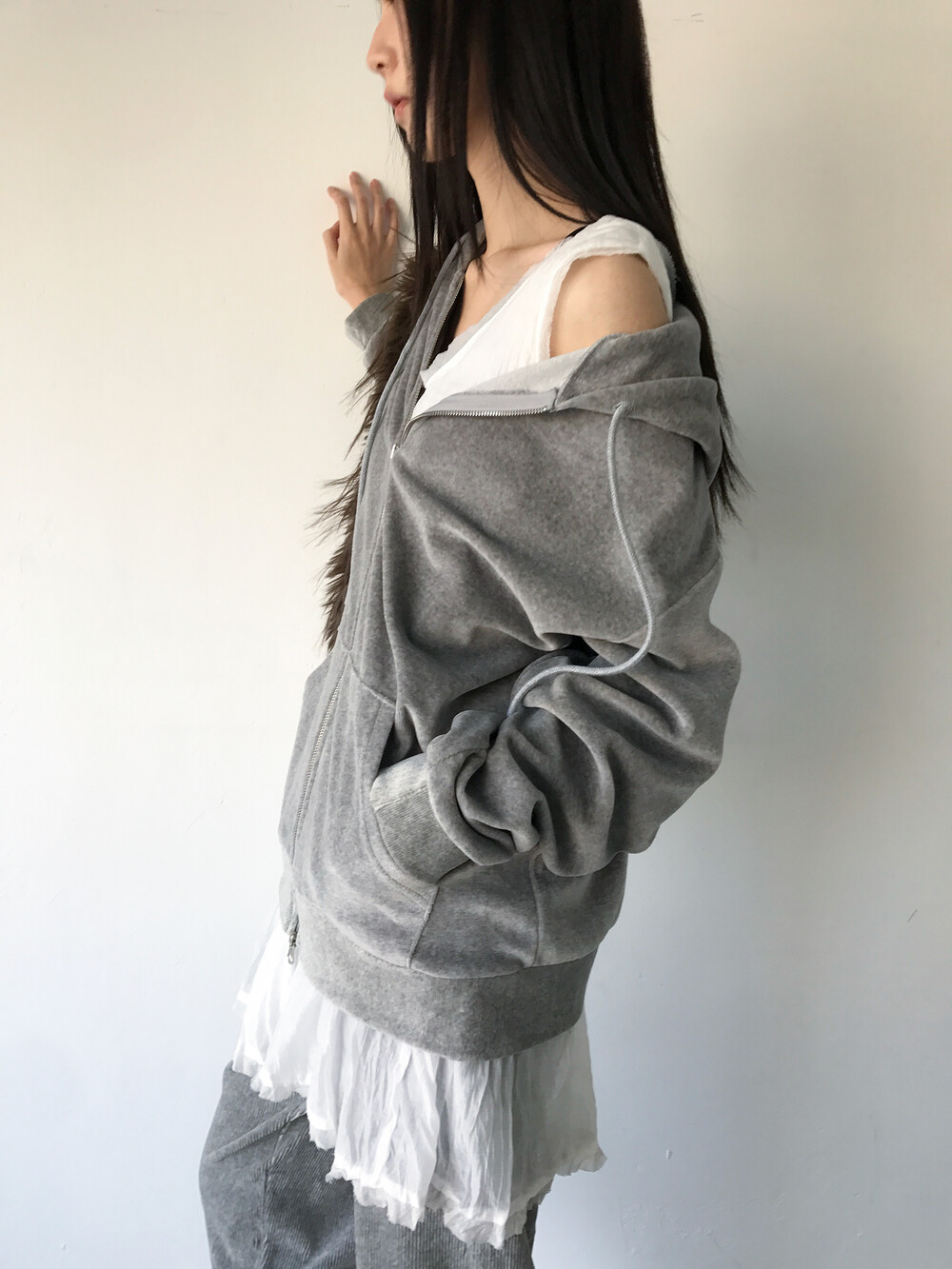Bubu Velvet Hood Zip-up, Grey (2c)