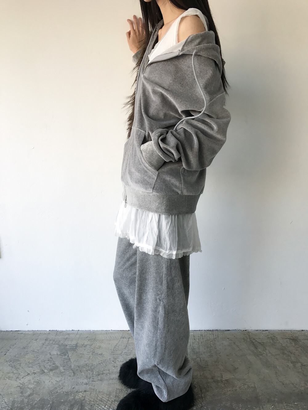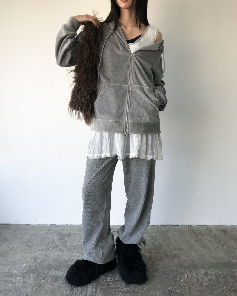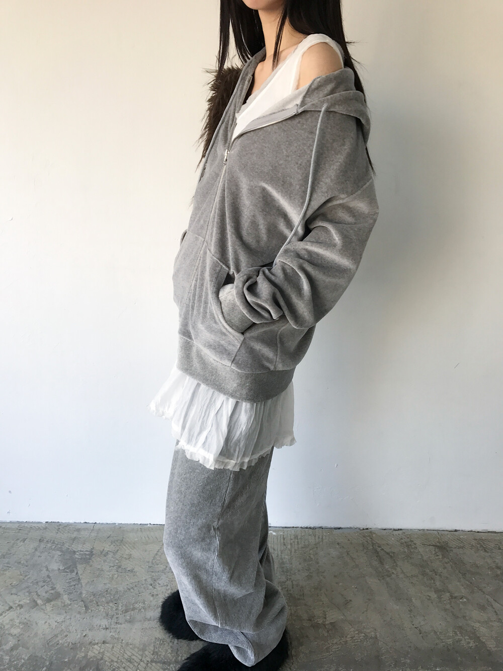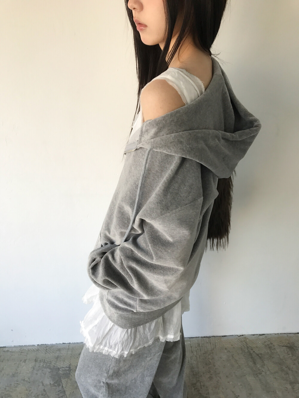 Bubu Velvet Hood Zip-up, Grey (2c)