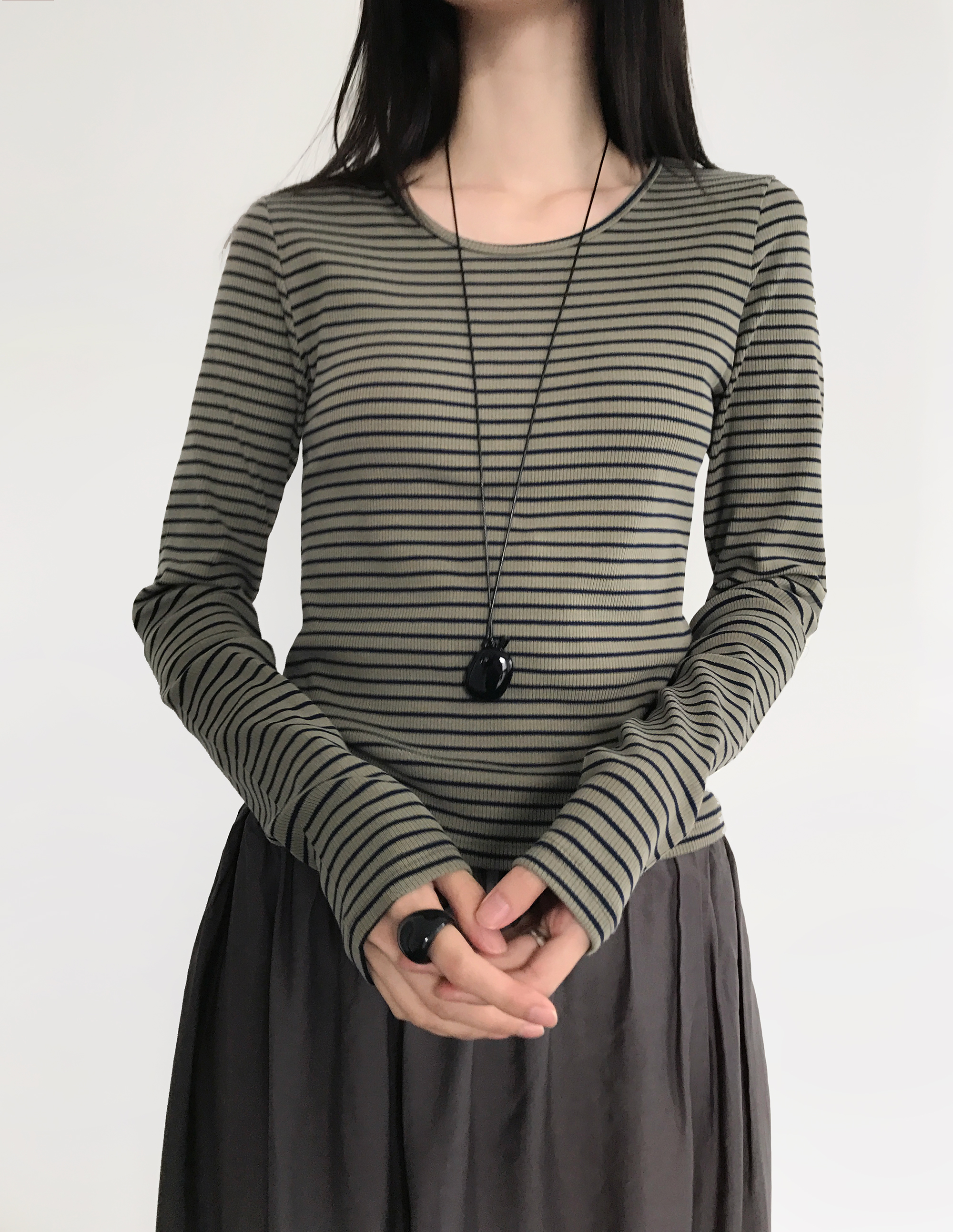 Haze Stripe Slim Top, Khaki (2c)