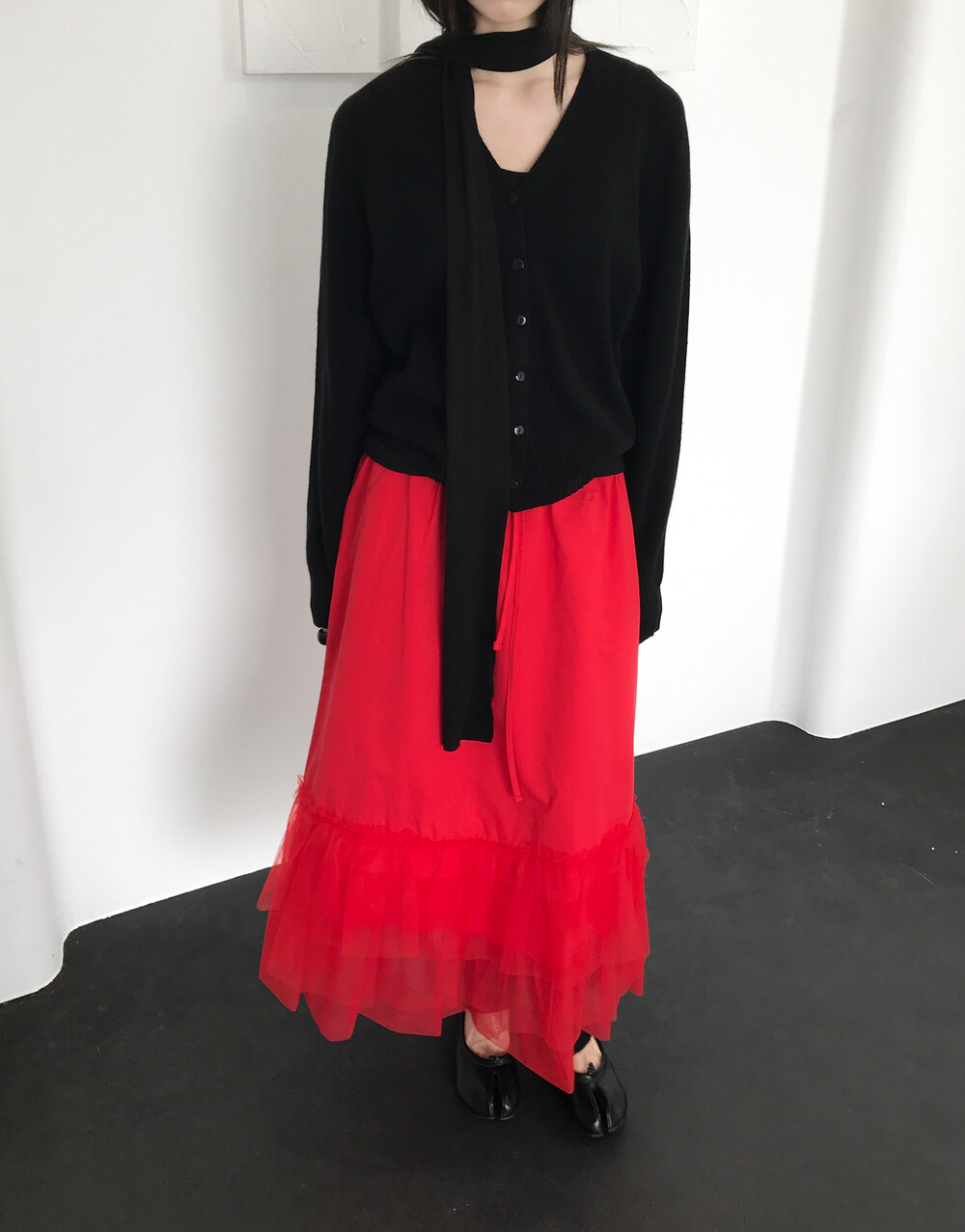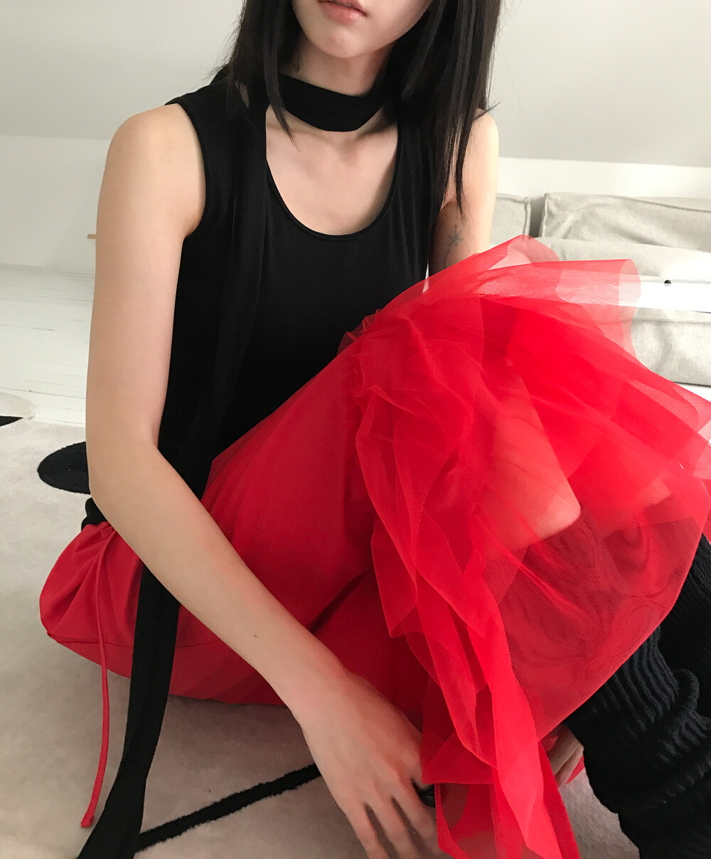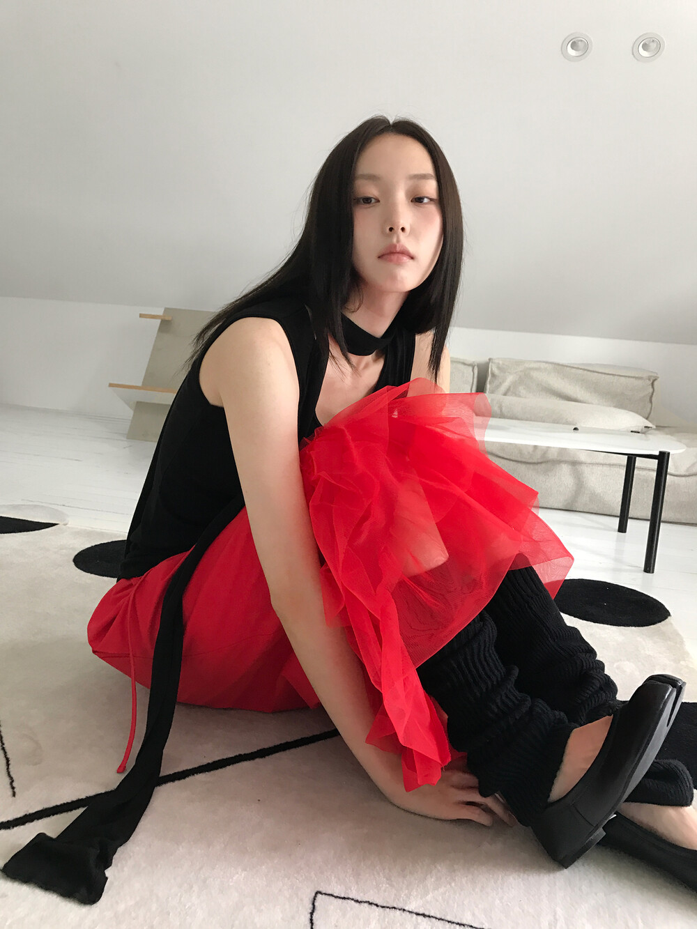 이 테이프 슬리브리스가 다른 나시와 다른점은 바로 부드럽고 흐르는 동일한 소재로 제작된 스카프가 세트로 제작되었다는 점이에요.