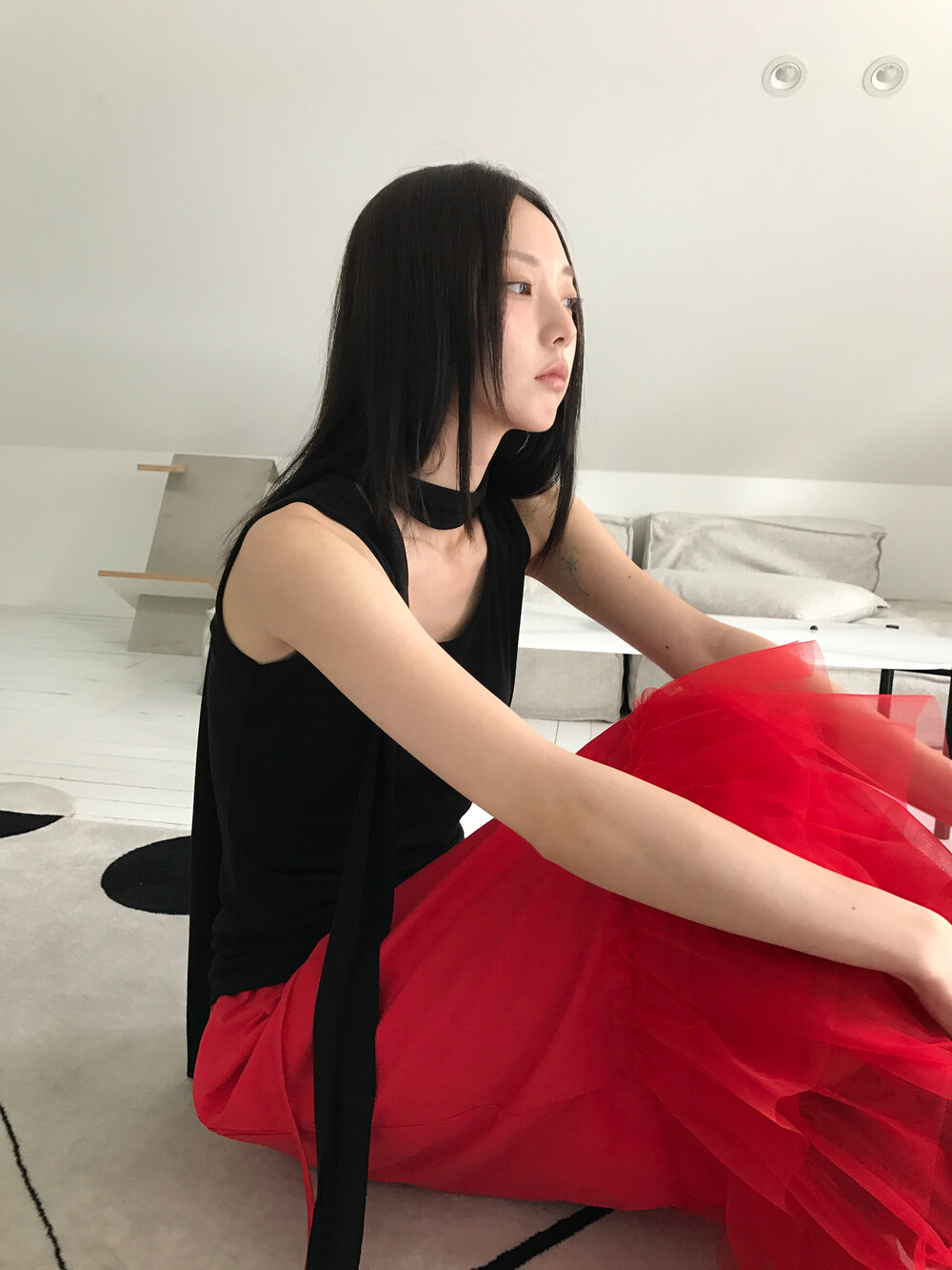 부드럽고 유연한 소재의 FW 시즌에 어울리는 질감을 갖고 있는 탱크탑 슬리브리스입니다.