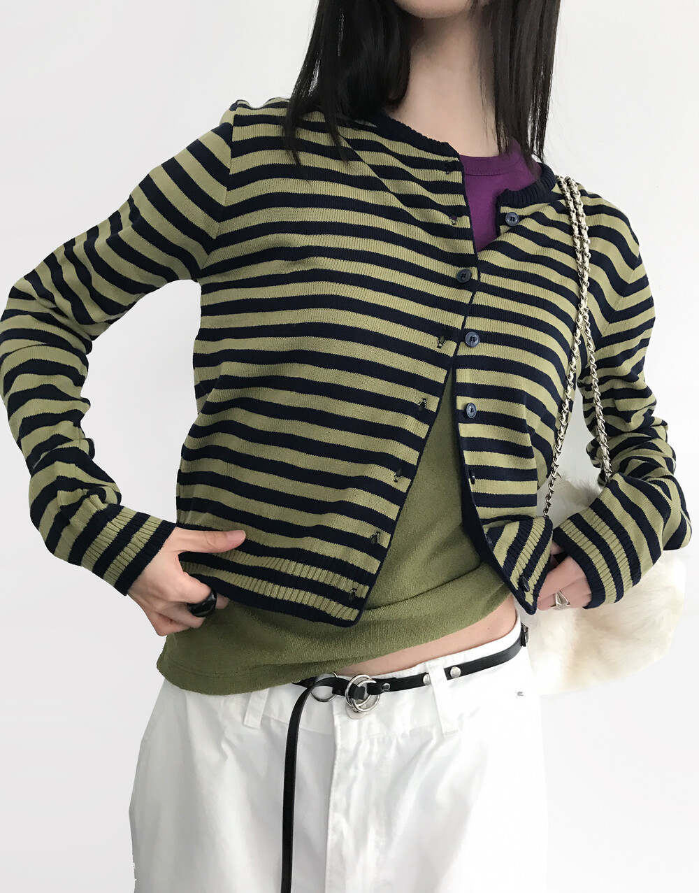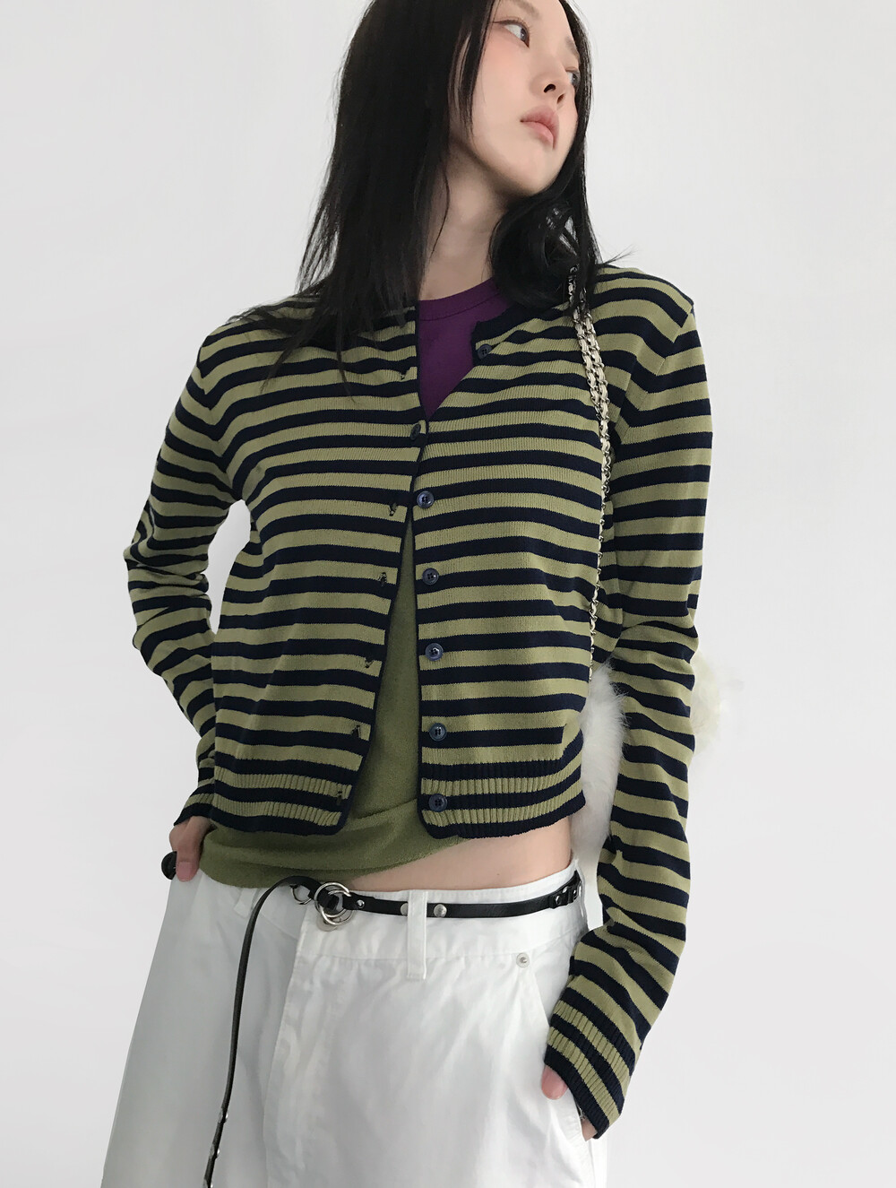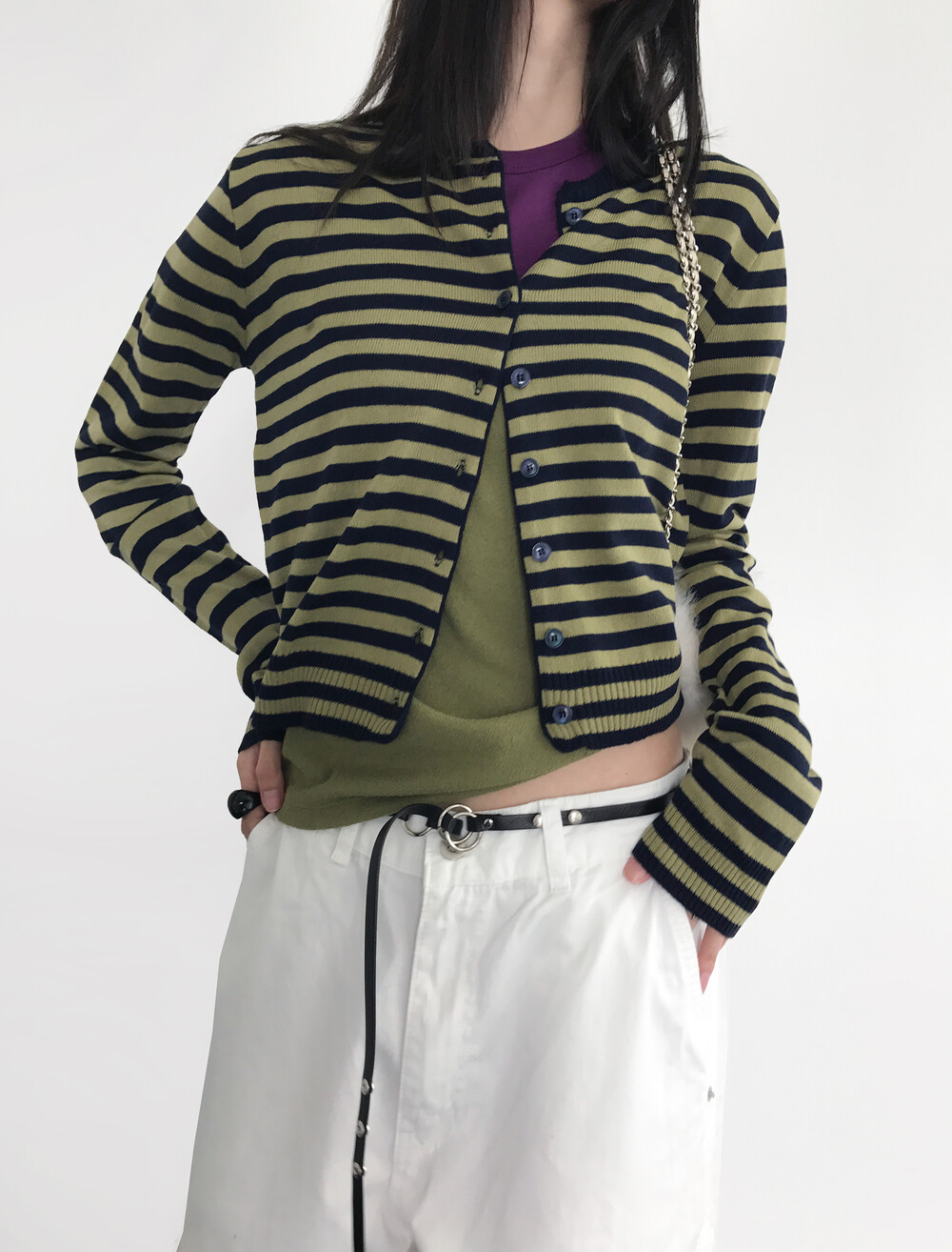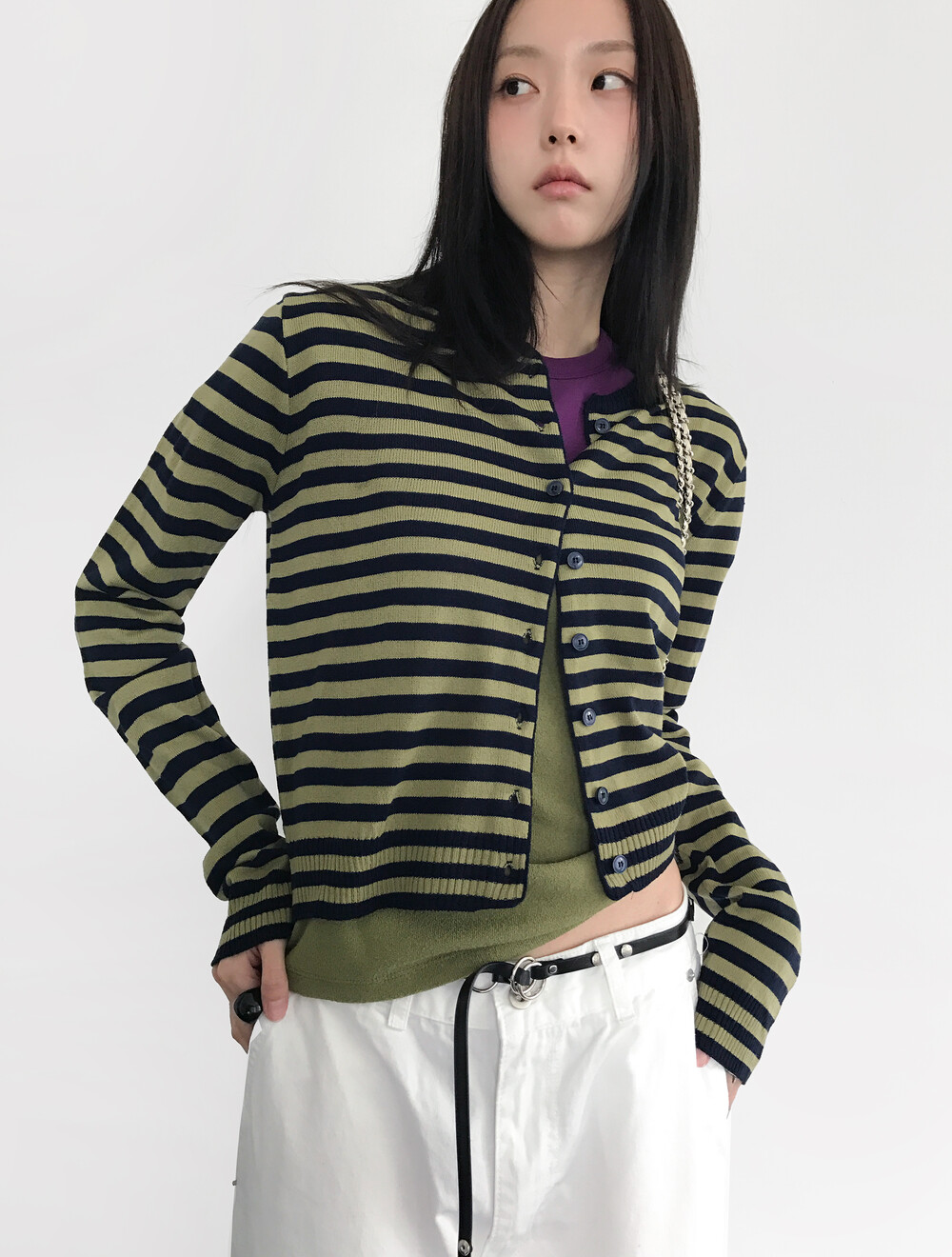 Pipi Stripe Cardigan, Matcha&Navy (2c)