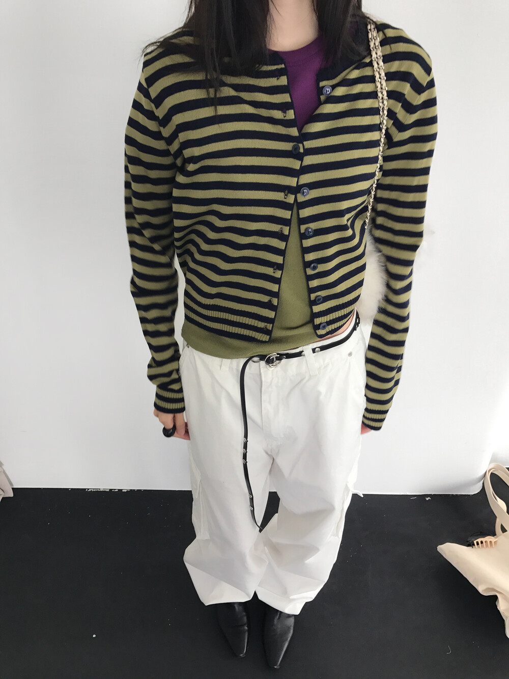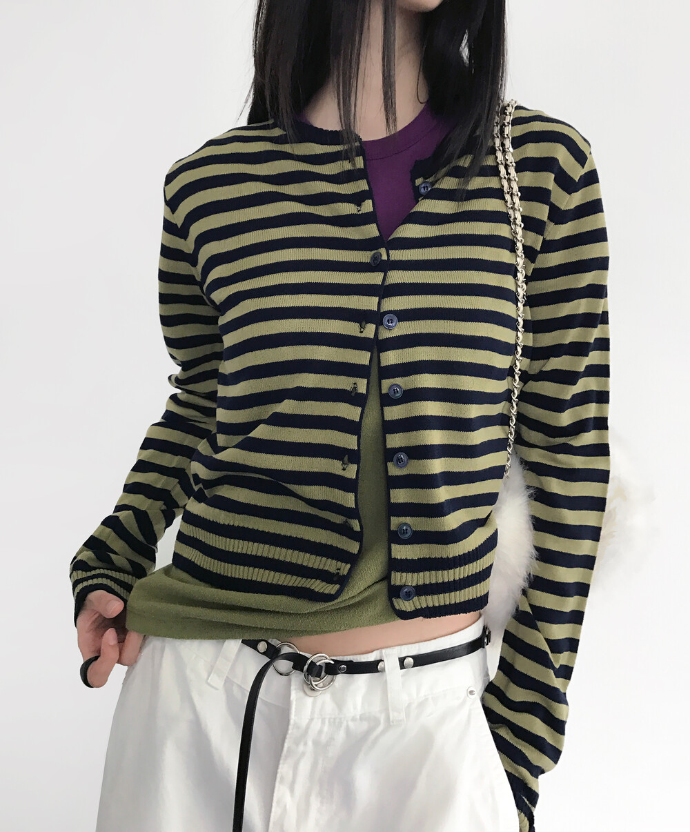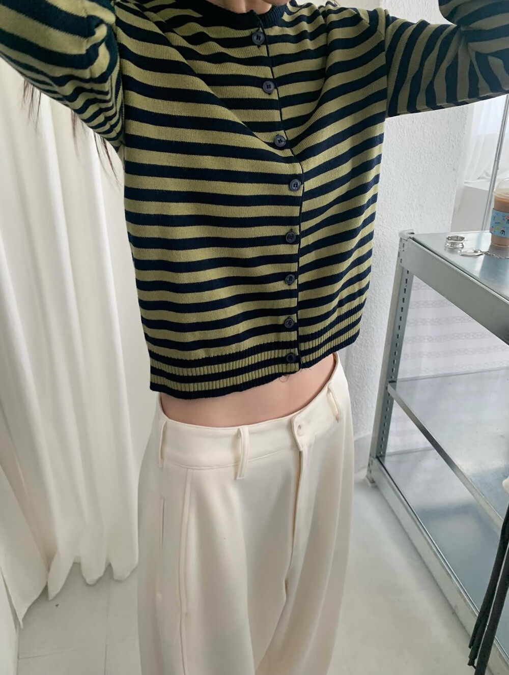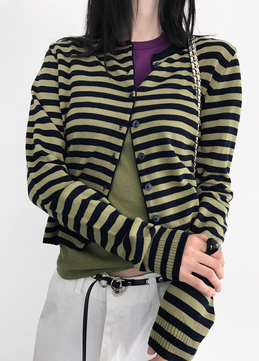 Pipi Stripe Cardigan, Matcha&Navy (2c)