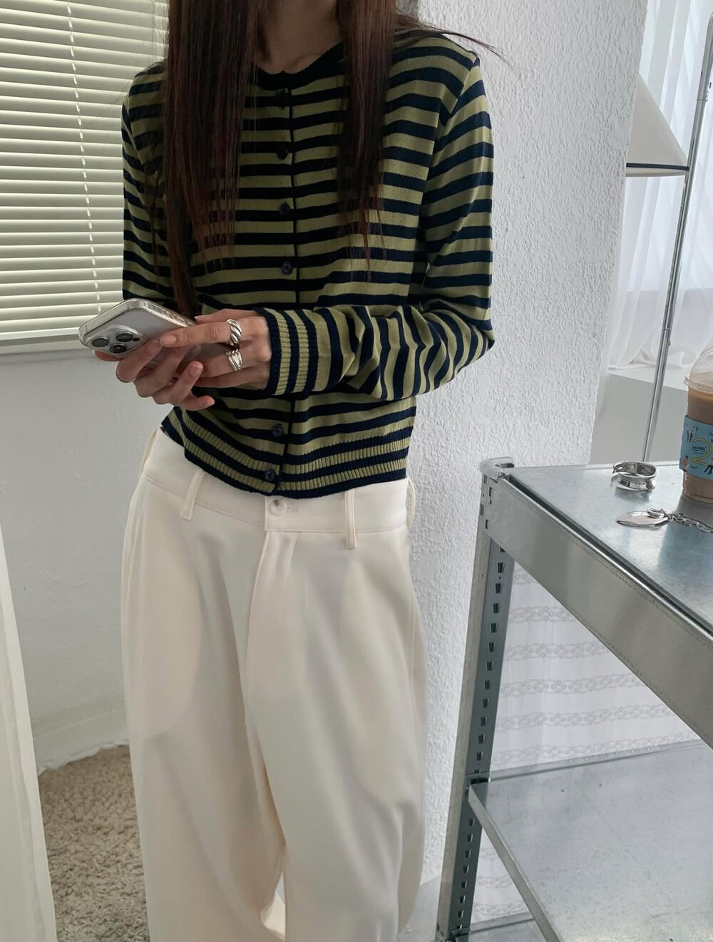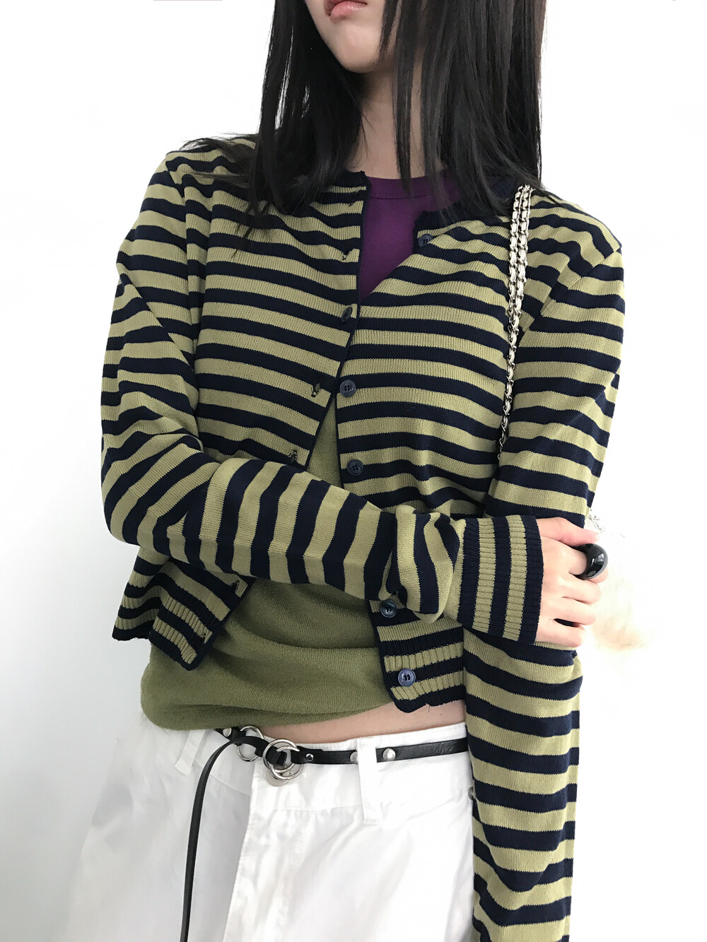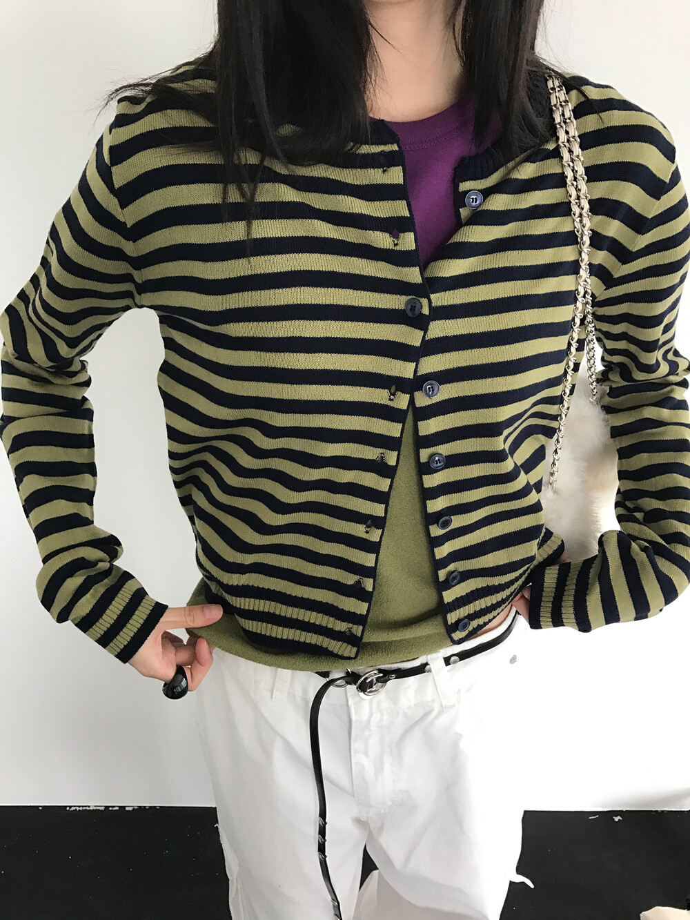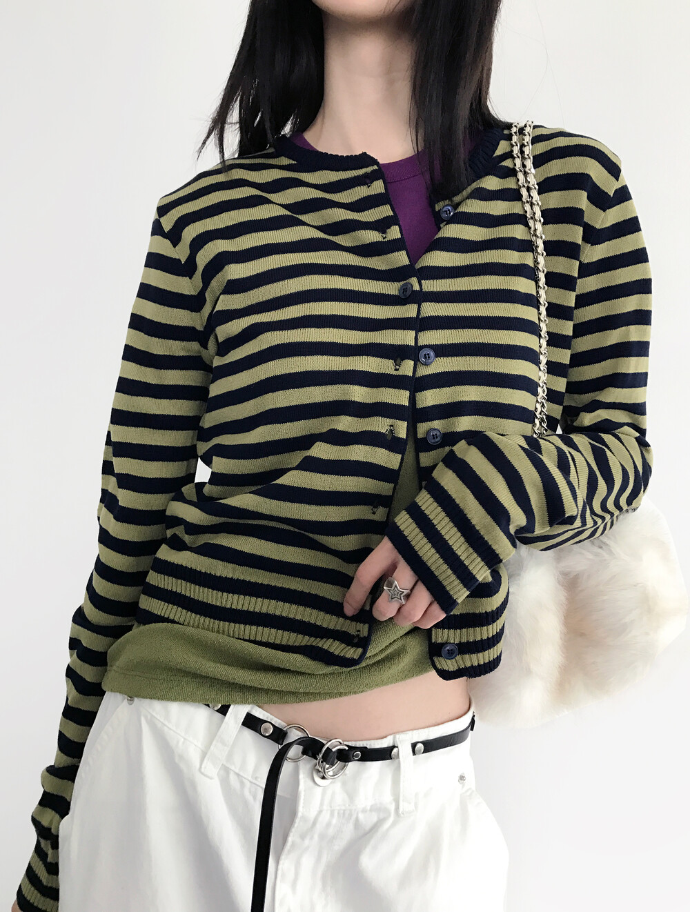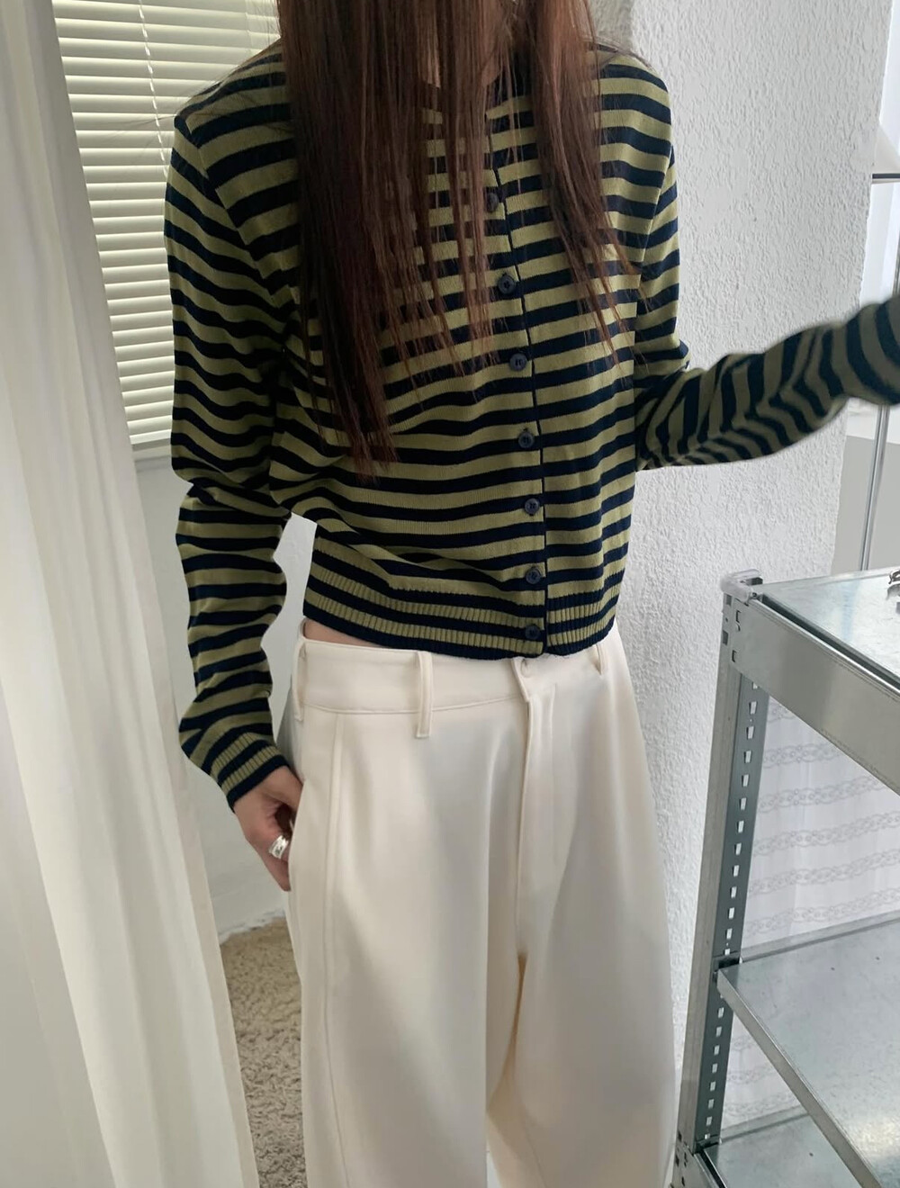 Pipi Stripe Cardigan, Matcha&Navy (2c)