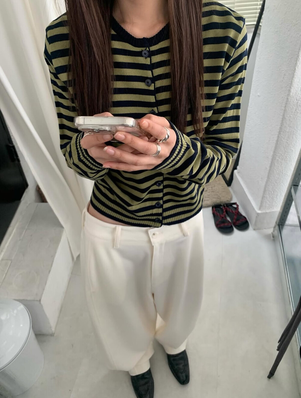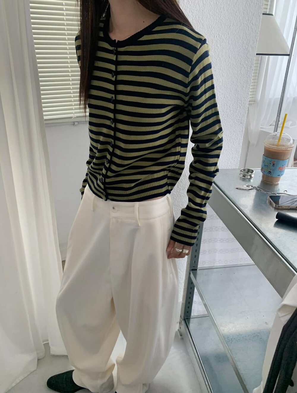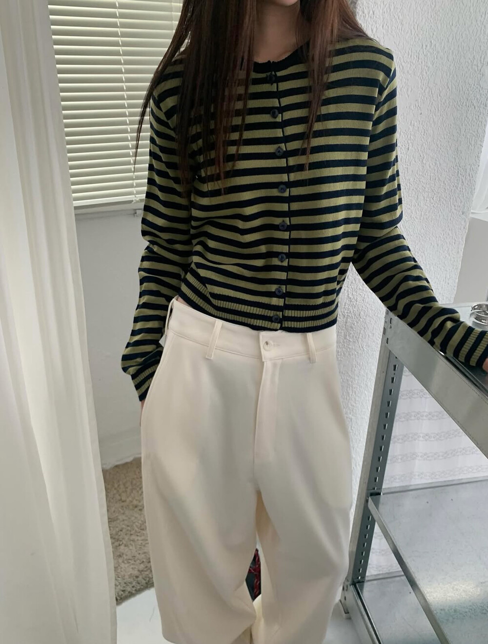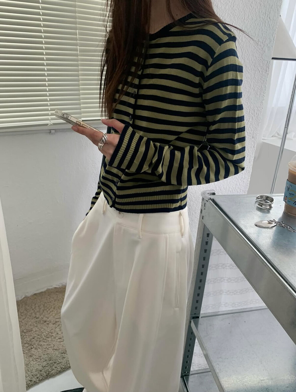 Pipi Stripe Cardigan, Matcha&Navy (2c)