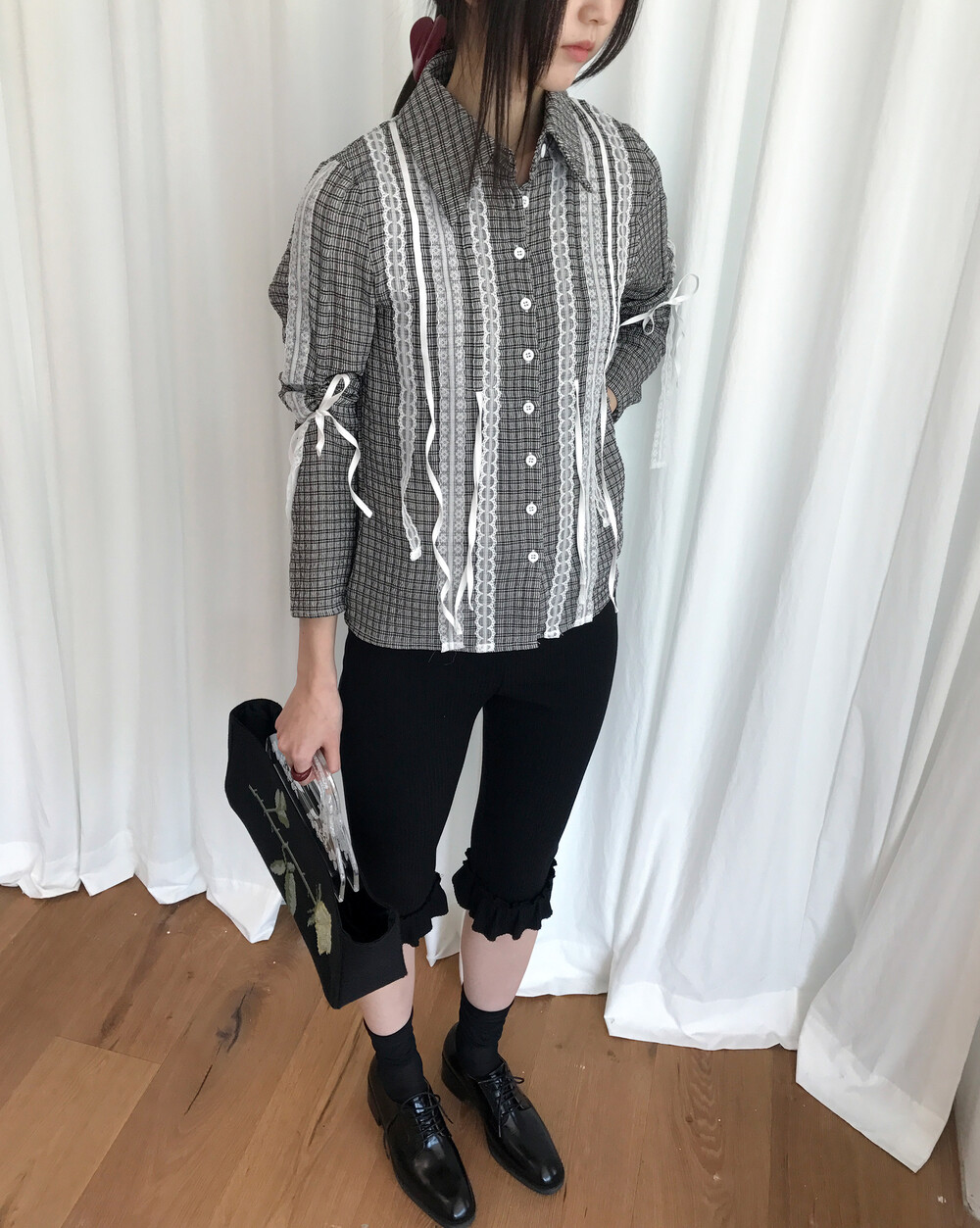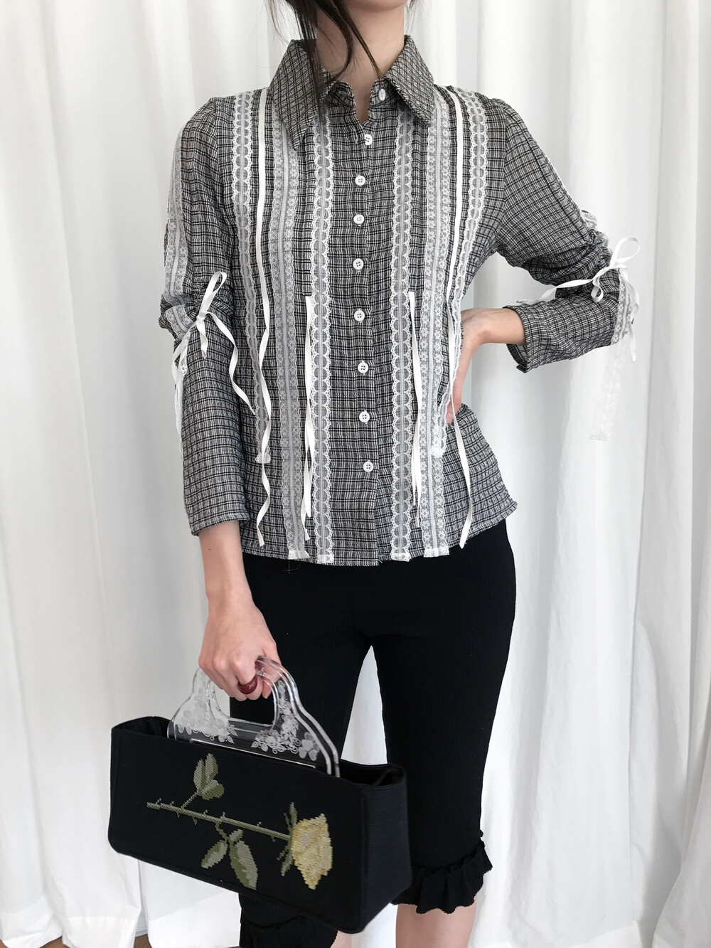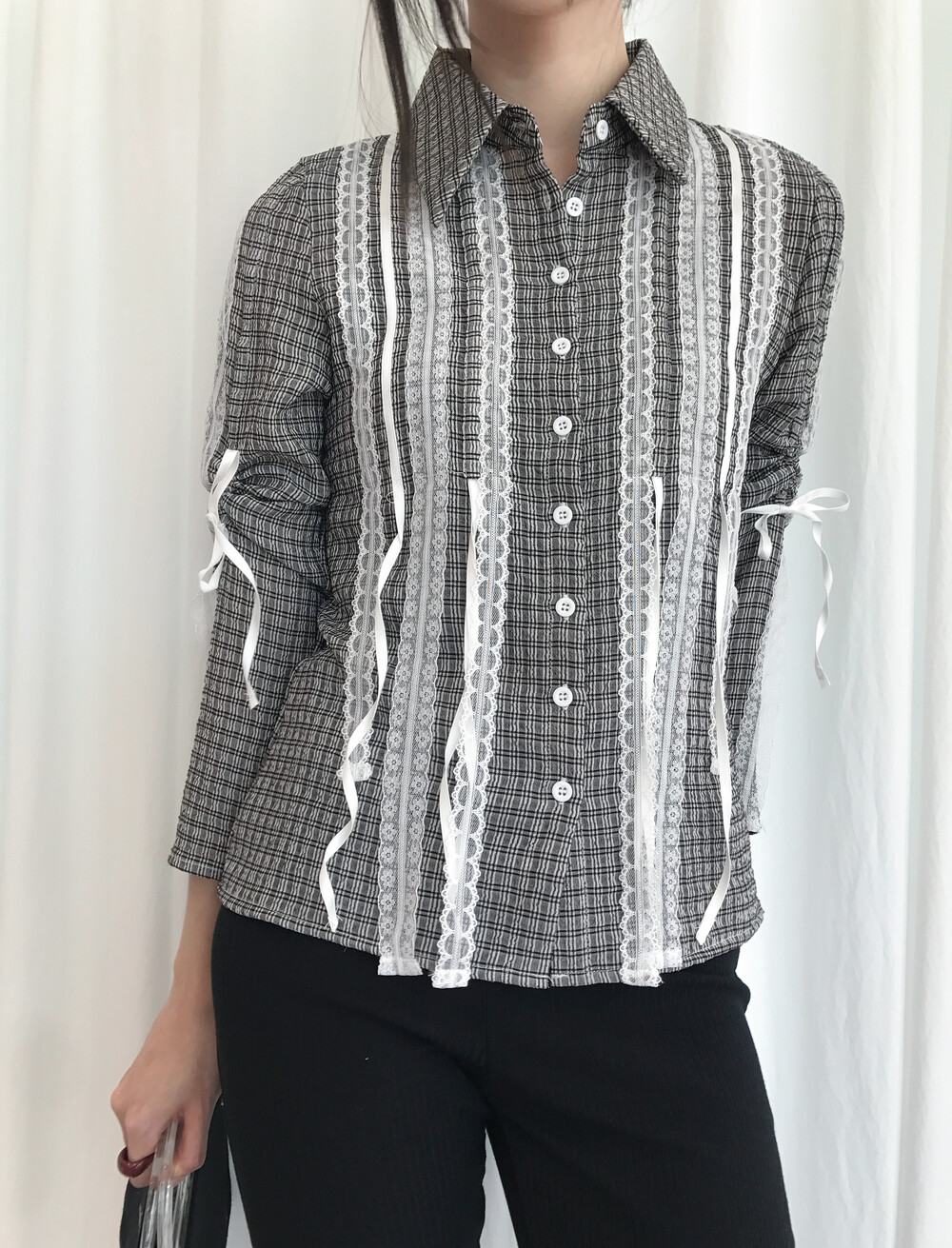 ˗ˏˋ Ribbon Linen Check Shirt ˎˊ˗