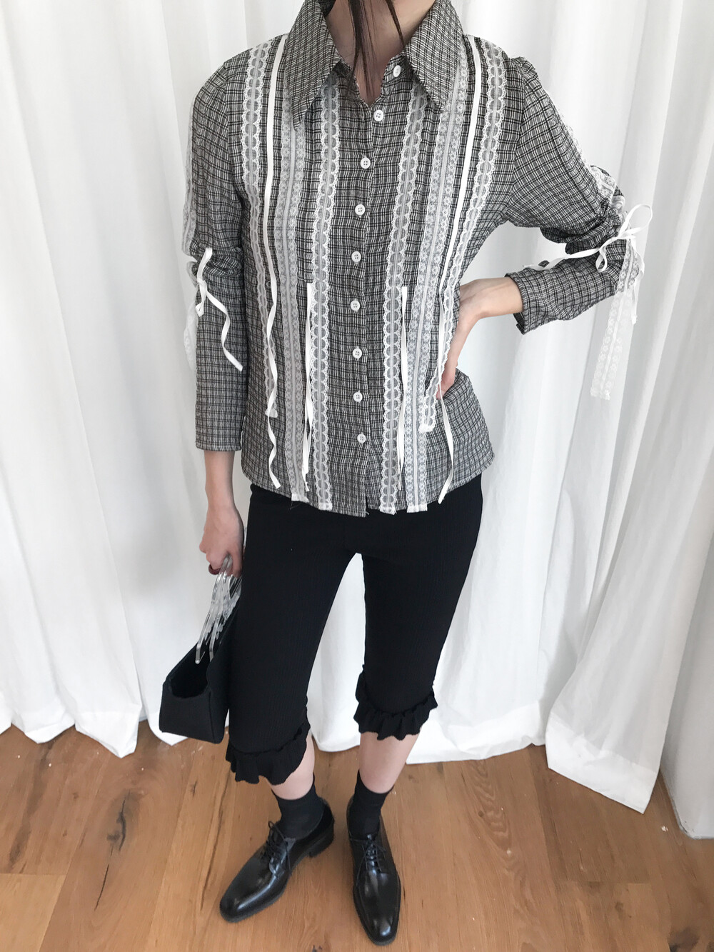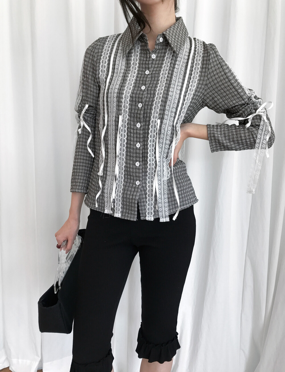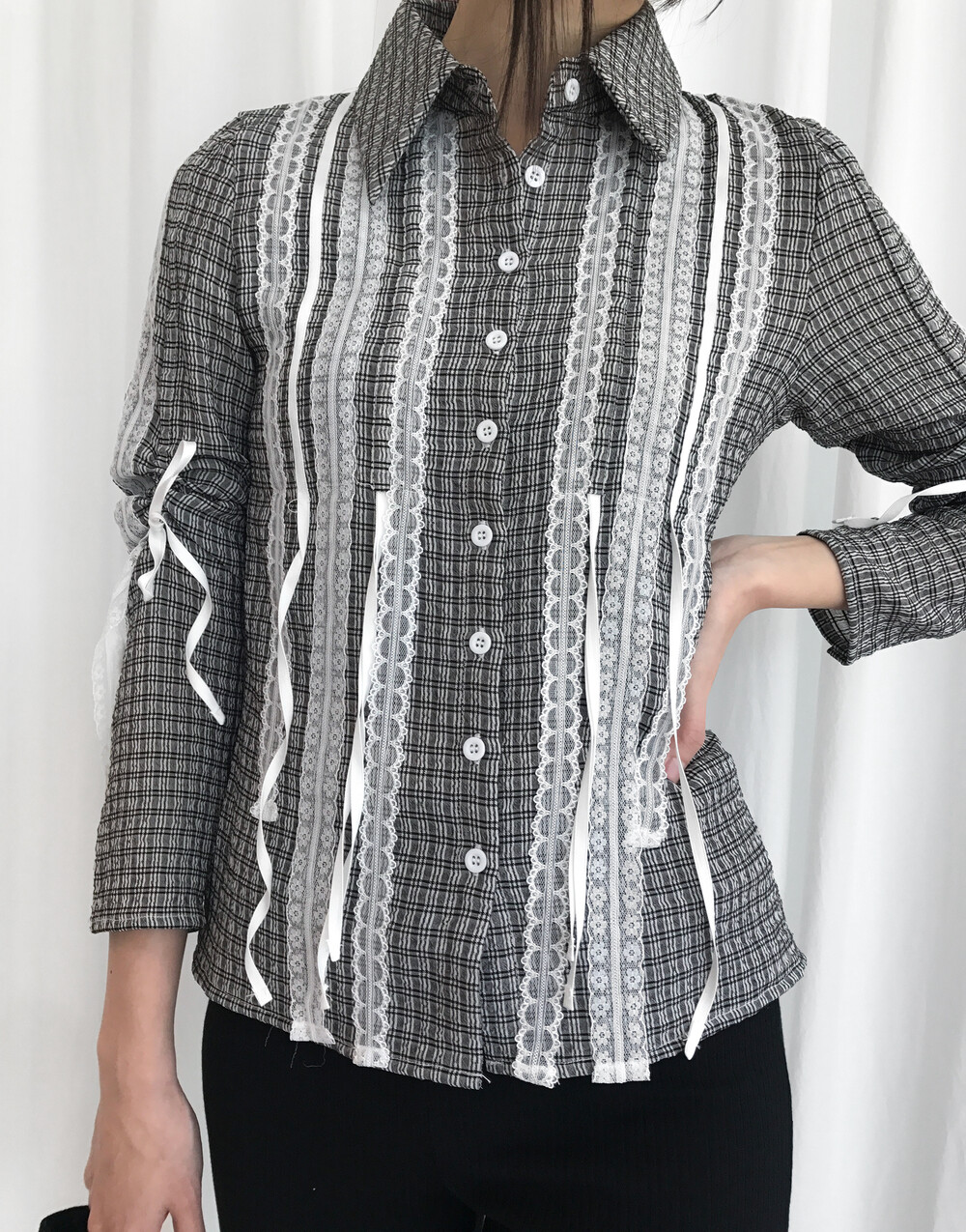 ˗ˏˋ Ribbon Linen Check Shirt ˎˊ˗