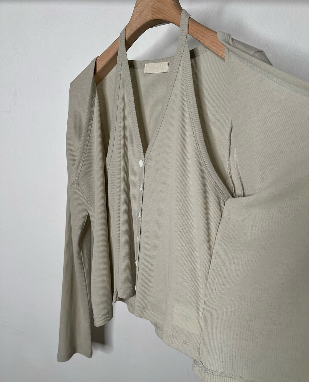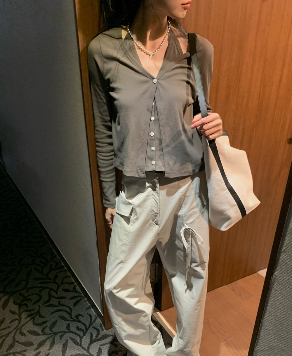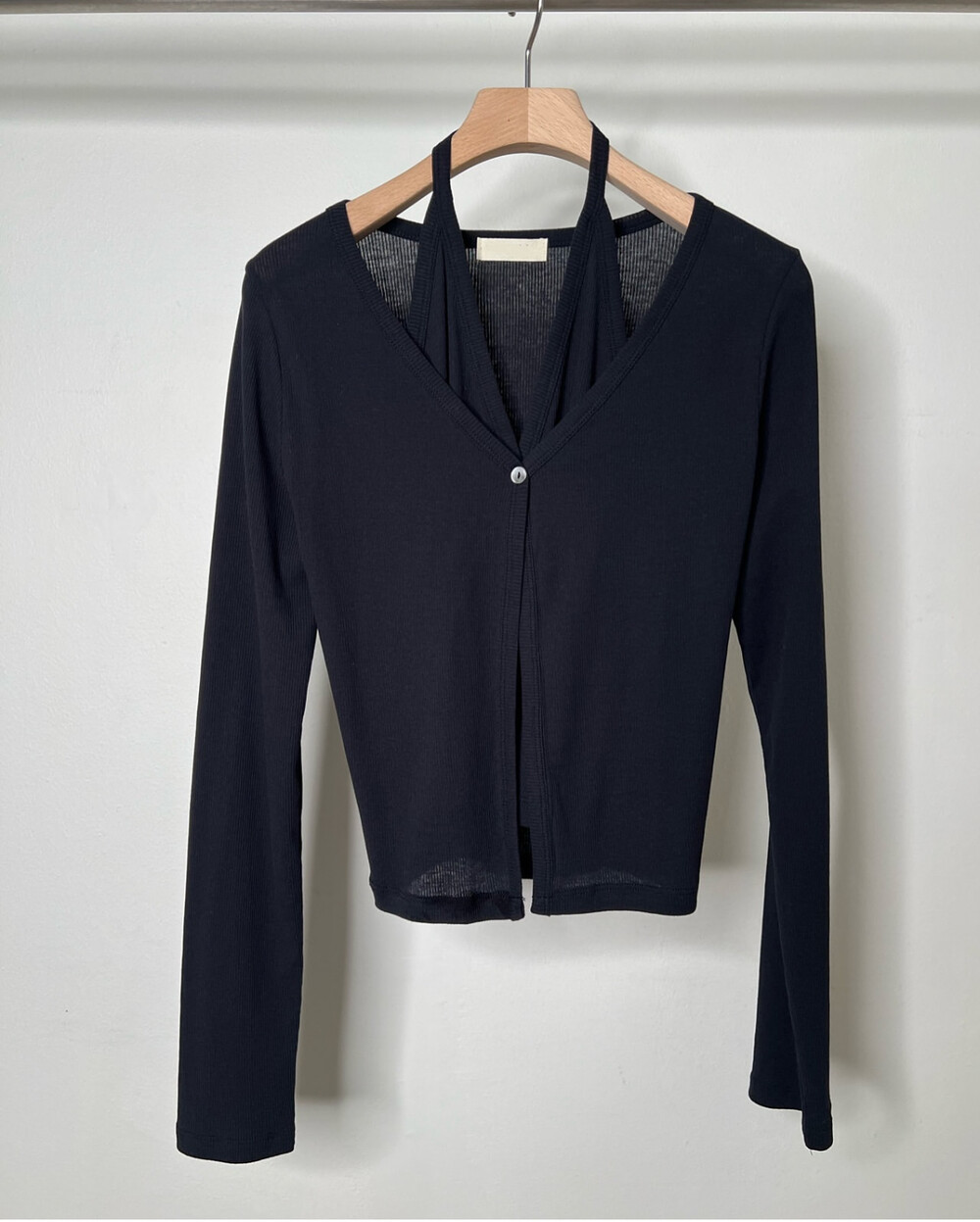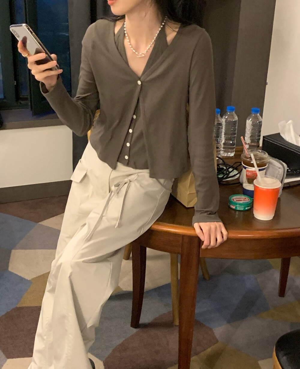 코튼 100의 소재이지만, 착용시 텁텁함이 없는 강연소재로 흐르는 핏이 굉장히 예쁘더라구요 *.* 그래서 덕분에 매우 슬림하게 만들어주기까지 하는 똑똑한 아이템이었어요! 얇은 소재라서 혹여 비침을 걱정하실 수도 있지만, 앞판이 두겹으로 레이어드 되어있어 비침이 거의 없다는 장점까지 갖추었답니다. 홀터탑과 가디건이 일체형으로 만들어져 여름내내 단품으로 착용하기에 좋은 아이템이랍니다! 간혹 급한 아침 출근시간이나 외출시에 이너와 아우터를 챙겨입기엔 조금 더울 것 같고 그렇다고 조금 신경써야할 때 고민없이 빠르게 해결할 수 있는 똑똑한 아이템이에요 ❤︎ 이너인 홀터탑의 단추는 장식용으로 오픈이 불가능하지만, 가디건의 단추는 오픈/클로징이 가능해 원하는대로 자유롭게 연출할 수 있어요!