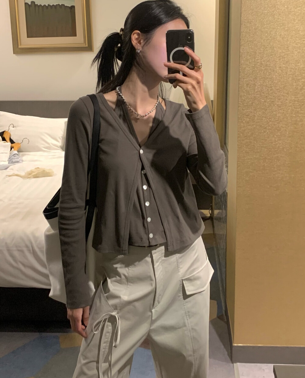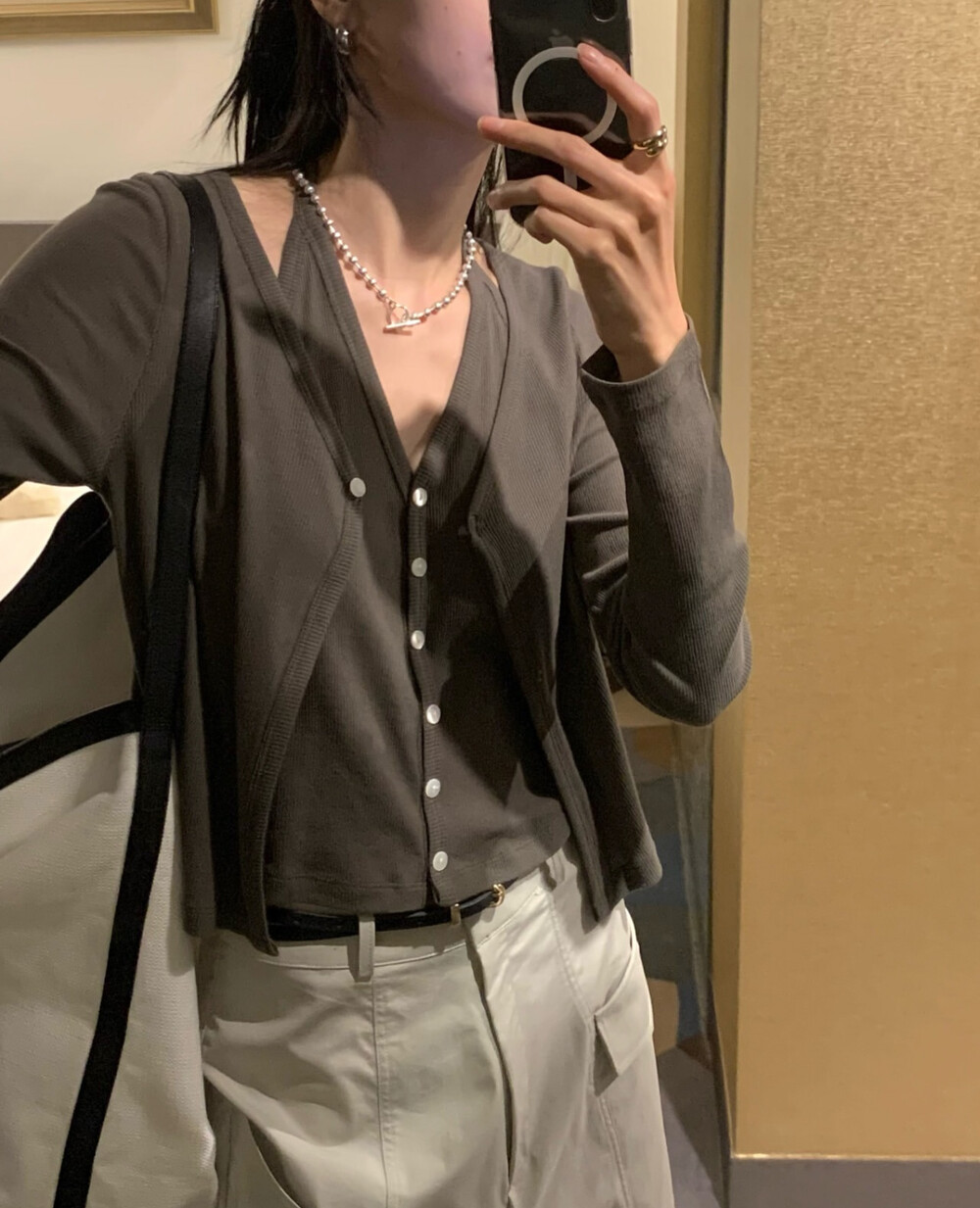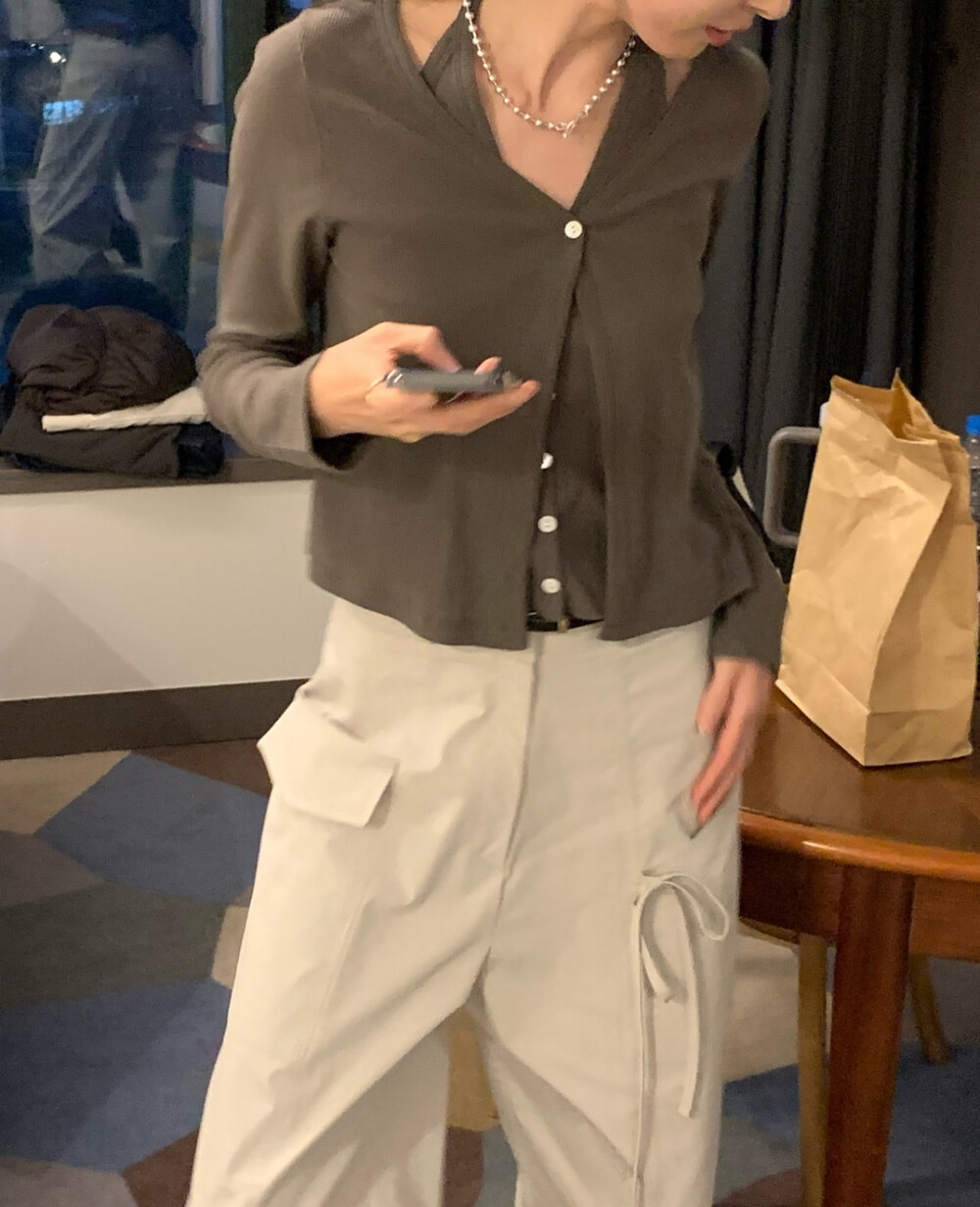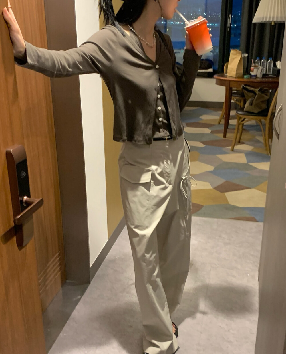 코튼 100의 소재이지만, 착용시 텁텁함이 없는 강연소재로 흐르는 핏이 굉장히 예쁘더라구요 *.* 그래서 덕분에 매우 슬림하게 만들어주기까지 하는 똑똑한 아이템이었어요! 얇은 소재라서 혹여 비침을 걱정하실 수도 있지만, 앞판이 두겹으로 레이어드 되어있어 비침이 거의 없다는 장점까지 갖추었답니다. 홀터탑과 가디건이 일체형으로 만들어져 여름내내 단품으로 착용하기에 좋은 아이템이랍니다! 간혹 급한 아침 출근시간이나 외출시에 이너와 아우터를 챙겨입기엔 조금 더울 것 같고 그렇다고 조금 신경써야할 때 고민없이 빠르게 해결할 수 있는 똑똑한 아이템이에요 ❤︎ 이너인 홀터탑의 단추는 장식용으로 오픈이 불가능하지만, 가디건의 단추는 오픈/클로징이 가능해 원하는대로 자유롭게 연출할 수 있어요!
