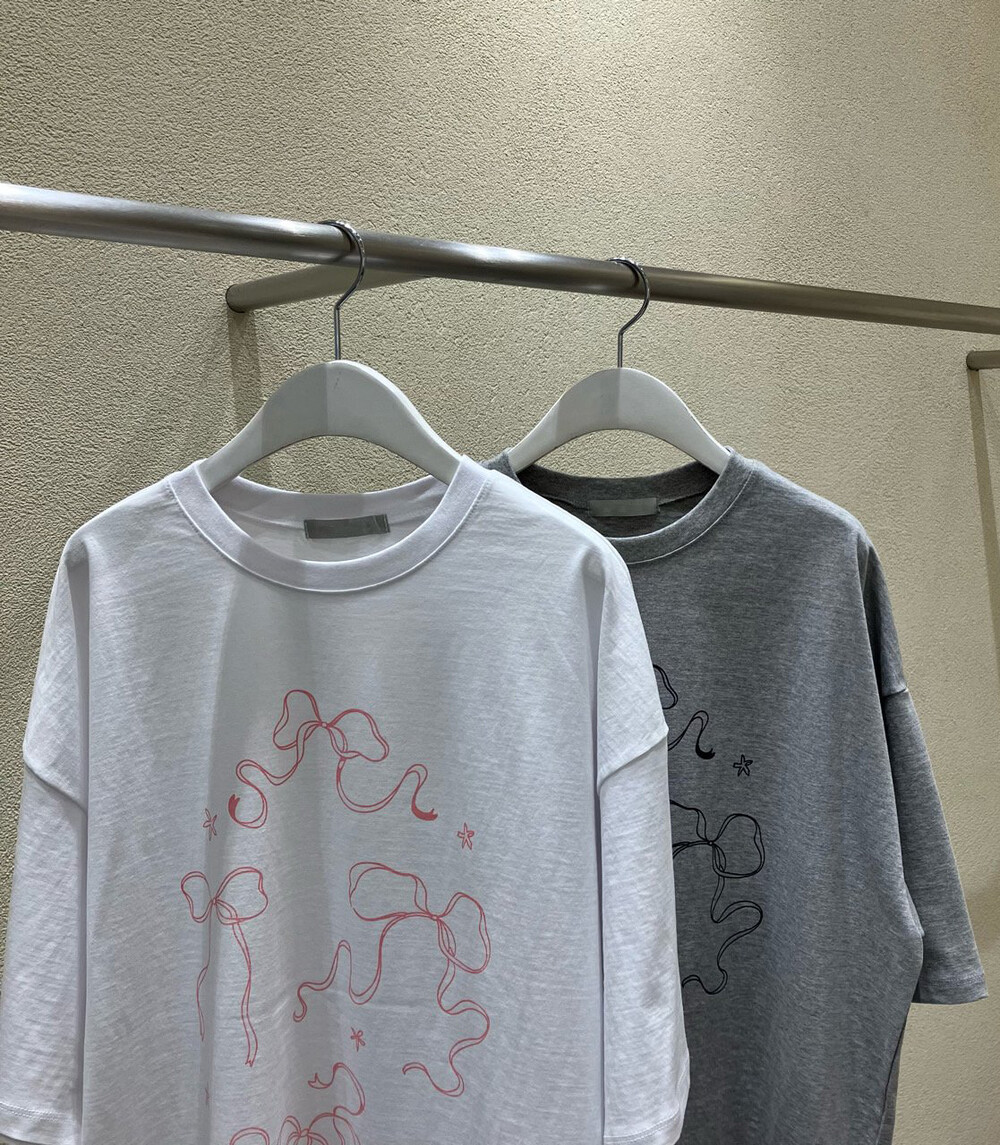 박시한 오버핏의 티셔츠가 만나 걸리쉬한 무드가 중화된 보우 코튼 티셔츠 🎀
