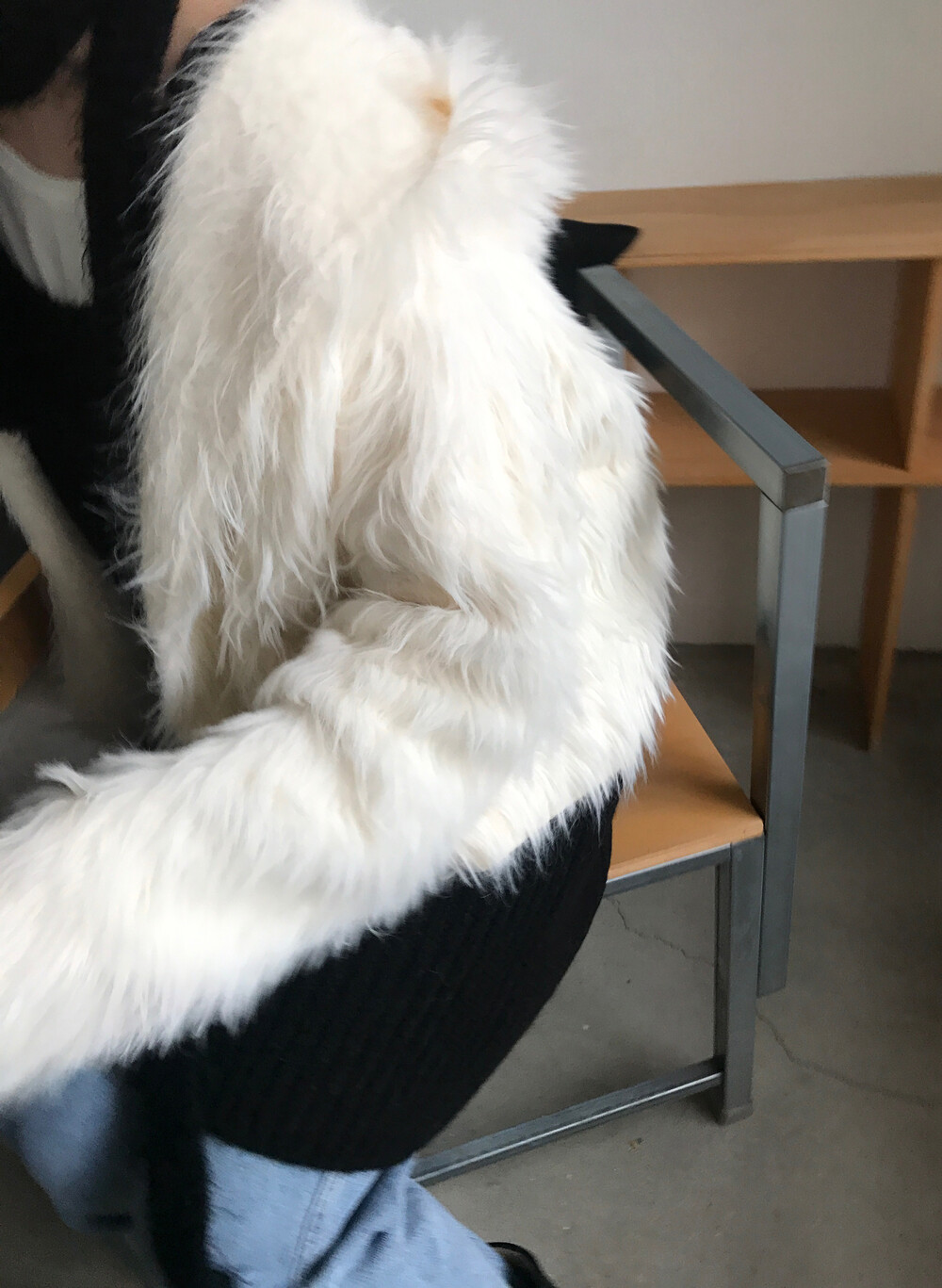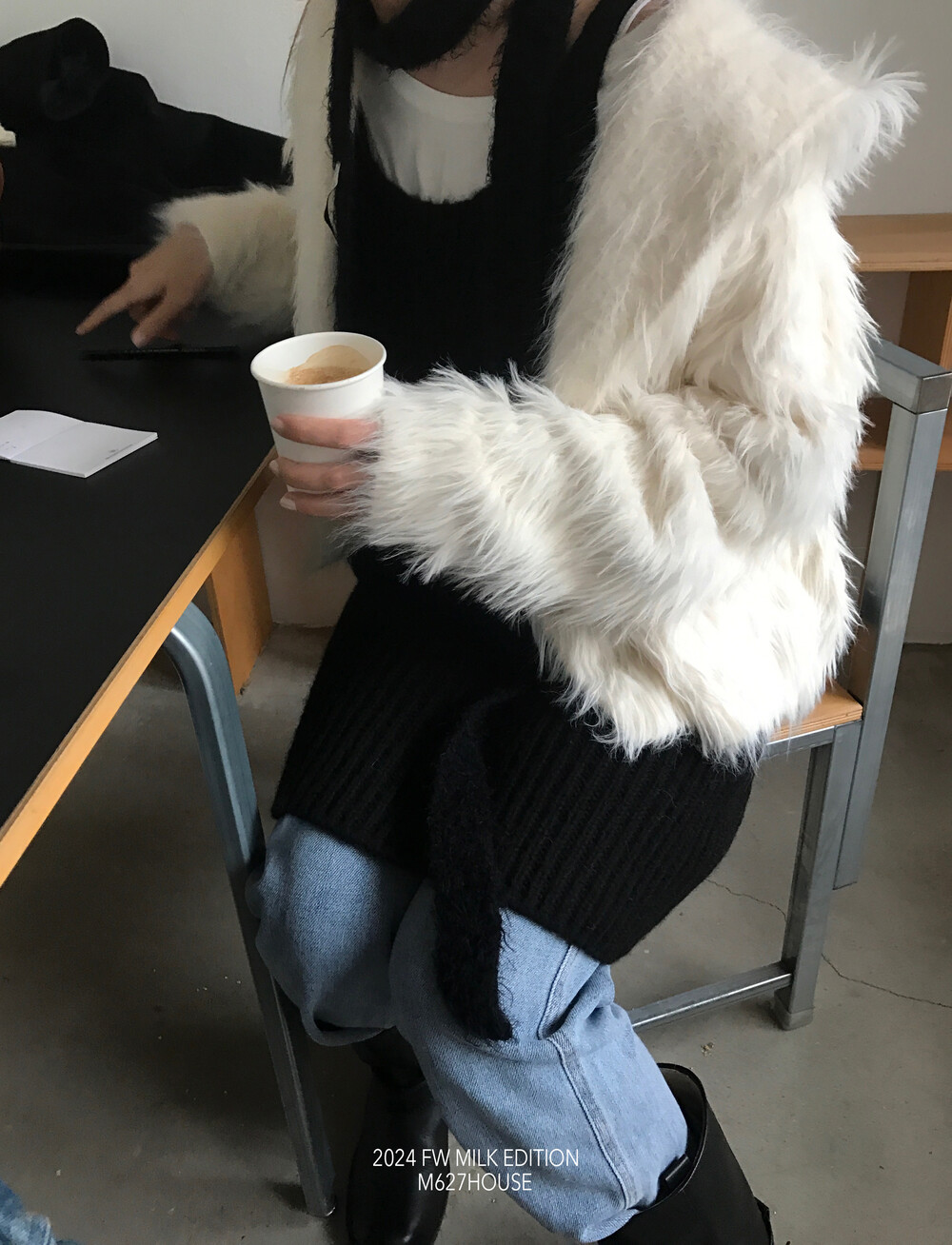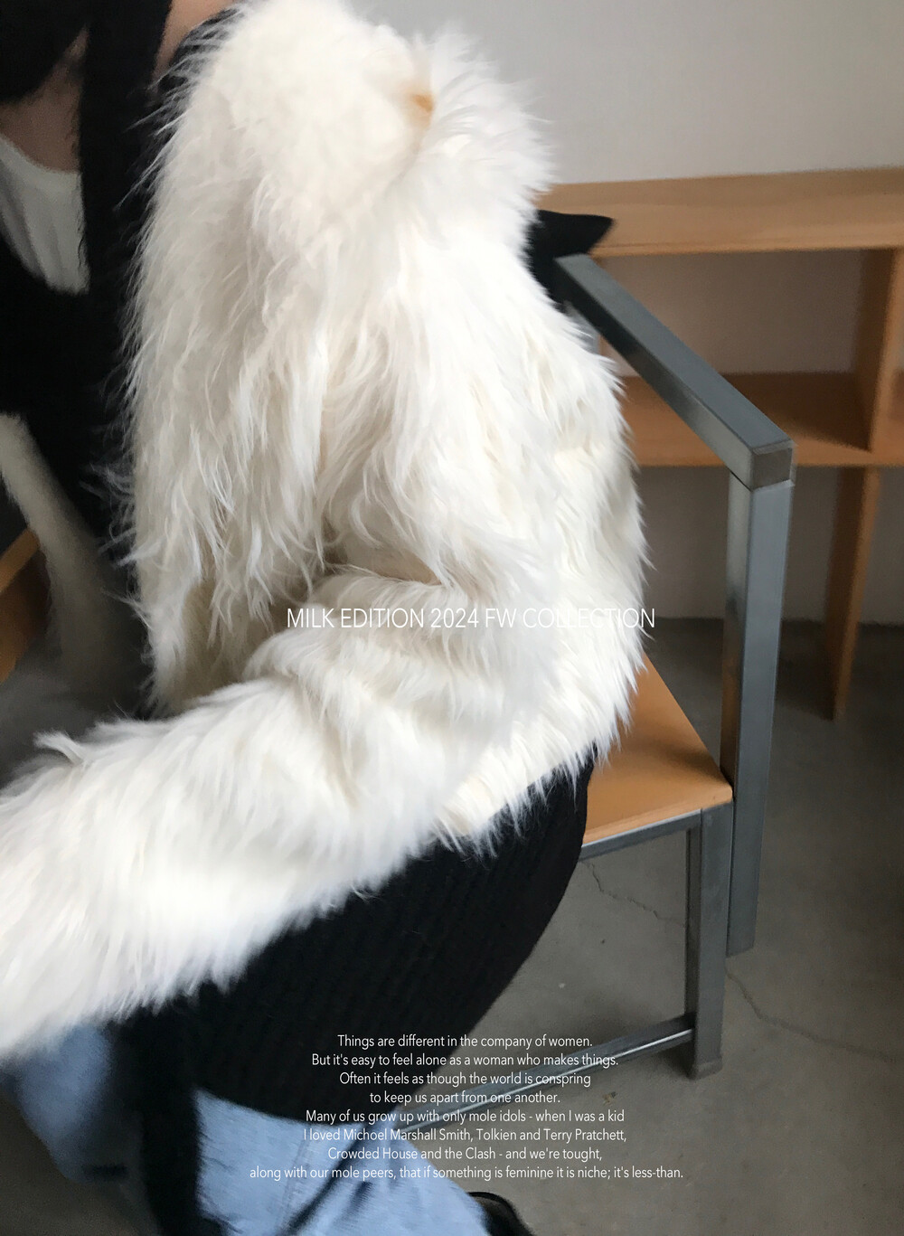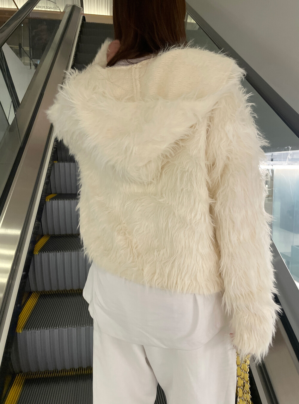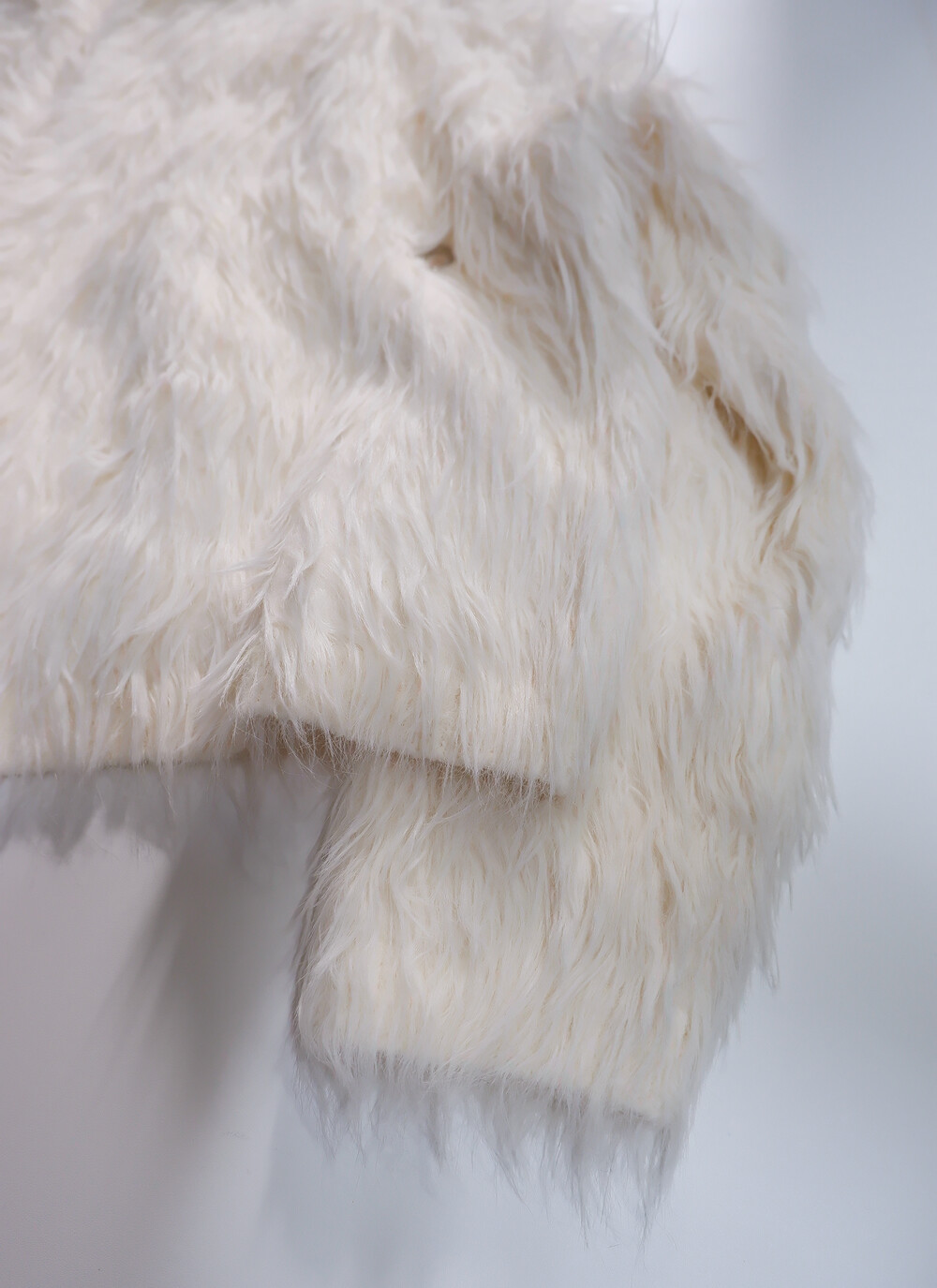 KITTY FUR CARDIGAN JACKET, MILK WHITE