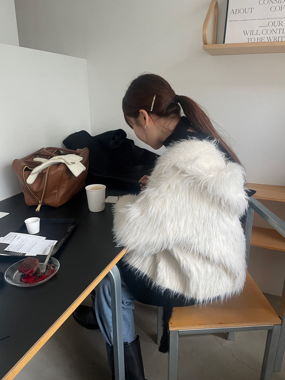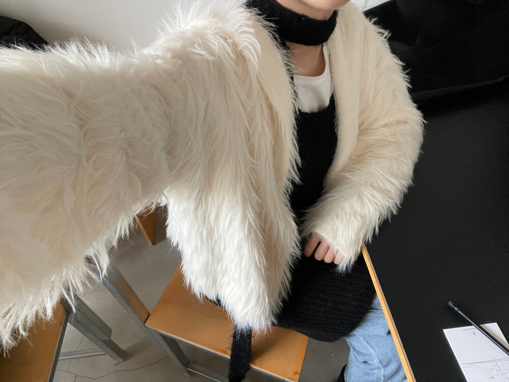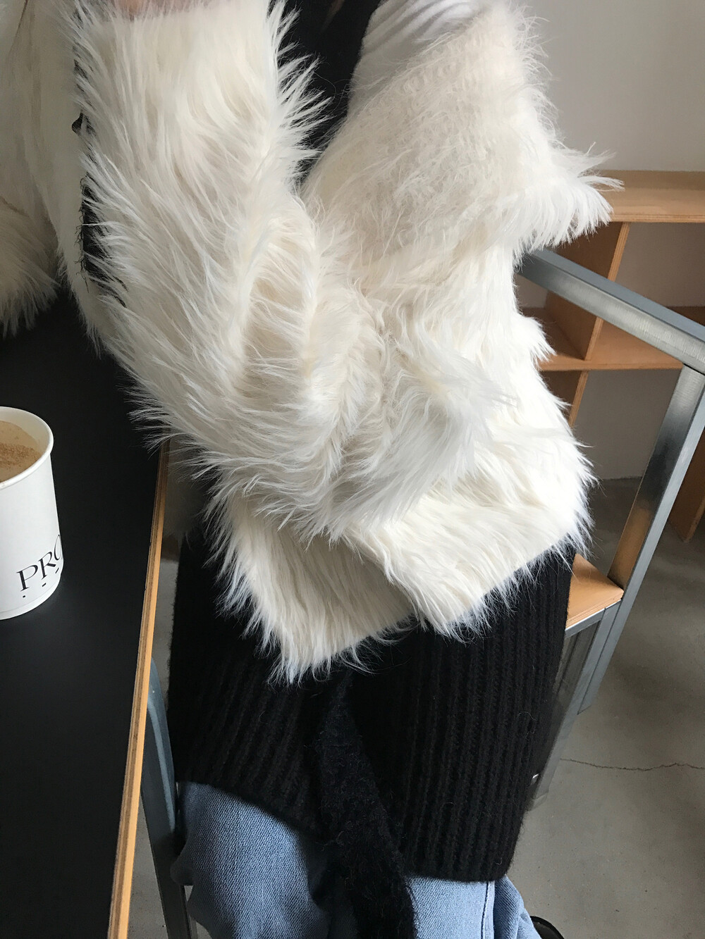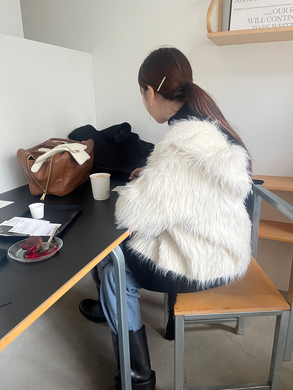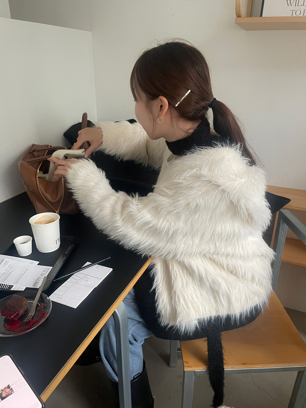KITTY FUR CARDIGAN JACKET, MILK WHITE