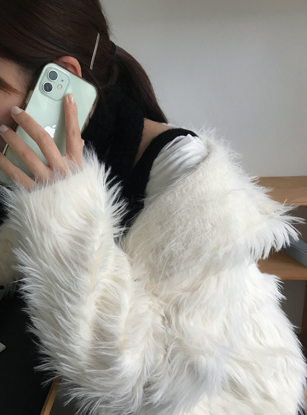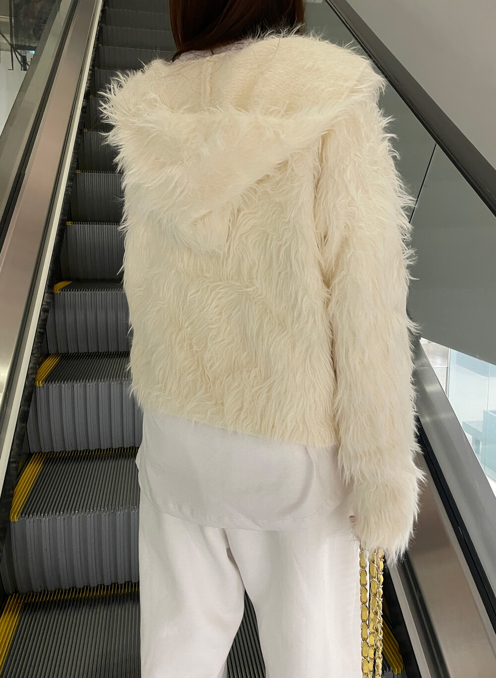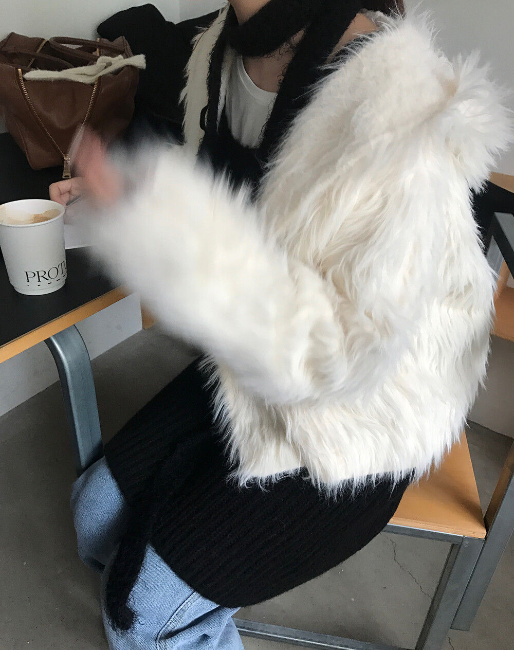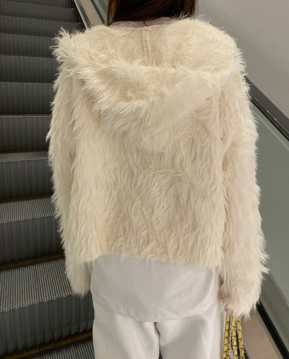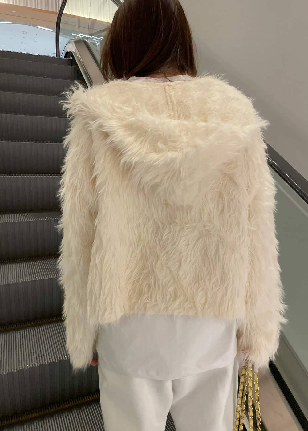 KITTY FUR CARDIGAN JACKET, MILK WHITE
