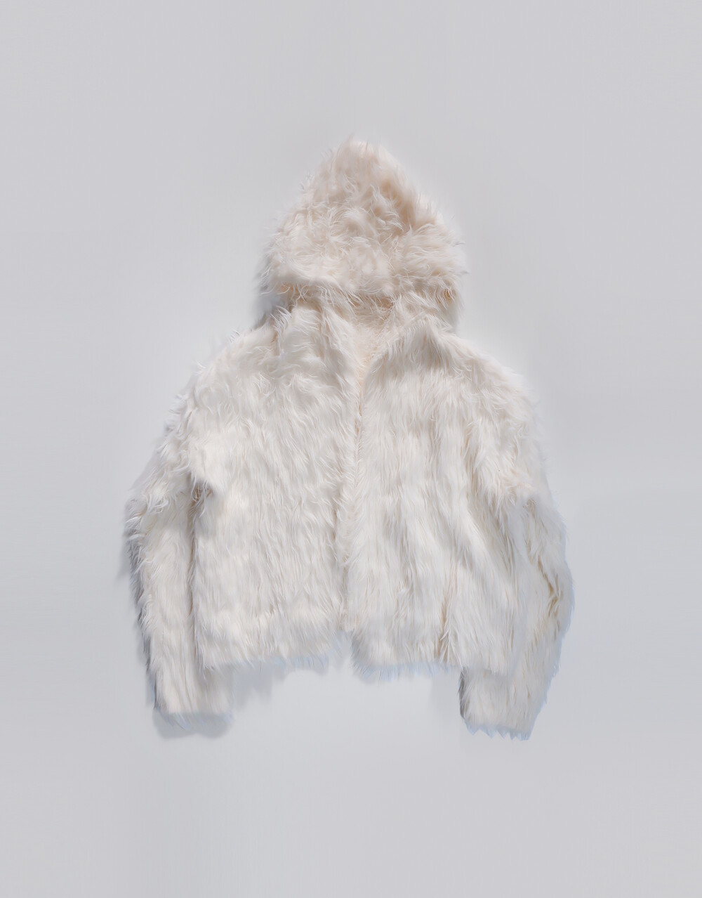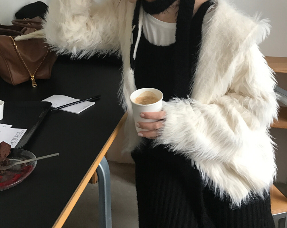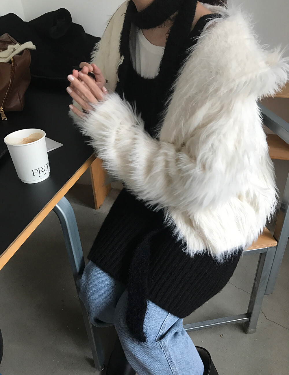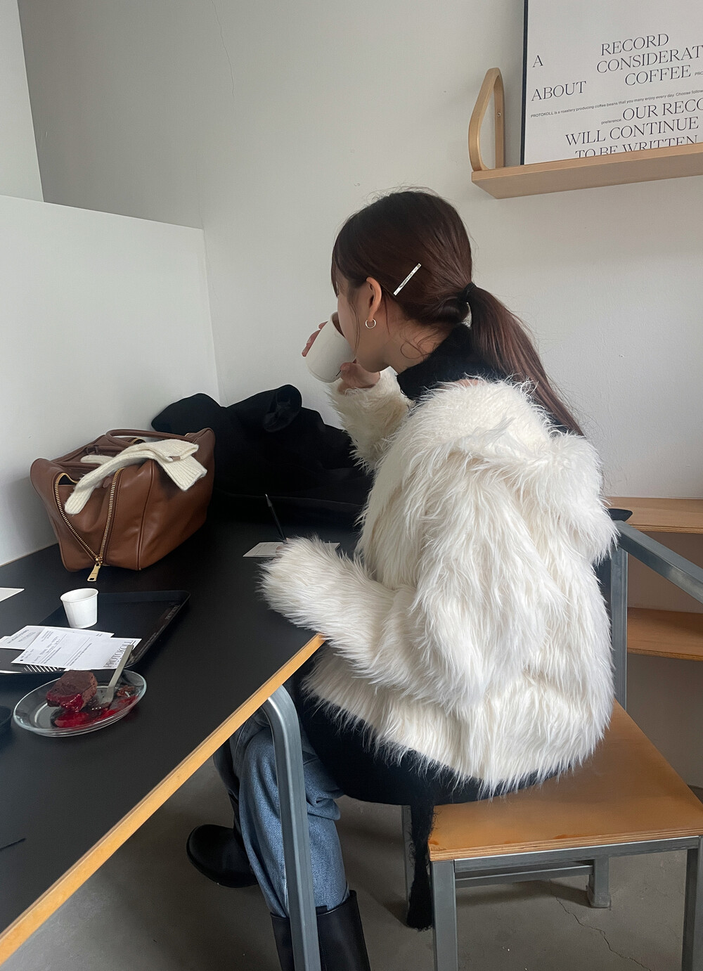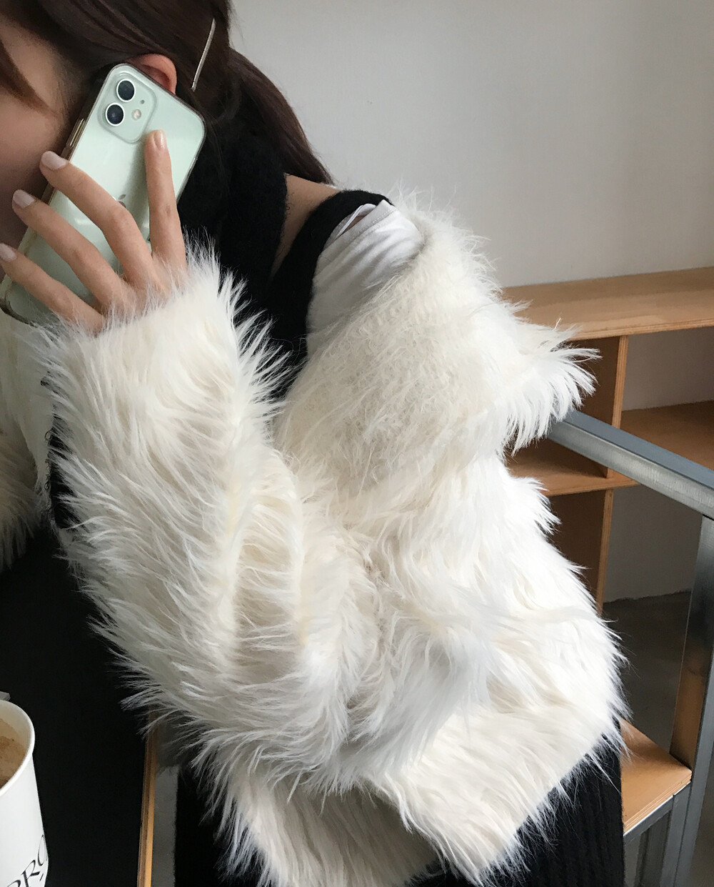 KITTY FUR CARDIGAN JACKET, MILK WHITE