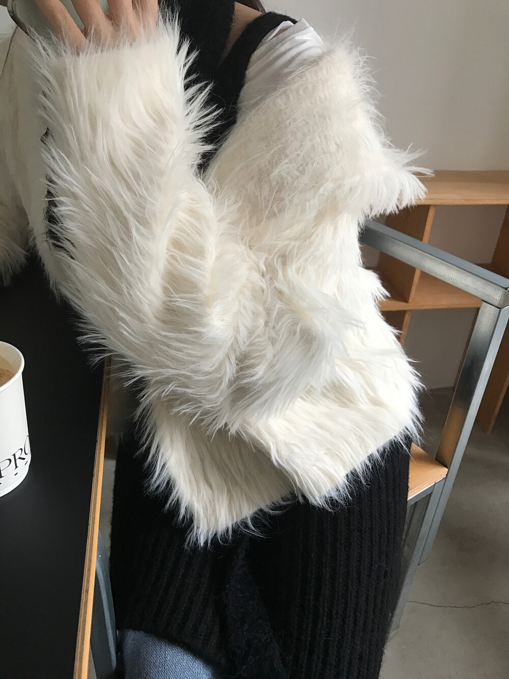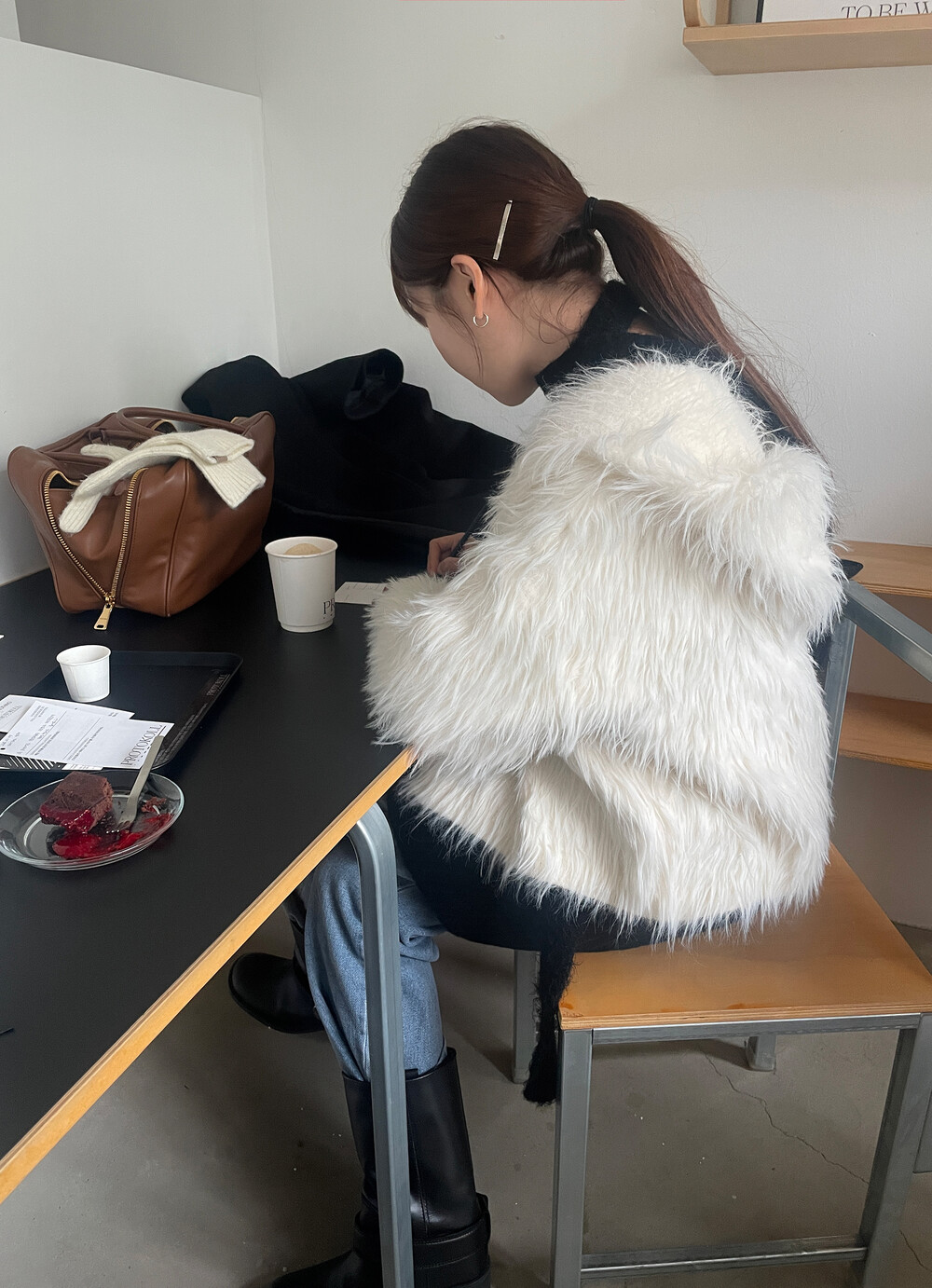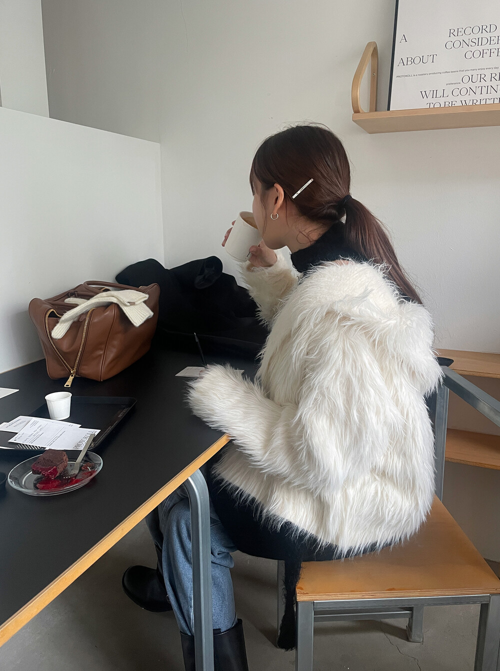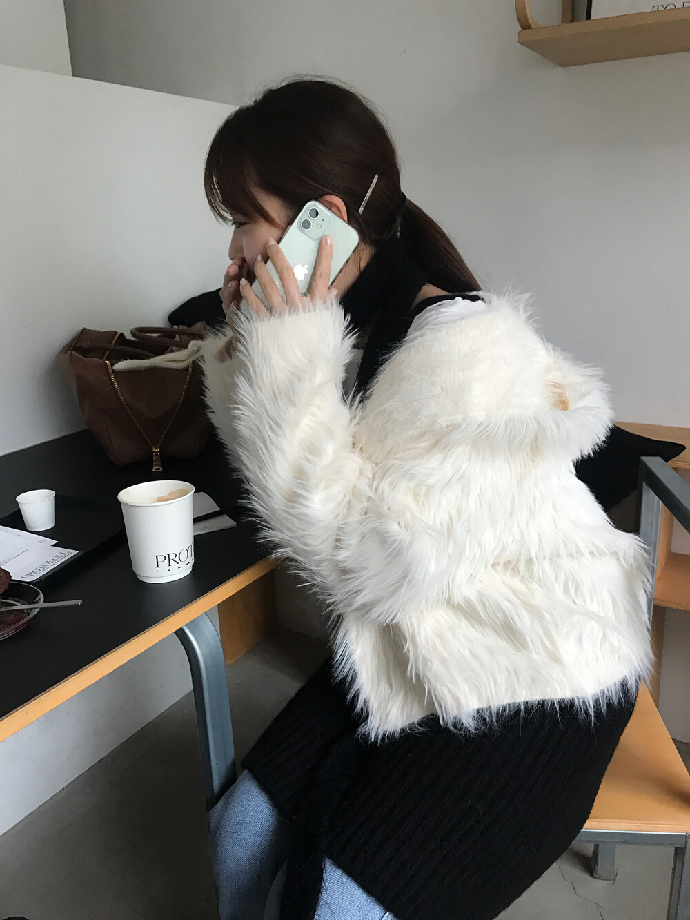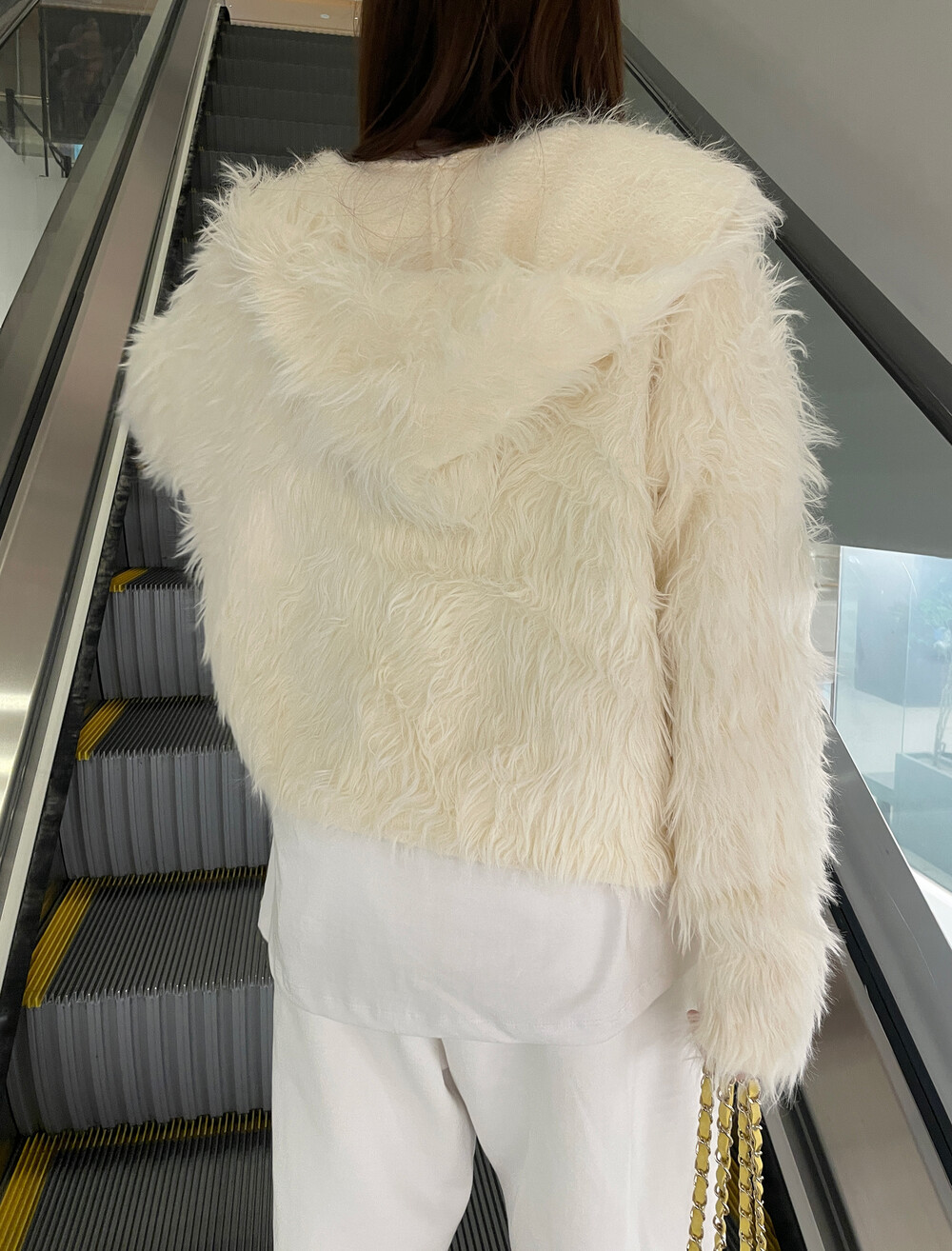 KITTY FUR CARDIGAN JACKET, MILK WHITE
