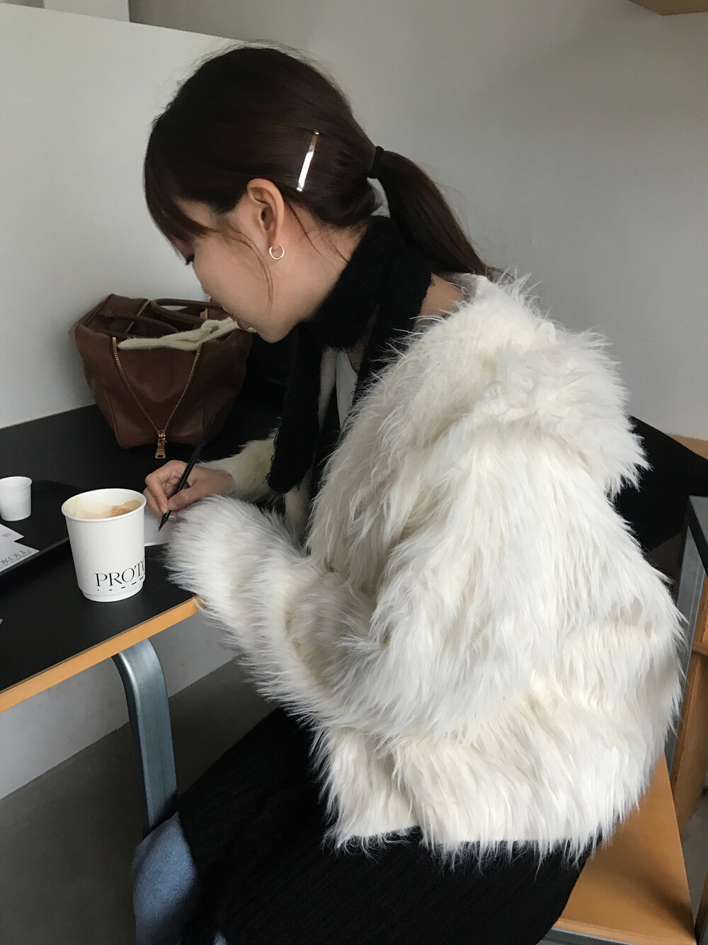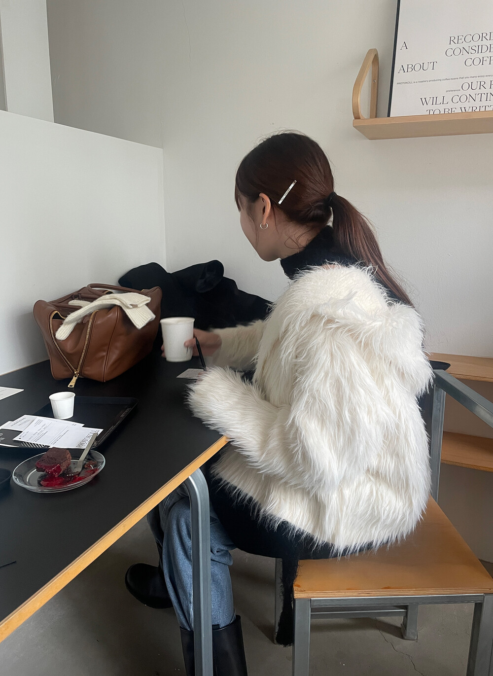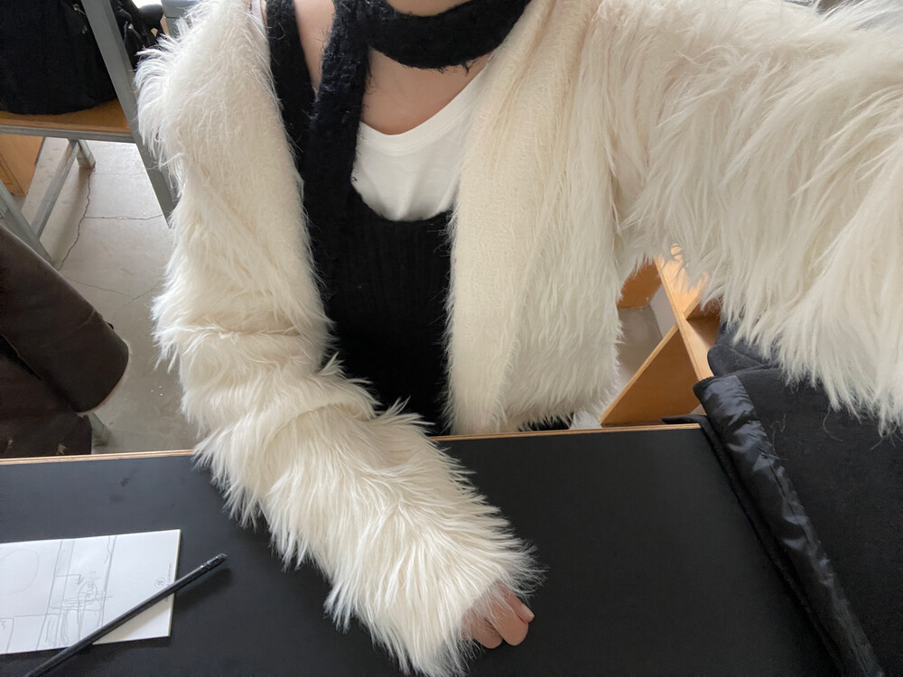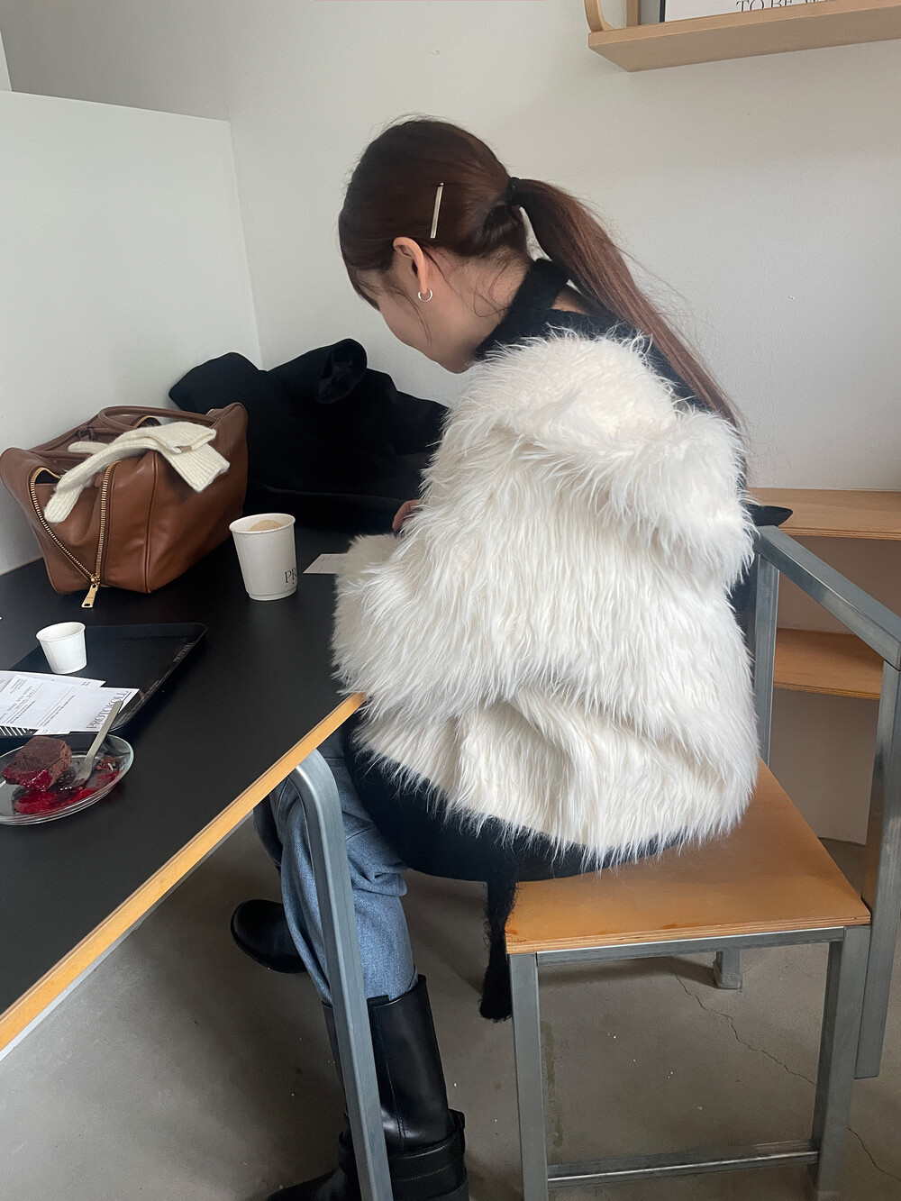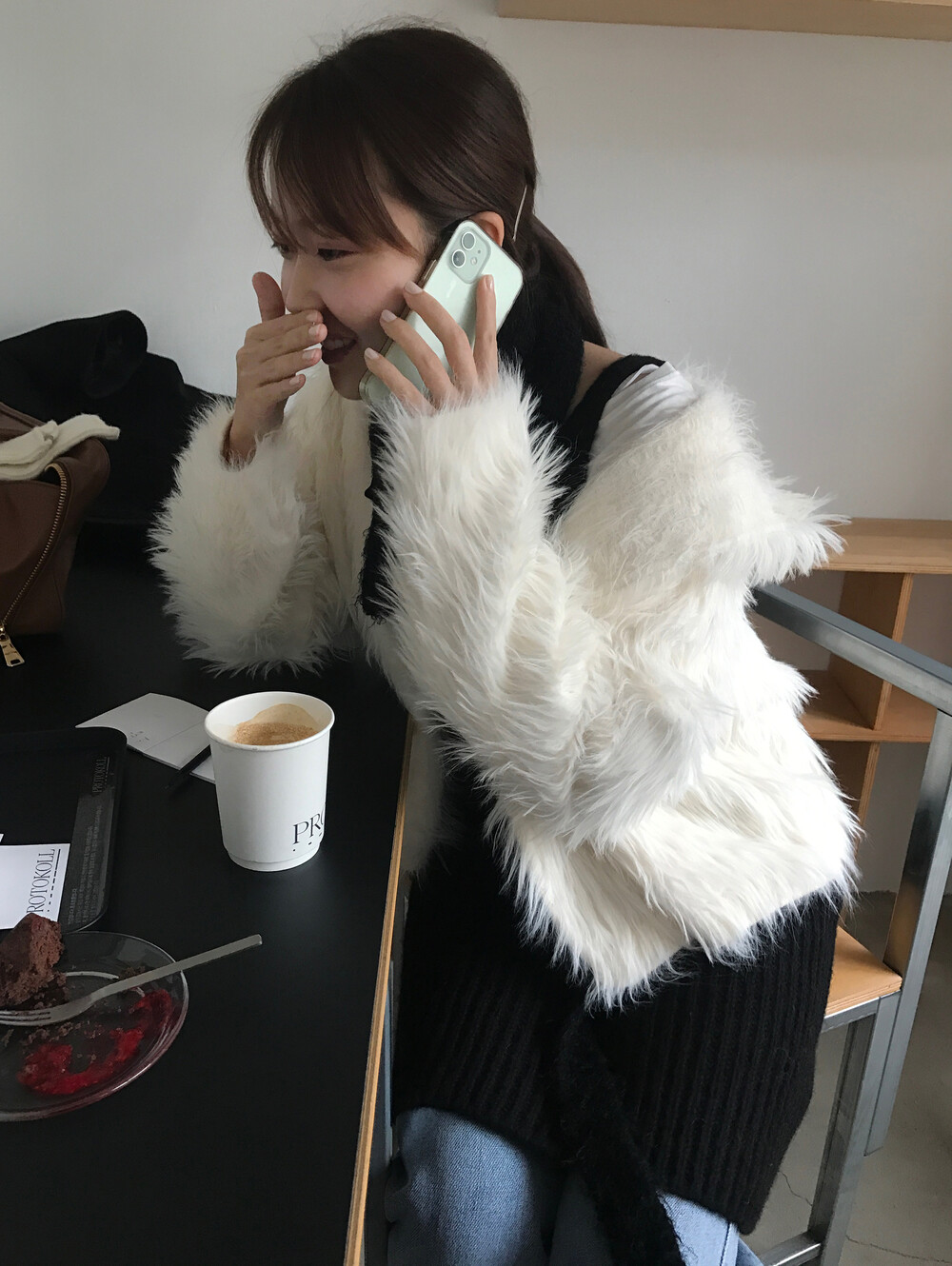 KITTY FUR CARDIGAN JACKET, MILK WHITE