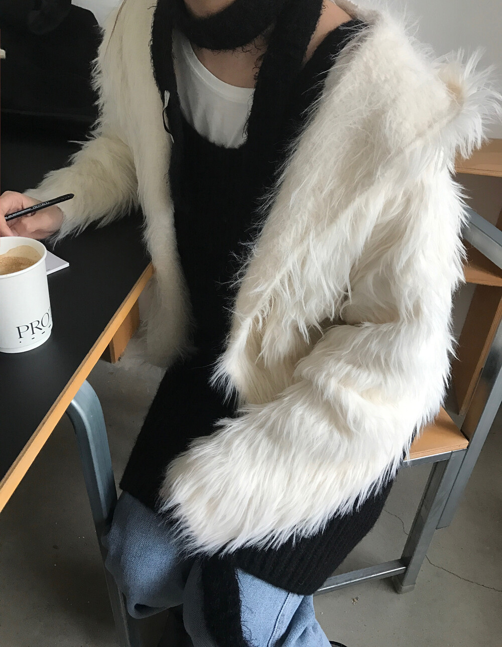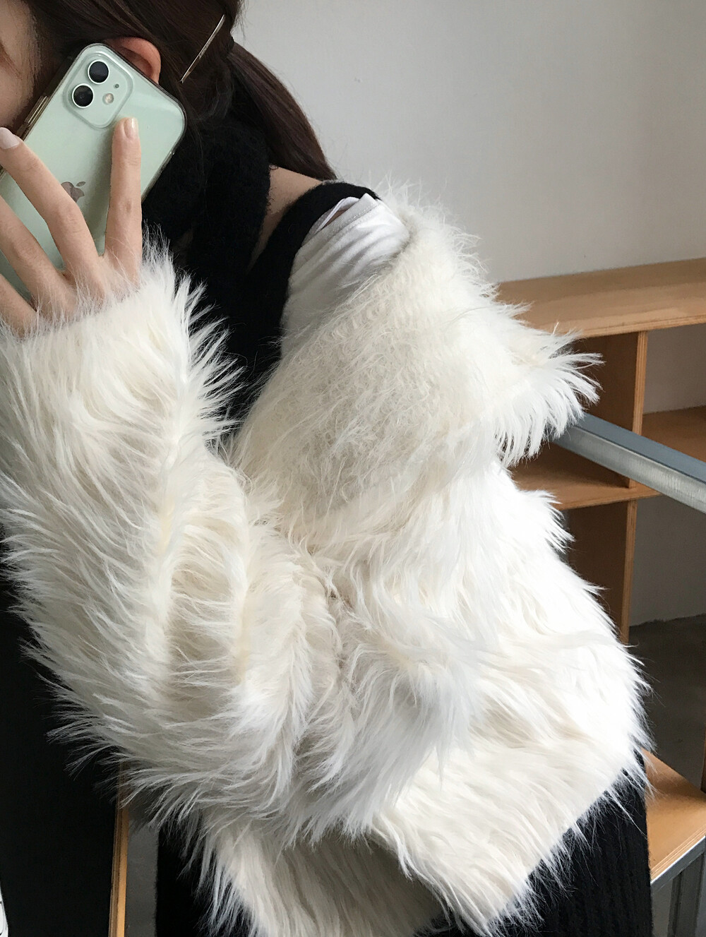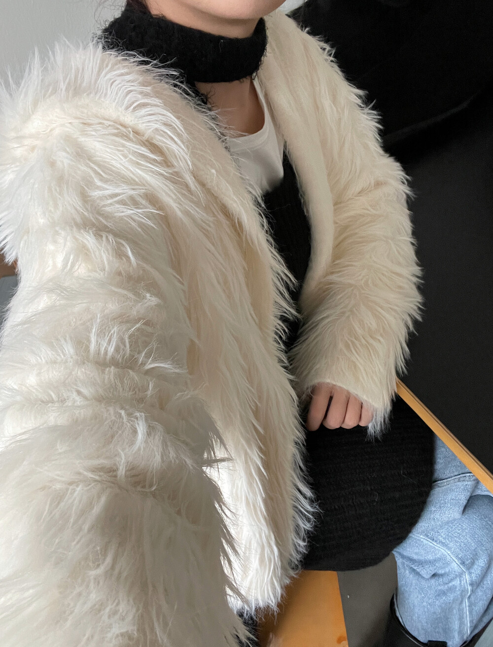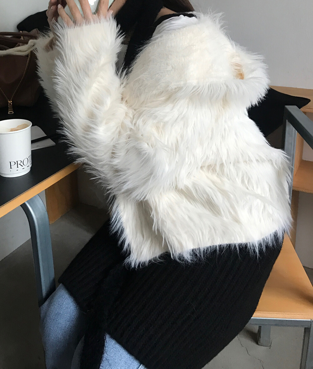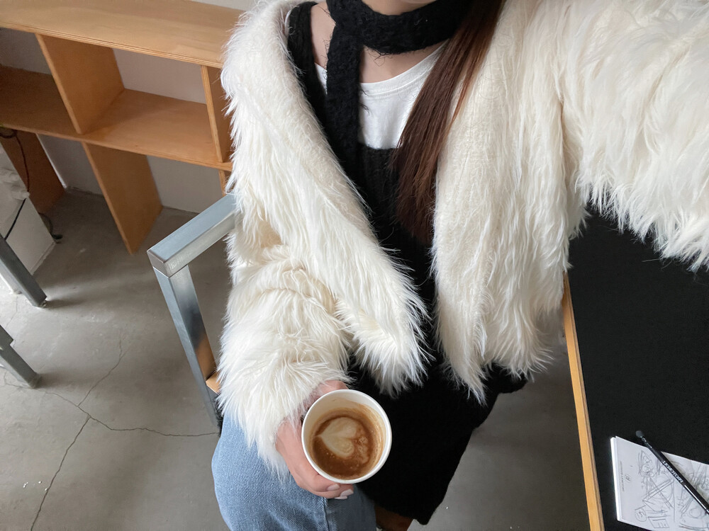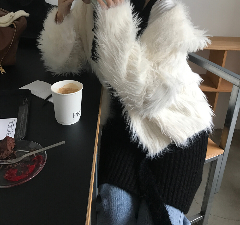 KITTY FUR CARDIGAN JACKET, MILK WHITE