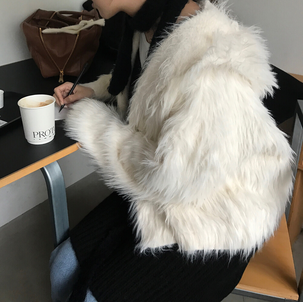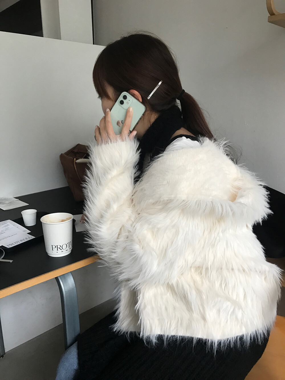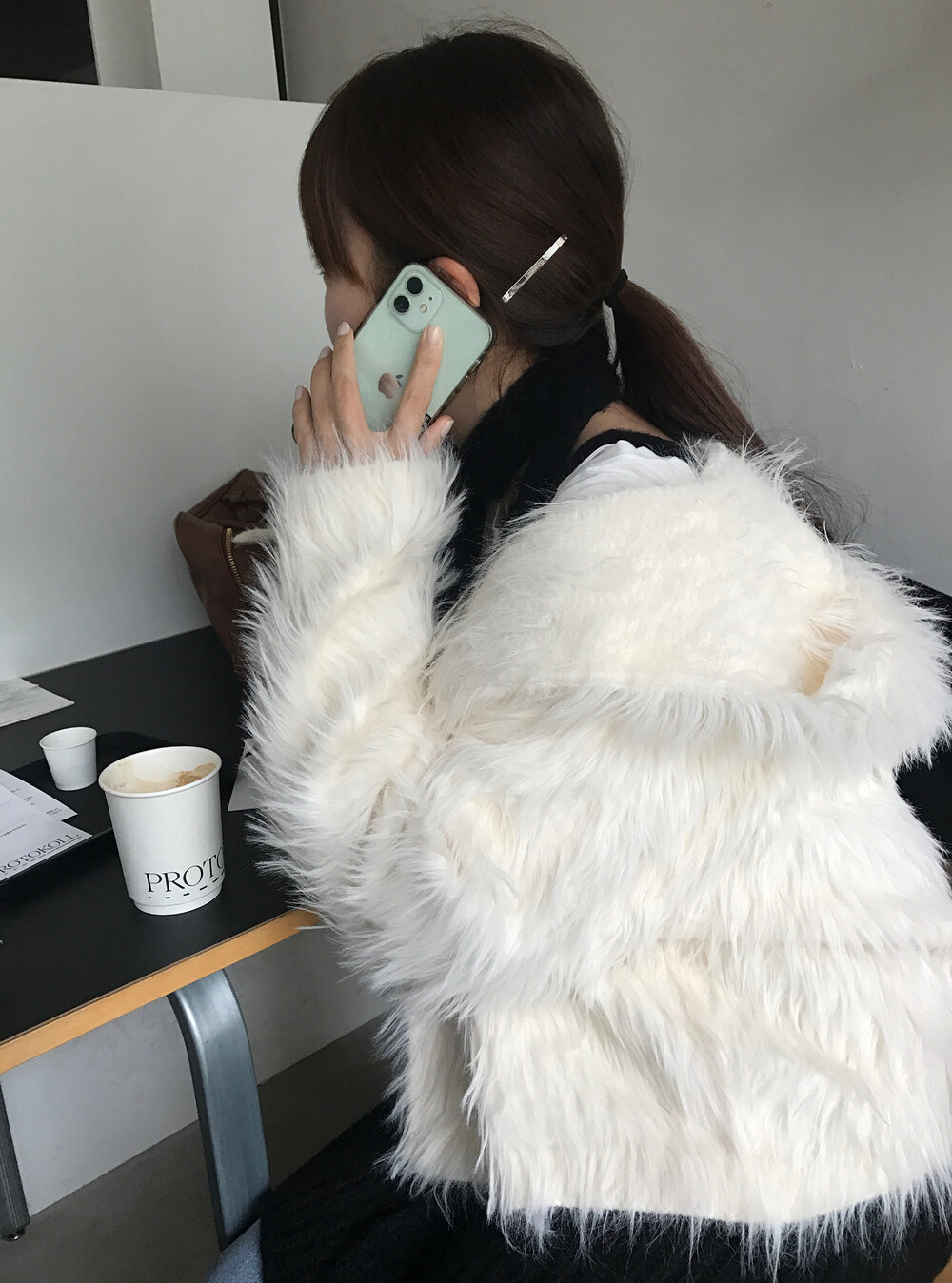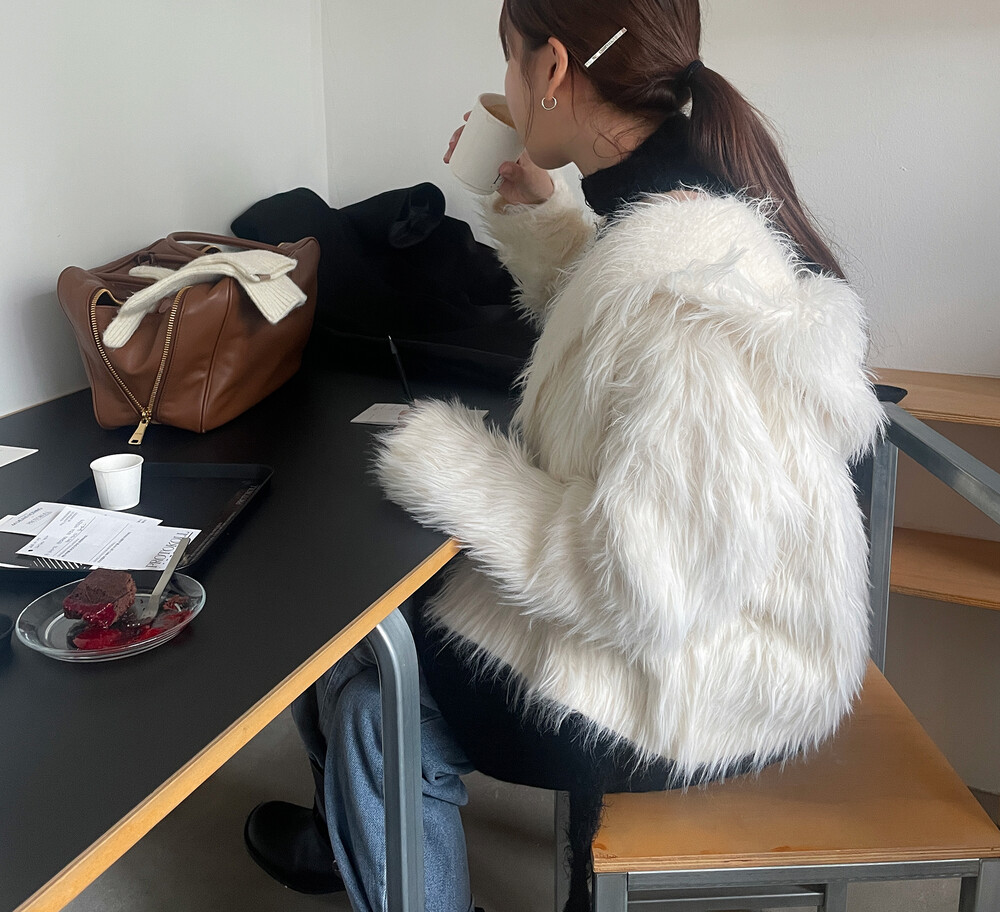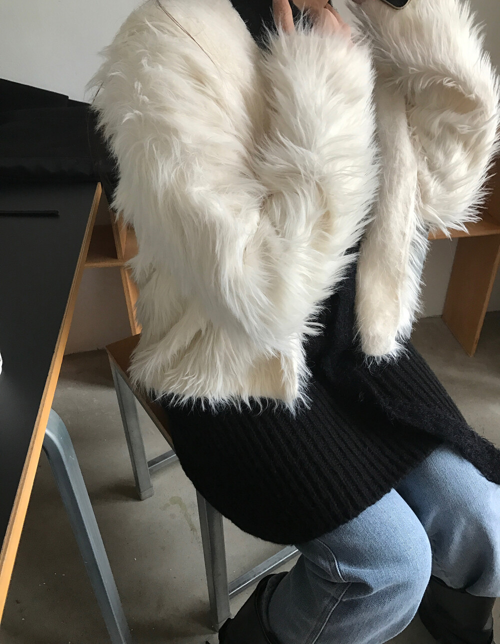 KITTY FUR CARDIGAN JACKET, MILK WHITE