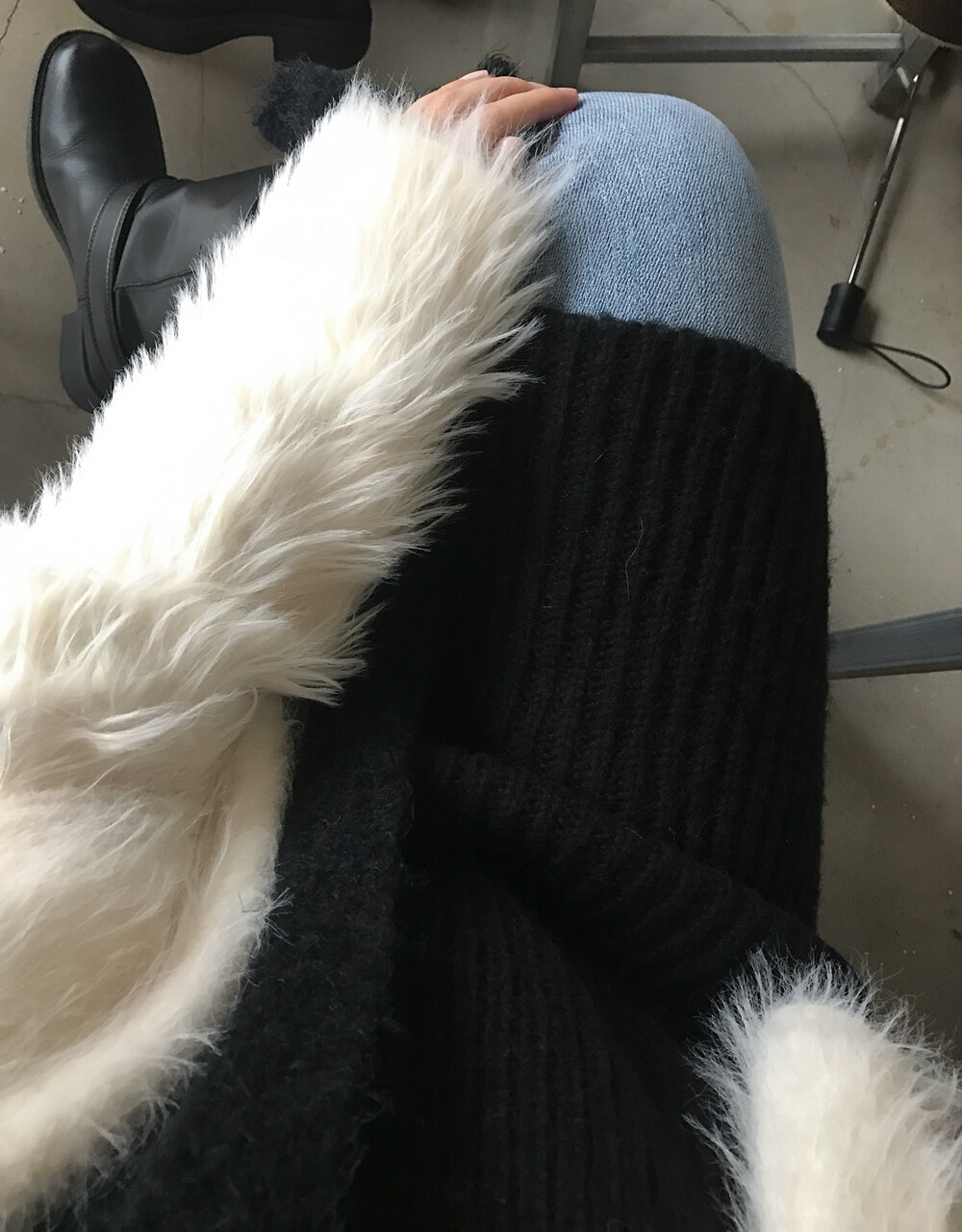 겨울에는 팬츠+이너들을 화이트로 입고 코트를 블랙으로 입는걸
