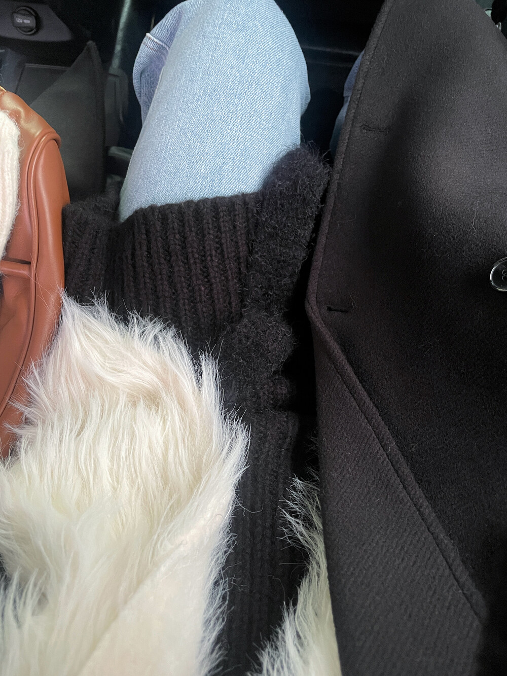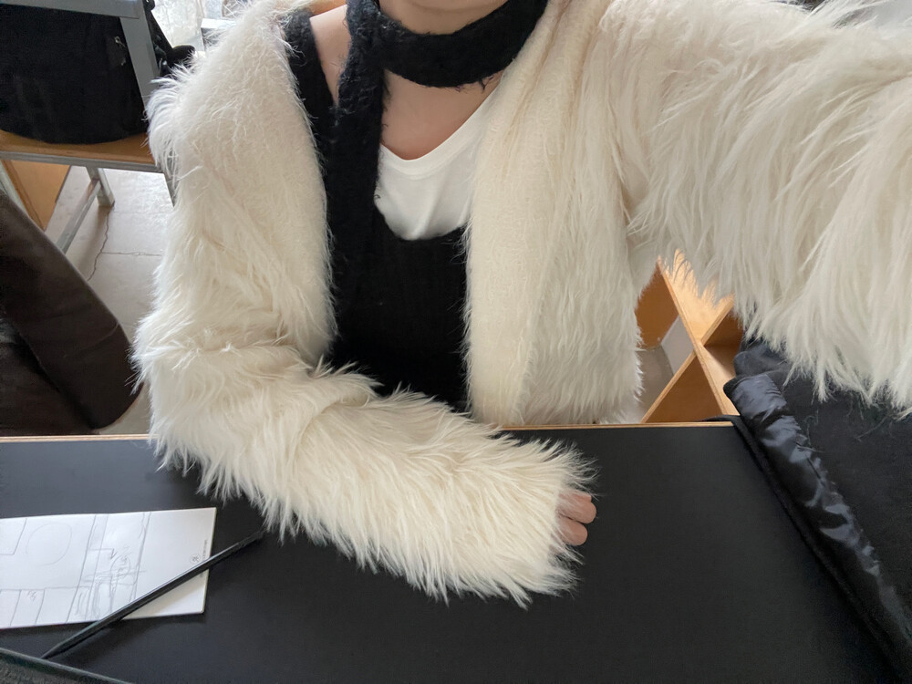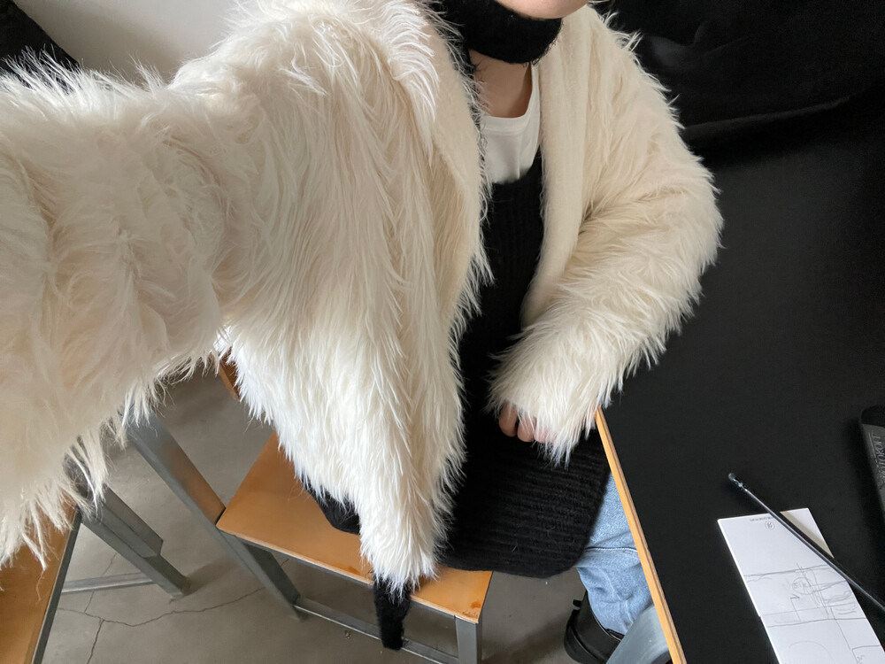 니트위에 입으면 니트에 하얀 털이 묻어나는게 사진으로도 사실 다 보이기 마련인데