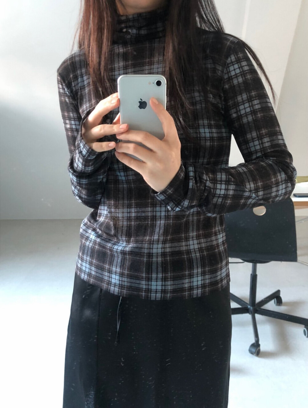 Kirch Warmer High Neck Top, Blue Check (6c)